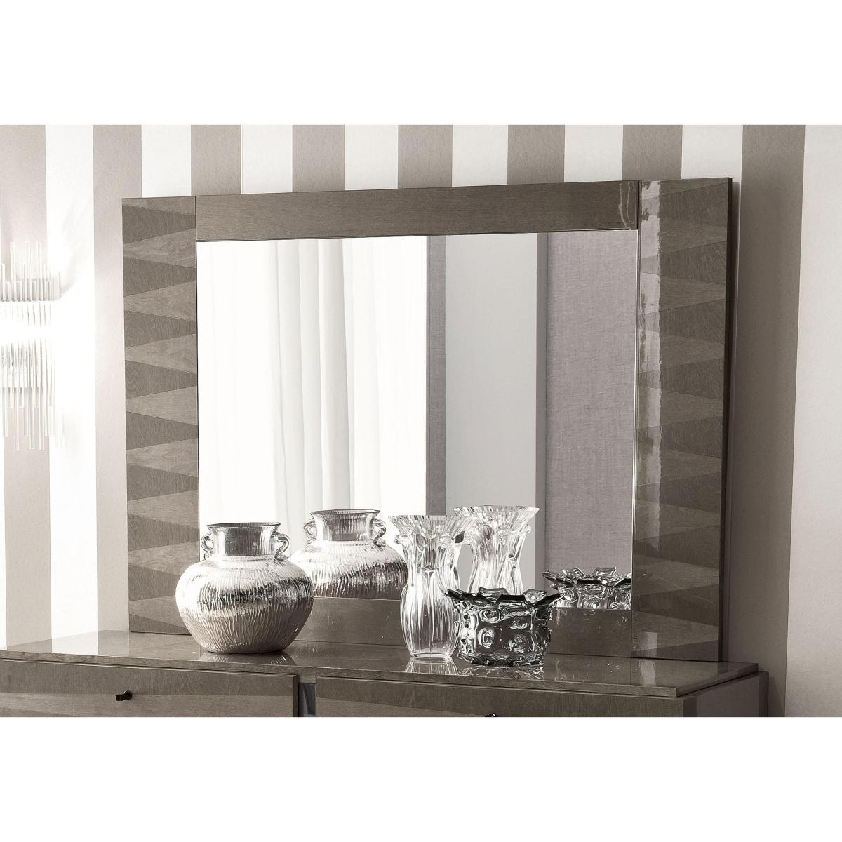 Live – and sleep – in luxury with the glamorous ALF Vito bedroom furniture collection. Designed and handcrafted in Italy, the range showcases its Art Deco inspiration in the form of beautiful geometric birch wood veneer inlays and a glossy taupe finish. A statement bed frame with a high upholstered headboard is a suitably opulent centrepiece for this fabulous collection which also includes chests of drawers, a bedside cabinet and a dressing table with a secret jewellery compartment. This large mirror by ALF has an elegant Art Deco-style frame of geometric-patterned inlays. Perfect for above a chest of drawers, it also easily affixes to the range’s dressing table. Why you’ll love it. Art Deco-inspired design from Italian furniture maker ALF. Glamour on a grand scale. Deep frame features high-gloss geometric inlays. Can be attached to the ALF Vito dressing table and 6 drawer dresser. Handcrafted in Italy. What you need to know. Inlaid veneers are made of birch wood. Wood finish may show some very light marks as a result of the buffing process. Part of the ALF Vito range which includes a dressing table and a 6 drawer dresser.