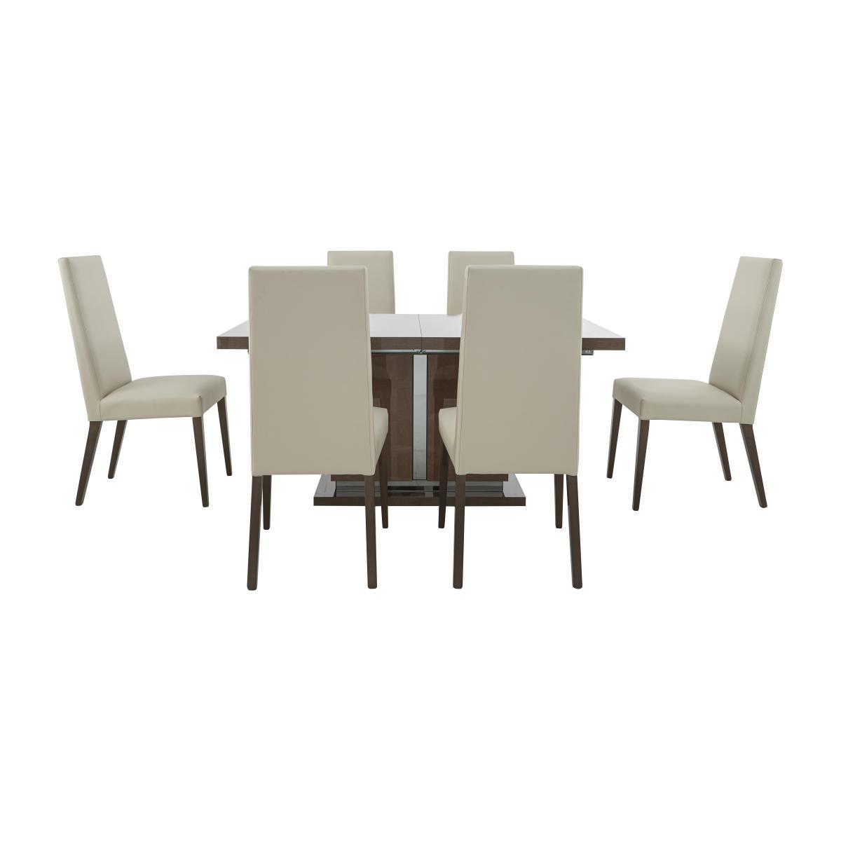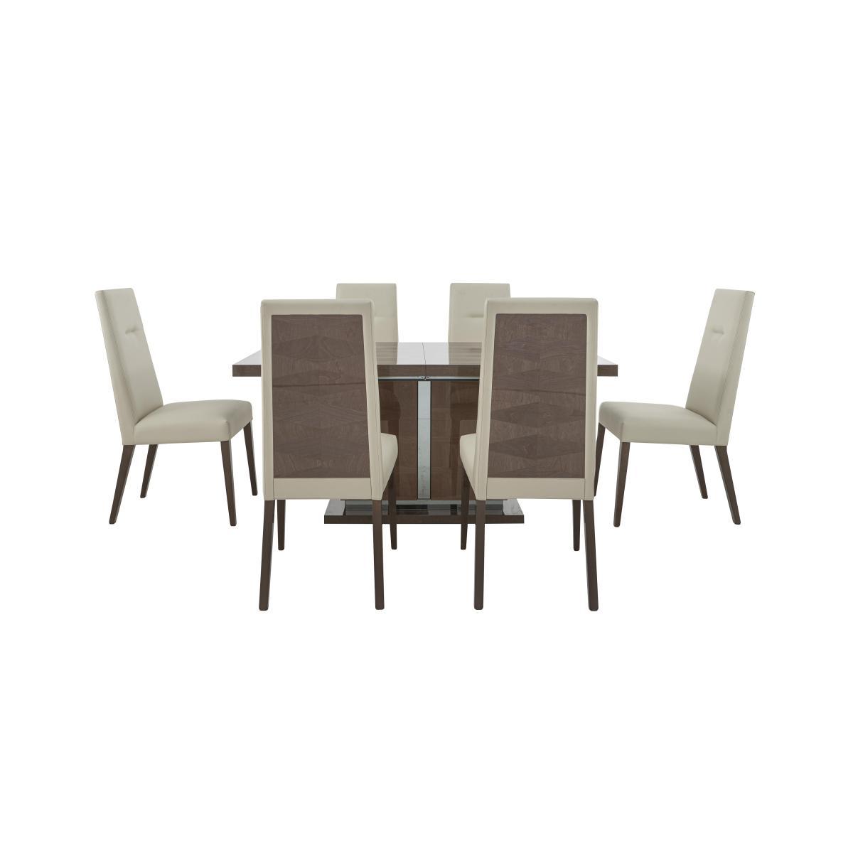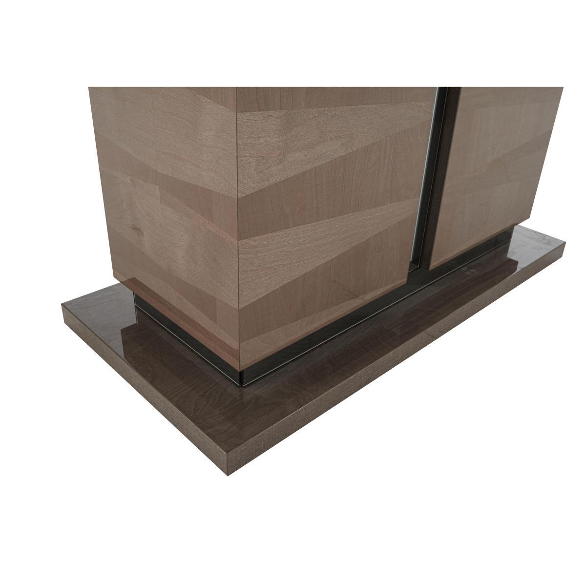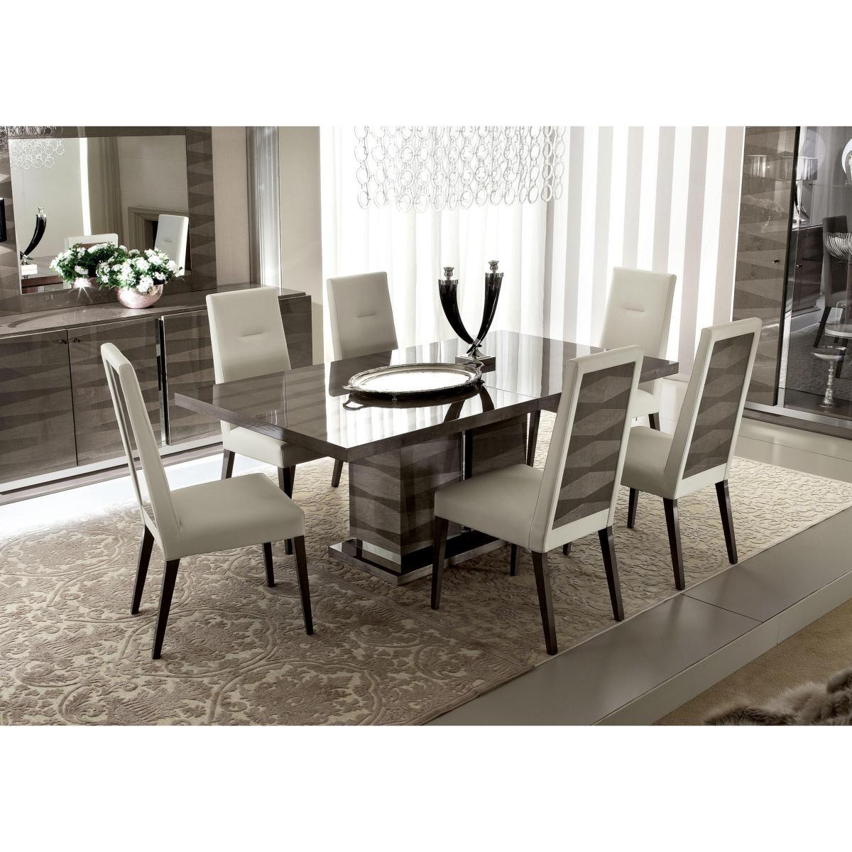 Live – and sleep – in luxury with the glamorous ALF Vito bedroom furniture collection. Designed and handcrafted in Italy, the range showcases its Art Deco inspiration in the form of beautiful geometric birch wood veneer inlays and a glossy taupe finish. A statement bed frame with a high upholstered headboard is a suitably opulent centrepiece for this fabulous collection which also includes chests of drawers, a bedside cabinet and a dressing table with a secret jewellery compartment. The perfect dining furniture for glamorous gatherings, this set features a stunning high-gloss extending dining table with a pedestal base plus six high-backed dining chairs in rose faux leather. Why you’ll love it. Art Deco-inspired design from Italian furniture maker ALF. Glamour on a grand scale. Table features high-gloss geometric inlays. Seven-layer lacquered finish in dark taupe is beautiful and incredibly durable. Pedestal base with mirror detail. Smooth butterfly extension mechanism. 6 cushioned dining chairs are upholstered in rose faux leather. Handcrafted in Italy. What you need to know. Inlaid veneers are made of birch wood. Chairs have solid beech frames and legs. 160-210 cm table seats 6 and extends to seat 8. Finish may show some very light marks as a result of the buffing process. Complete the look with the ALF Vito 4 door sideboard and curio cabinets.