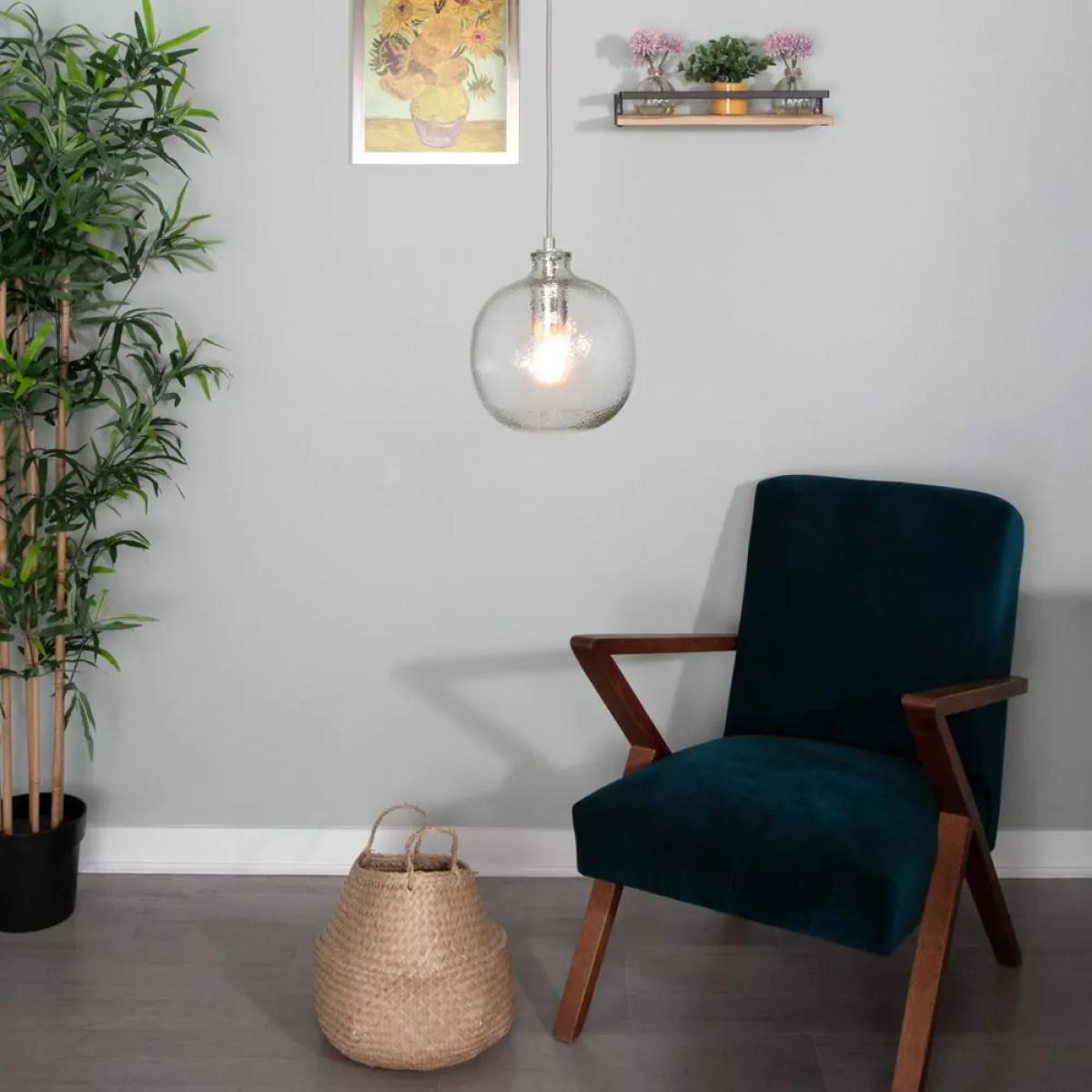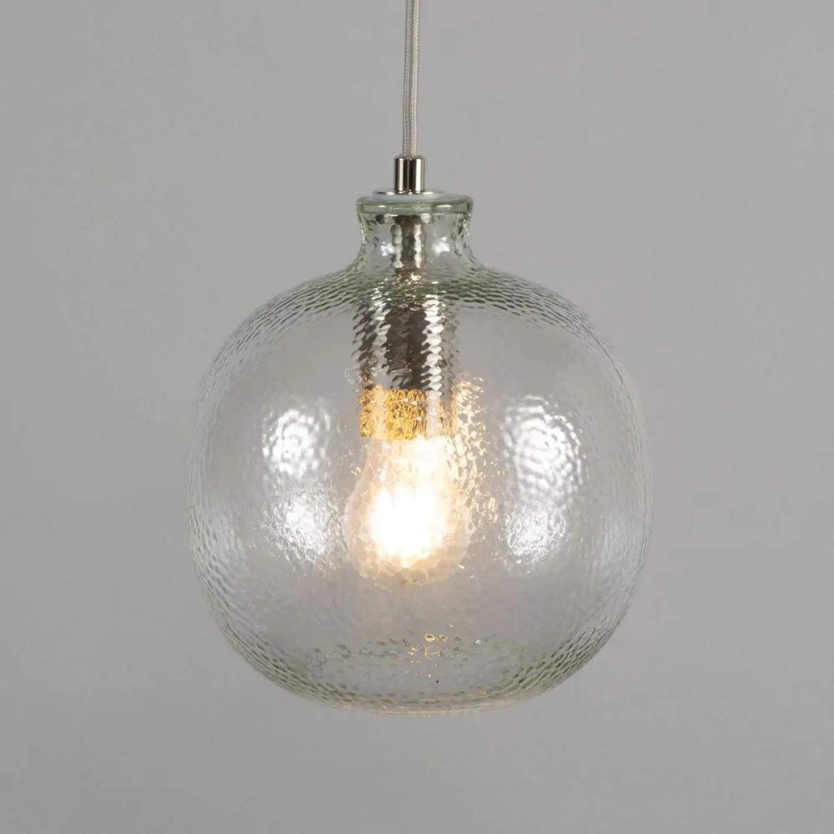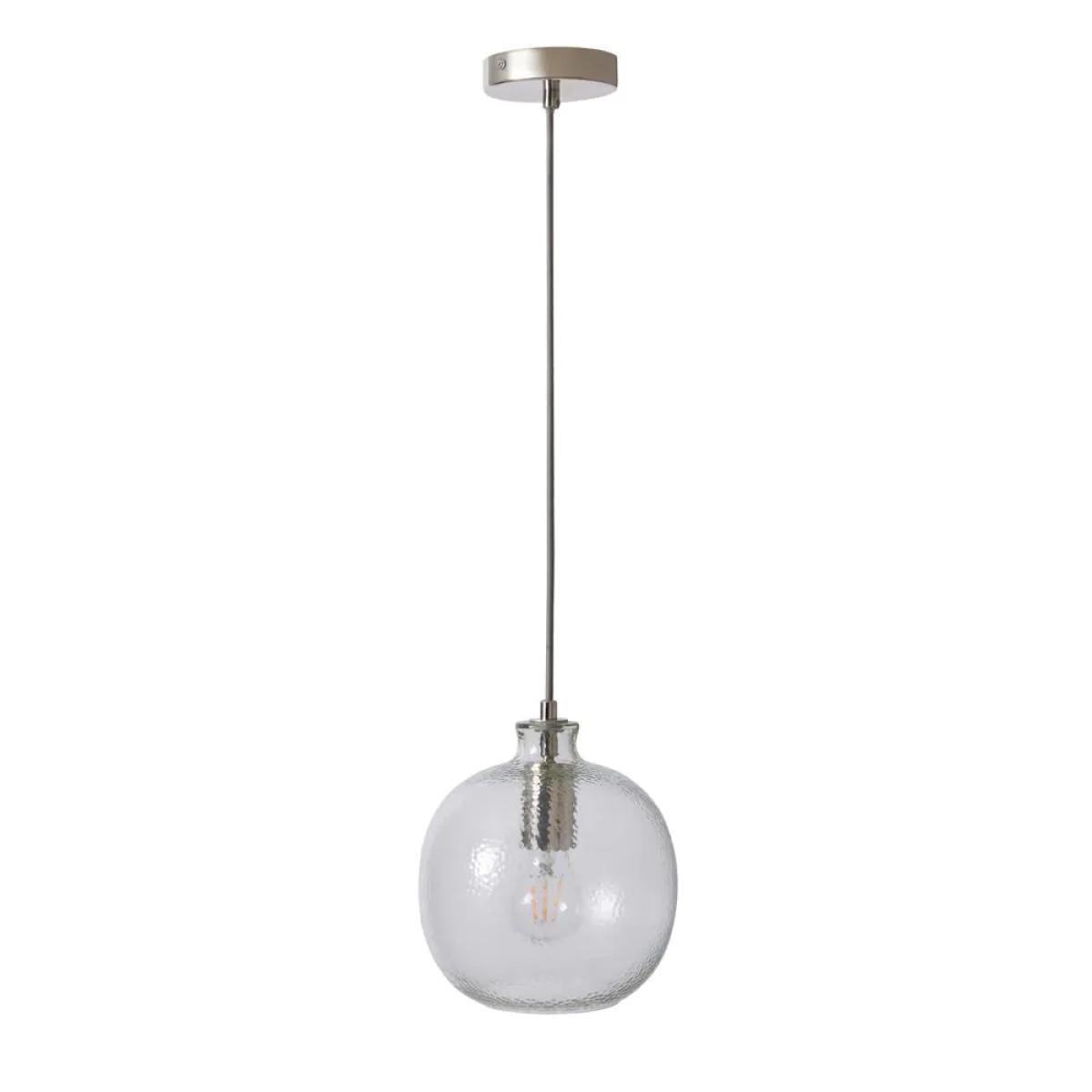 Refined lighting design for your interior décor with the Alfie Bobble Glass Ceiling Pendant. This ceiling pendant comes in a polished nickel finish for a modern aesthetic with a mottled glass shade that looks ideal when paired with a separately sold vintage filament light bulb. Style this light in pairs or threes on either side of a bed for a matching look, or over a kitchen island for an eye catching statement appearance.