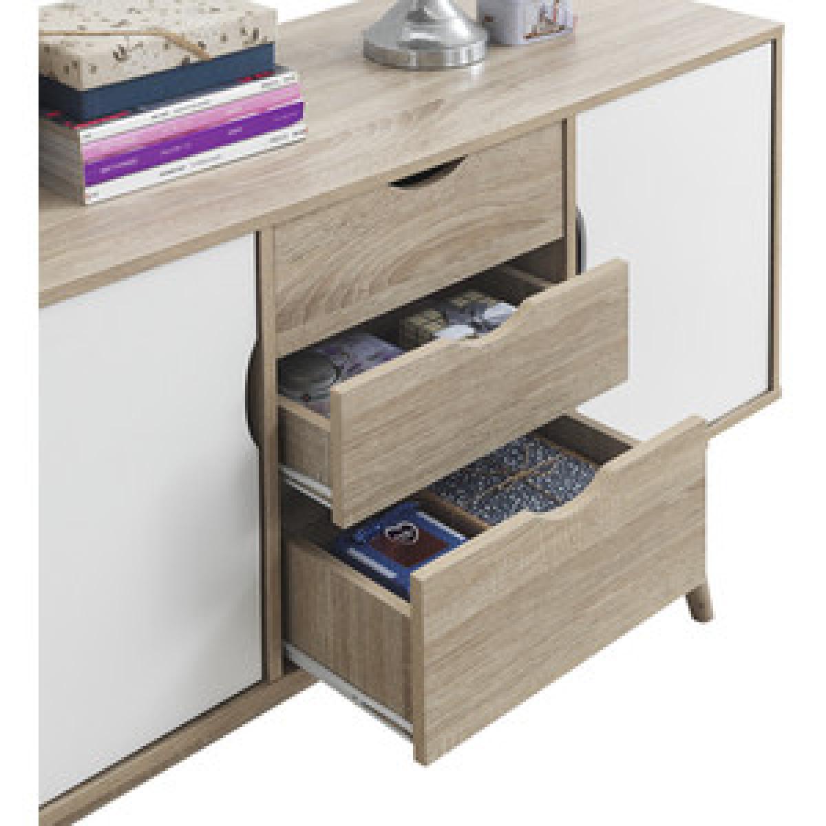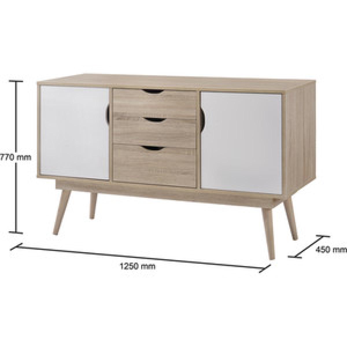 Alford Scandinavian design featuring 2 doors and 3 drawers with cut out handles is available in a choice of two colours. Each drawer opens up for storage, and each door opens out to reveal even more storage. In the storage on either side of the drawers, a shelf is placed in the middle for you to make the most out of the storage available.