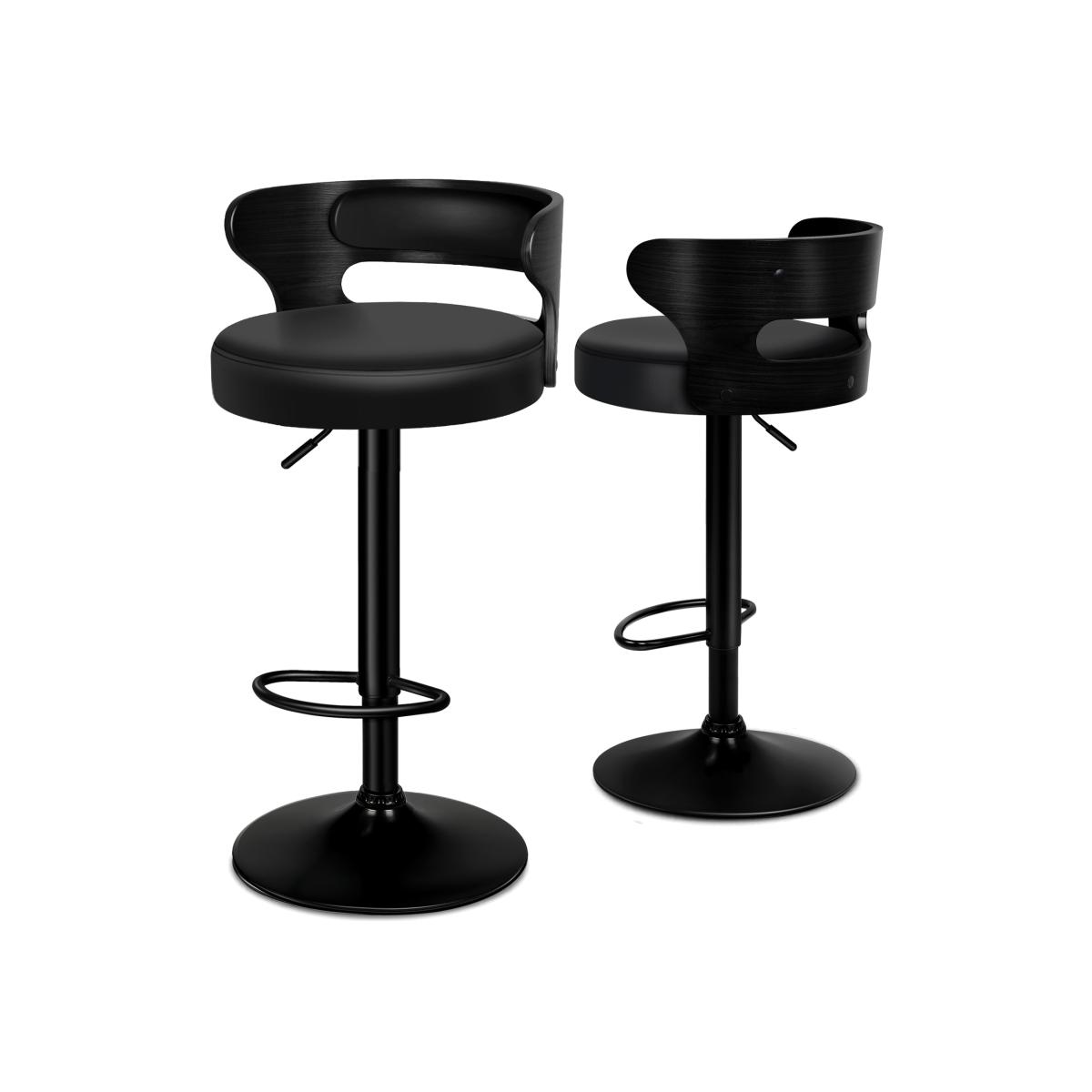 ALFORDSON 2x Bar Stool Ramiro Kitchen Swivel Chair Wooden Leather - All Black