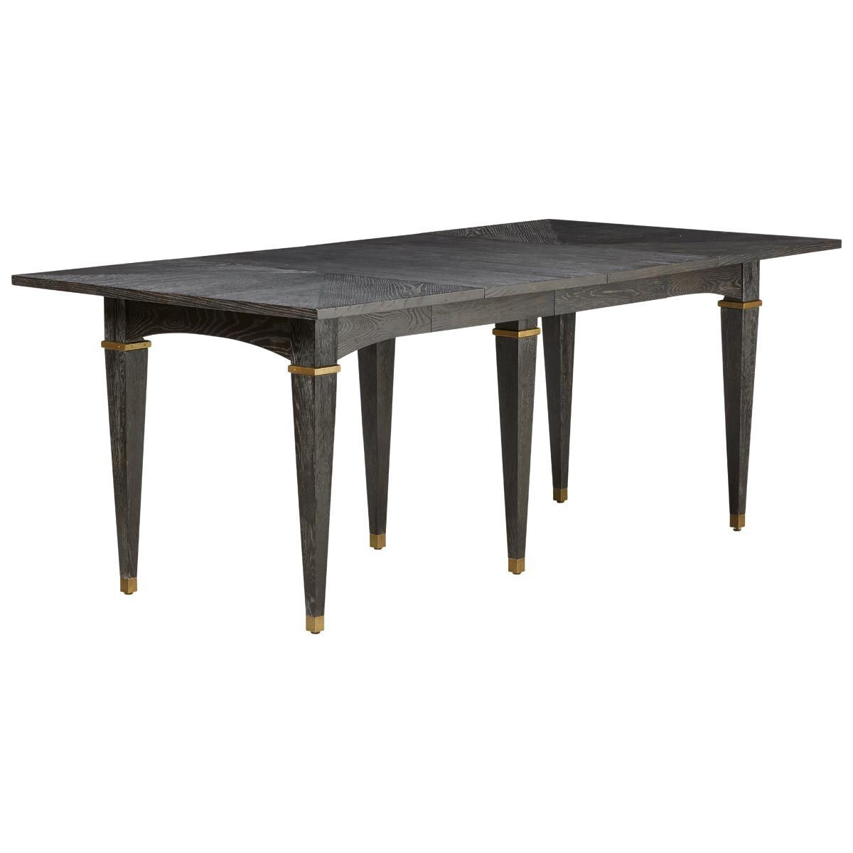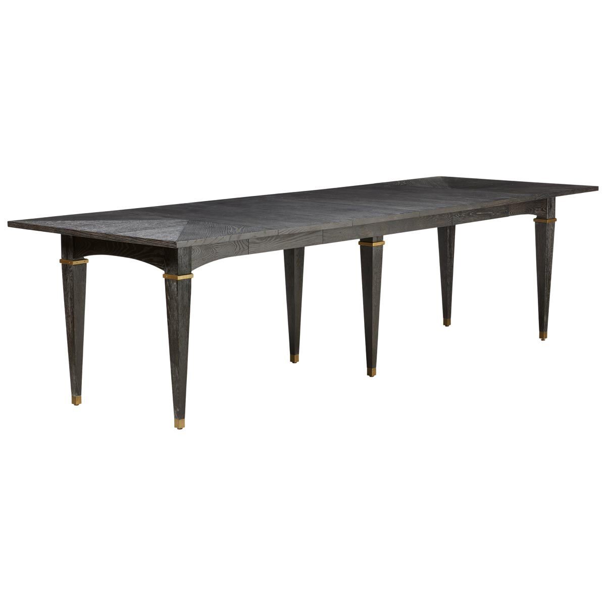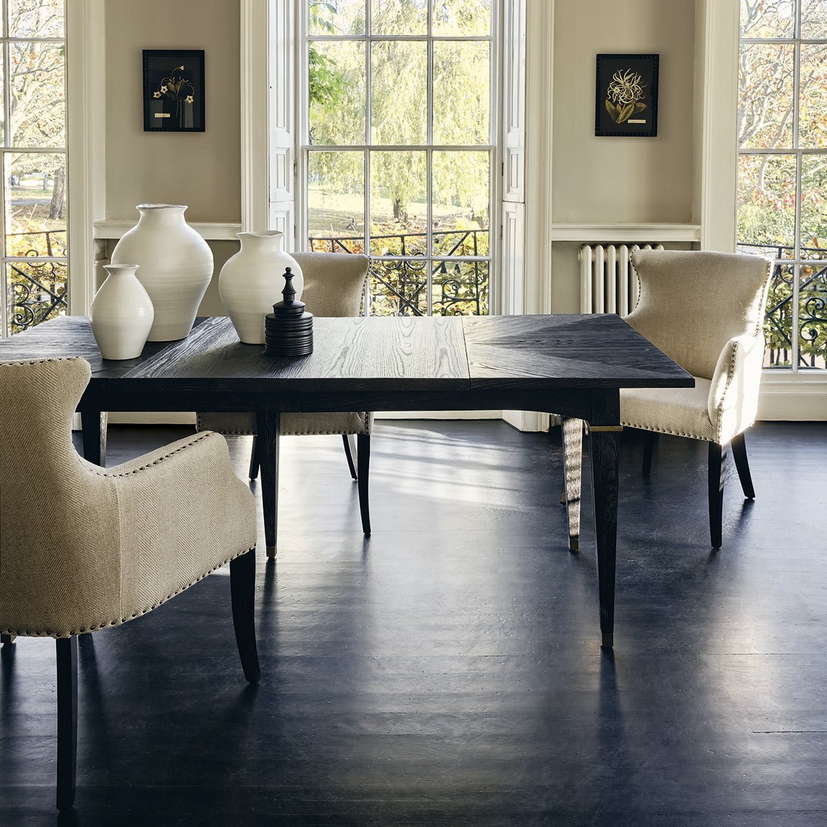 Named after an English king, this large dining table is a modern classic. With it, we've given our Charlotte Dining Table's timeless design an elevated twist. The Alfred has the same classic rectangular shape, but its legs are tapered and embellished with gold-coloured metal detailing, for an elegant, contemporary look. It's perfect for entertaining; when hosting, simply pull apart the centre of the table and remove the extra leaves. Turn the leaves horizontally and place them on the metal slides, connecting the table back together properly. Alfred Extendable Dining Table - Ebonised Oak