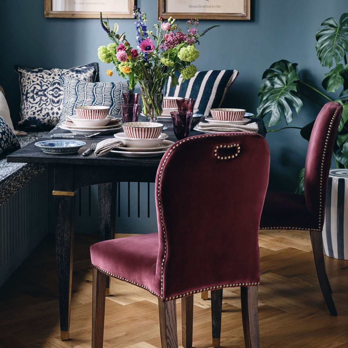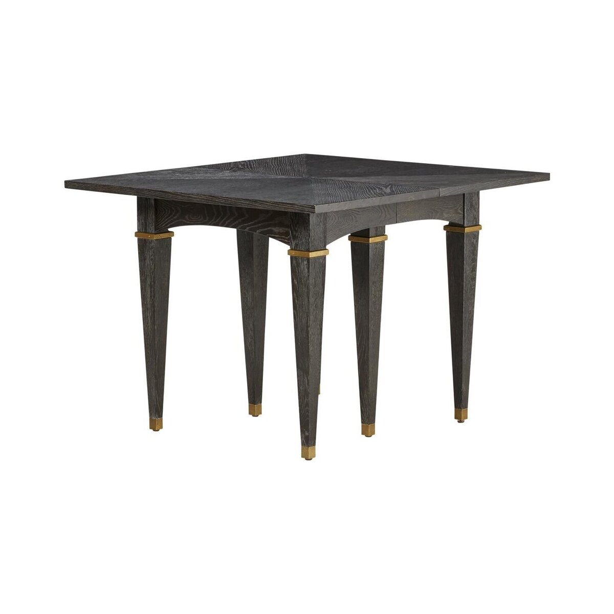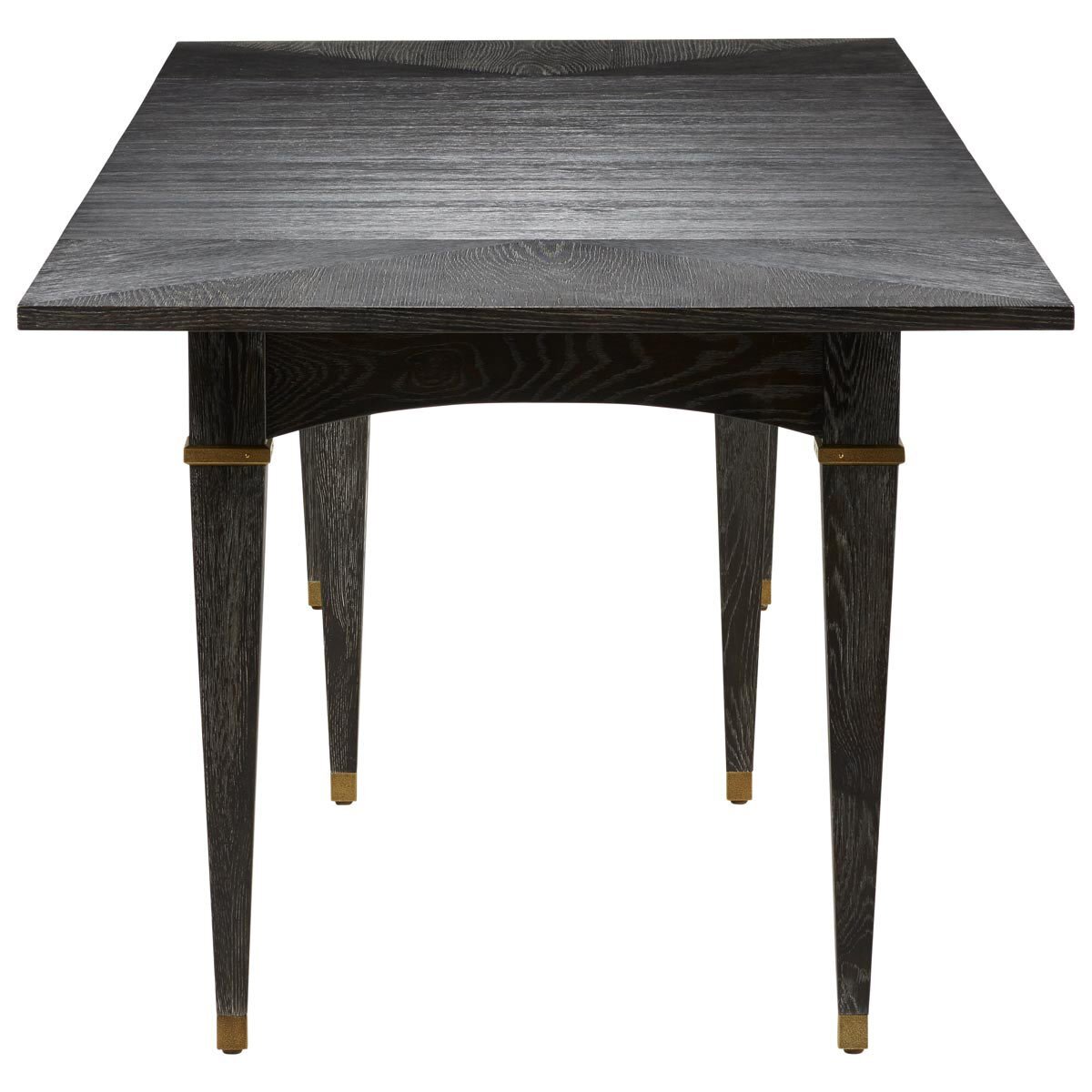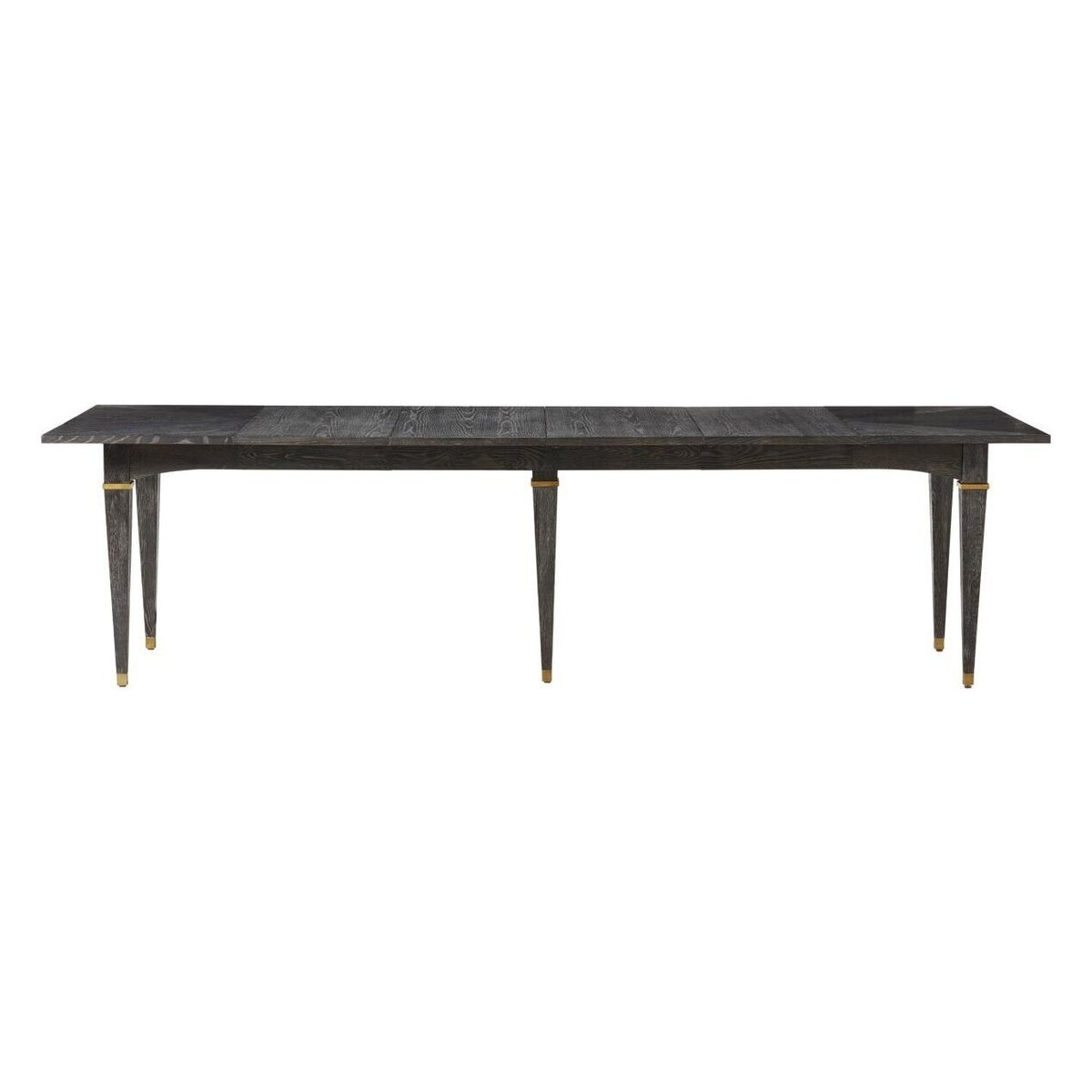 Named after an English king, this large dining table is a modern classic. With it, we've given our Charlotte Dining Table's timeless design an elevated twist. The Alfred has the same classic rectangular shape, but its legs are tapered and embellished with gold-coloured metal detailing, for an elegant, contemporary look. It's perfect for entertaining; when hosting, simply pull apart the centre of the table and remove the extra leaves. Turn the leaves horizontally and place them on the metal slides, connecting the table back together properly. Alfred Extendable Dining Table - Ebonised Oak