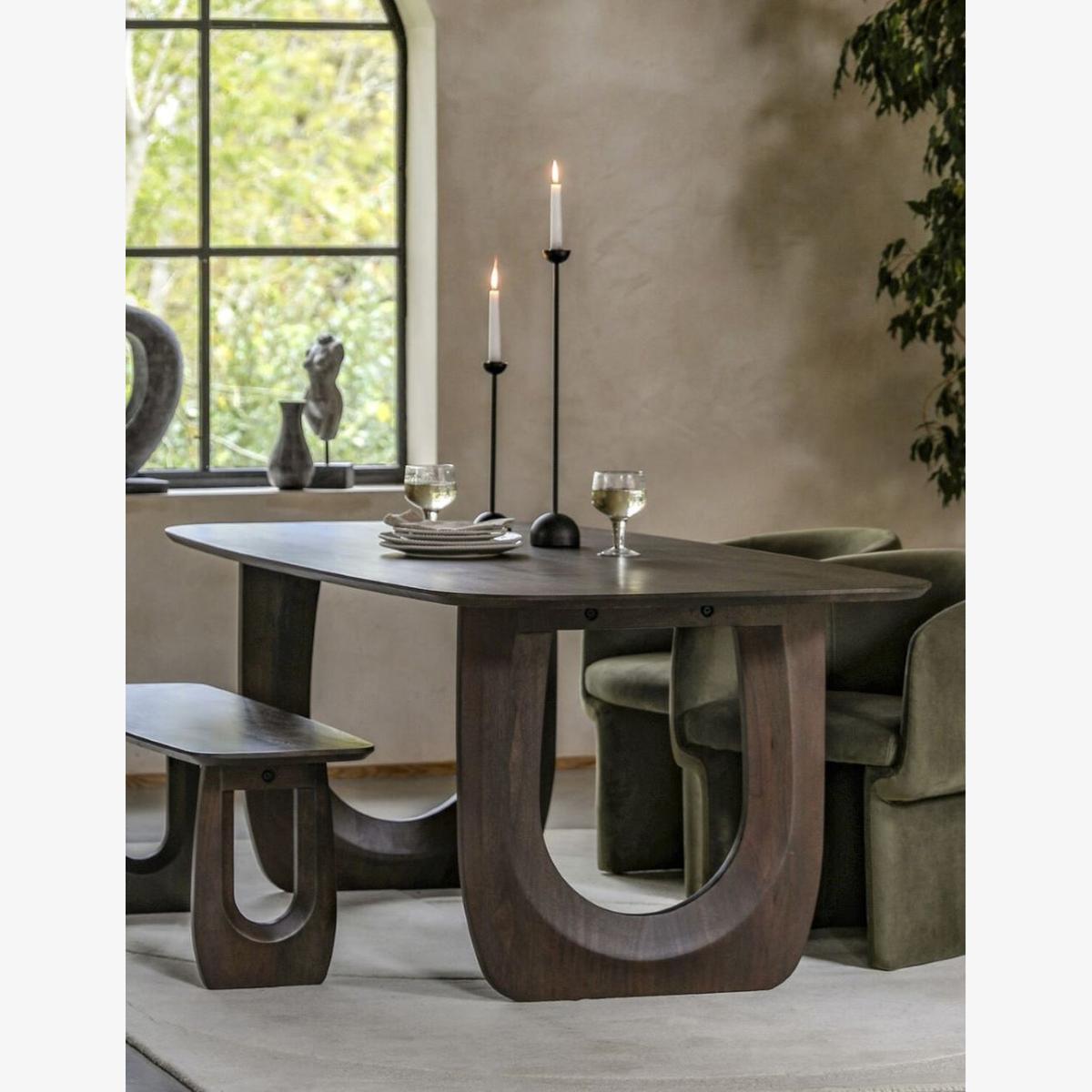 I’m a fan of the Alfred table for its striking U-shaped legs and rich walnut finish - it brings an instant focal point without feeling fussy. It works equally well in mid-century, Scandi-inspired or even a pared-back contemporary setting, especially when offset by velvet dining chairs or a simple wooden bench. For styling, keep your table top uncluttered: a pair of slim candleholders or a low ceramic vase will accentuate the sculptural base, while a neutral jute or looped wool rug underneath helps ground the look.