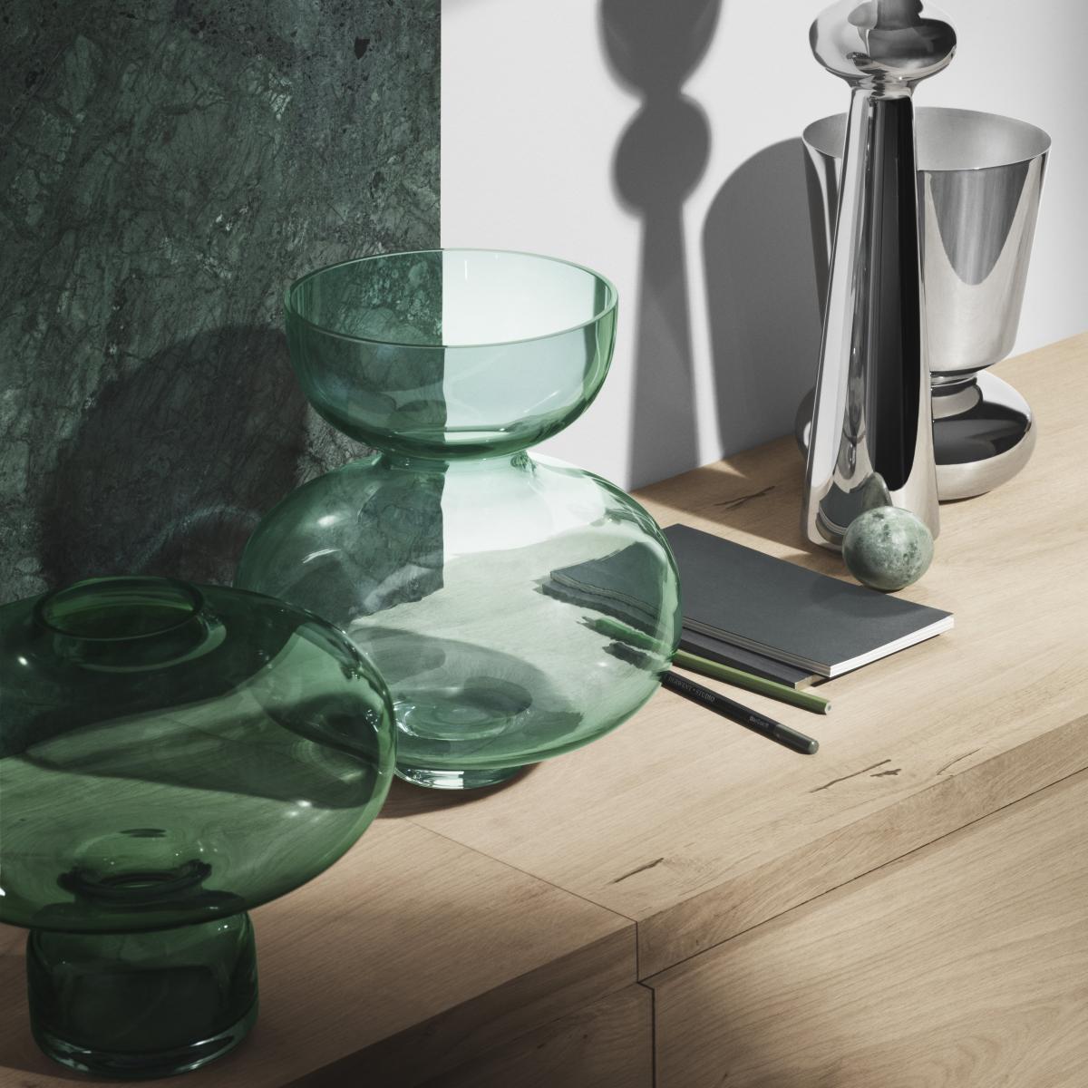 With its enchanting green color, the Alfredo vase from Georg Jensen creates a warm look in your home. The green color is unique and developed through a collaboration between Georg Jensen and Glafo glass research institution. The vase itself is designed by Alfredo Häberli who has a strong sense for innovative and renewed creations. The interesting, bulbous shape of the Alfredo vase embraces your flowers in a beautiful way.