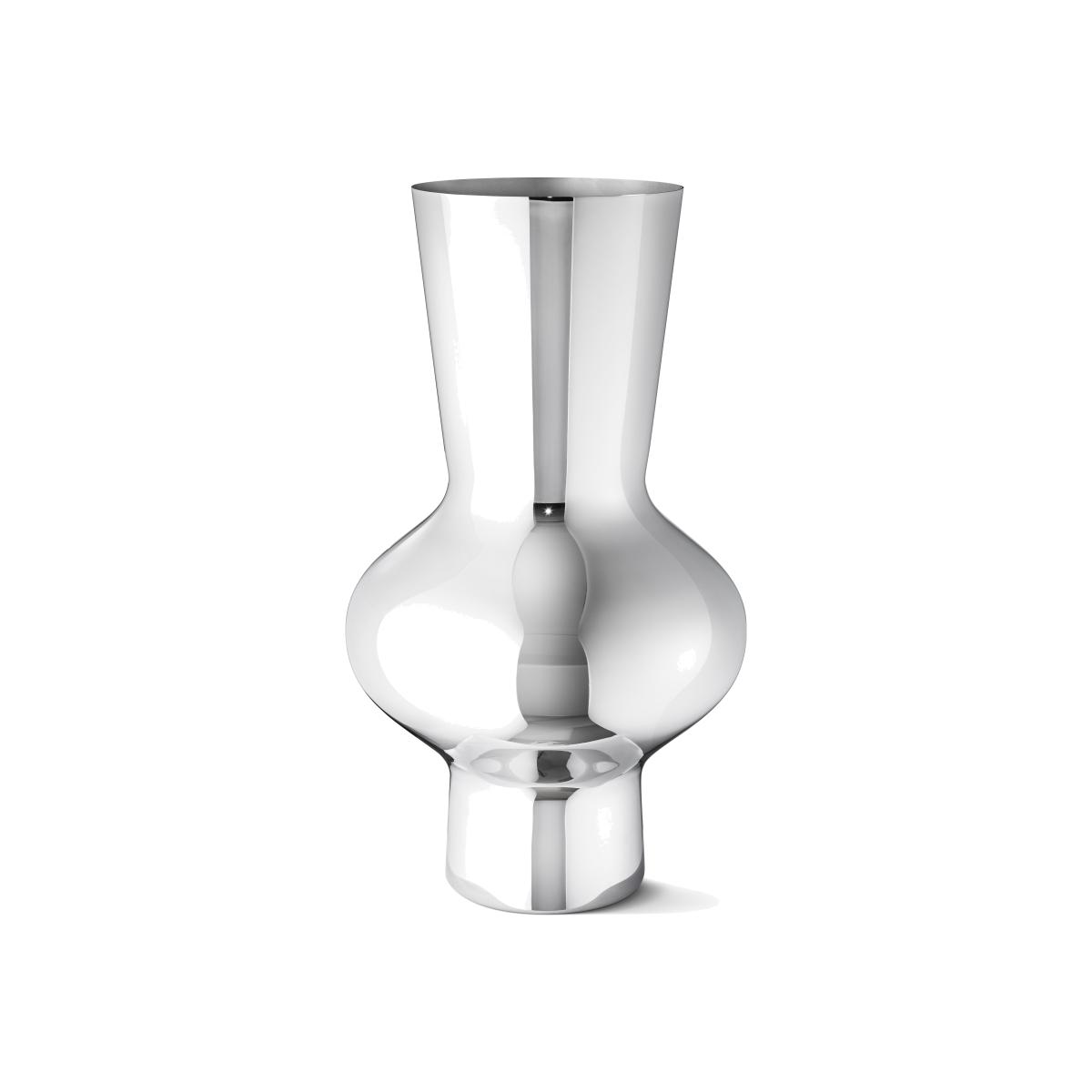 Alfredo vase in mirror polished stainless steel from the Danish brand Georg Jensen has an inspiring, creative design with a fluid shape. The vase is designed by Alfredo Häberli who is famous for his simple and clean, yet innovative and functional design. The cold silver color on the vase goes great together with a colorful bouquet of flowers. Choose between several sizes.