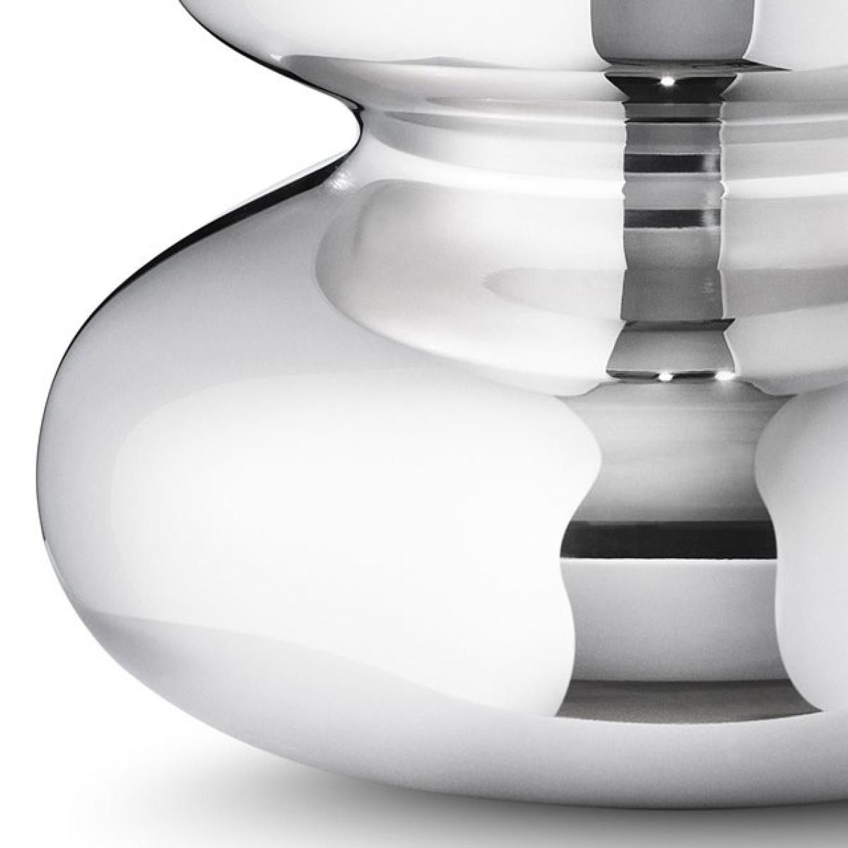 Alfredo vase in mirror polished stainless steel from the Danish brand Georg Jensen has an inspiring, creative design with a fluid shape. The vase is designed by Alfredo Häberli who is famous for his simple and clean, yet innovative and functional design. The cold silver color on the vase goes great together with a colorful bouquet of flowers. Choose between several sizes.