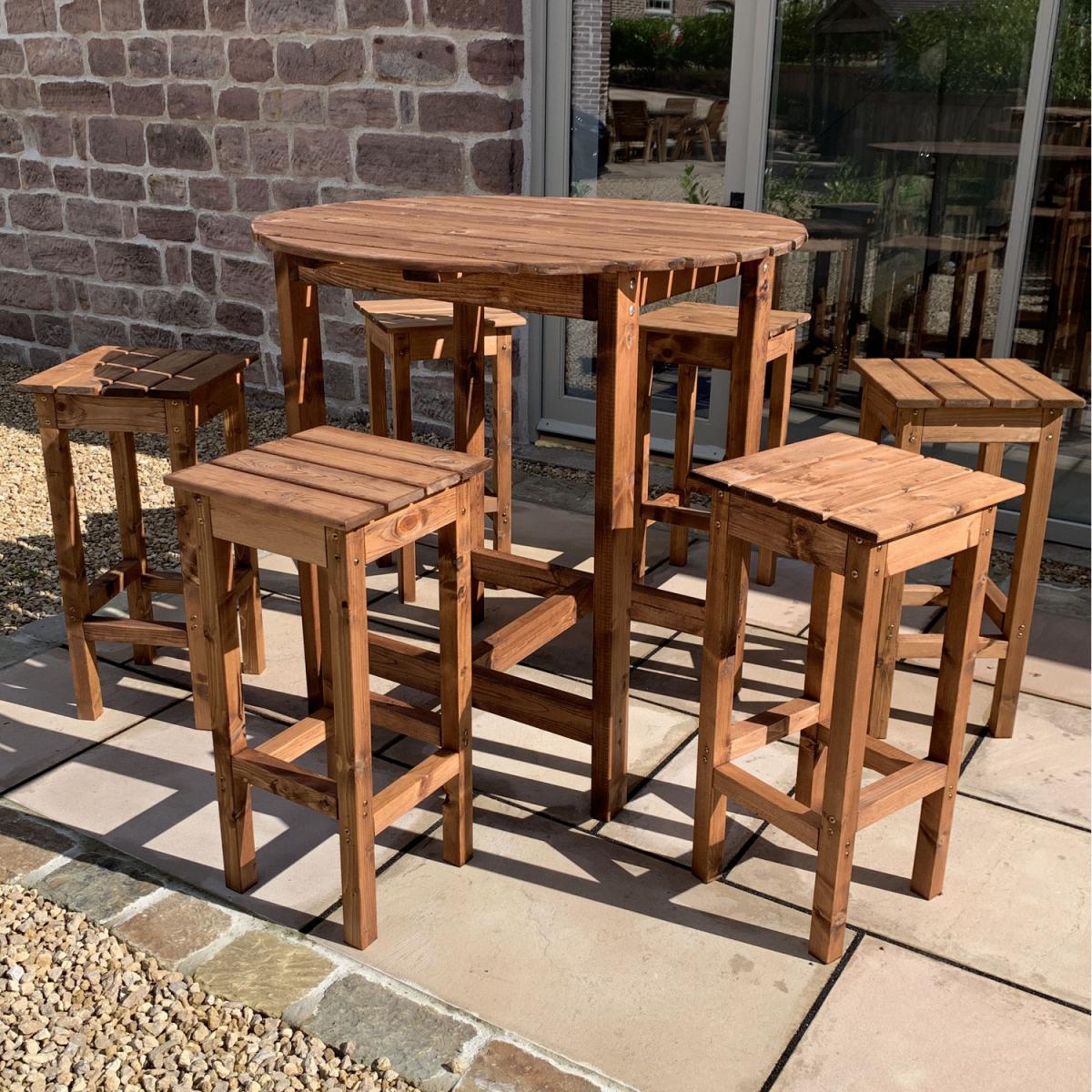 Charles Taylor Solid Wood Outdoor Alfresco Bar Set Six Seater. This is constructed at our factory in the UK and manufactured from Solid Scandinavian Redwood. As the name implies, this timber grows in a cold climate. The slow growth associated with the low temperature produces a much denser, more robust wood which is perfect for outdoor use.*Please note this set comes with bar stools, not accent chairs*