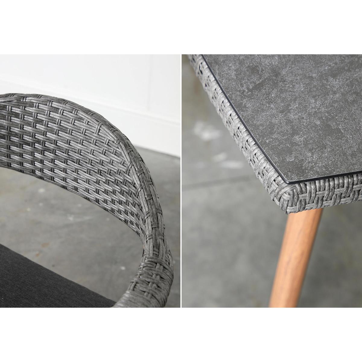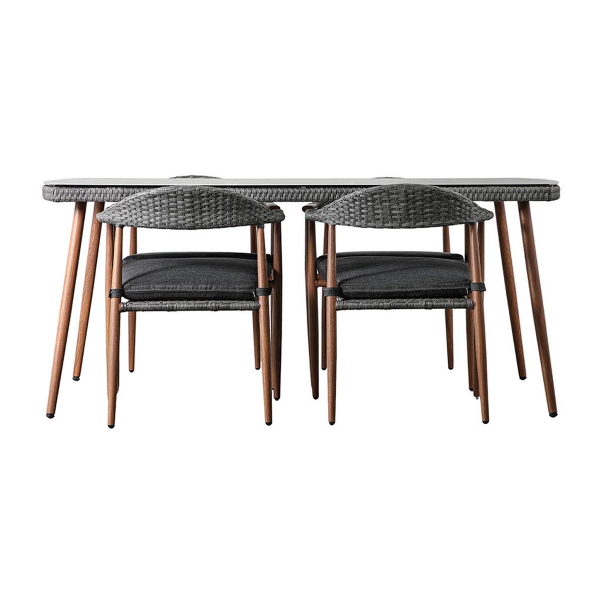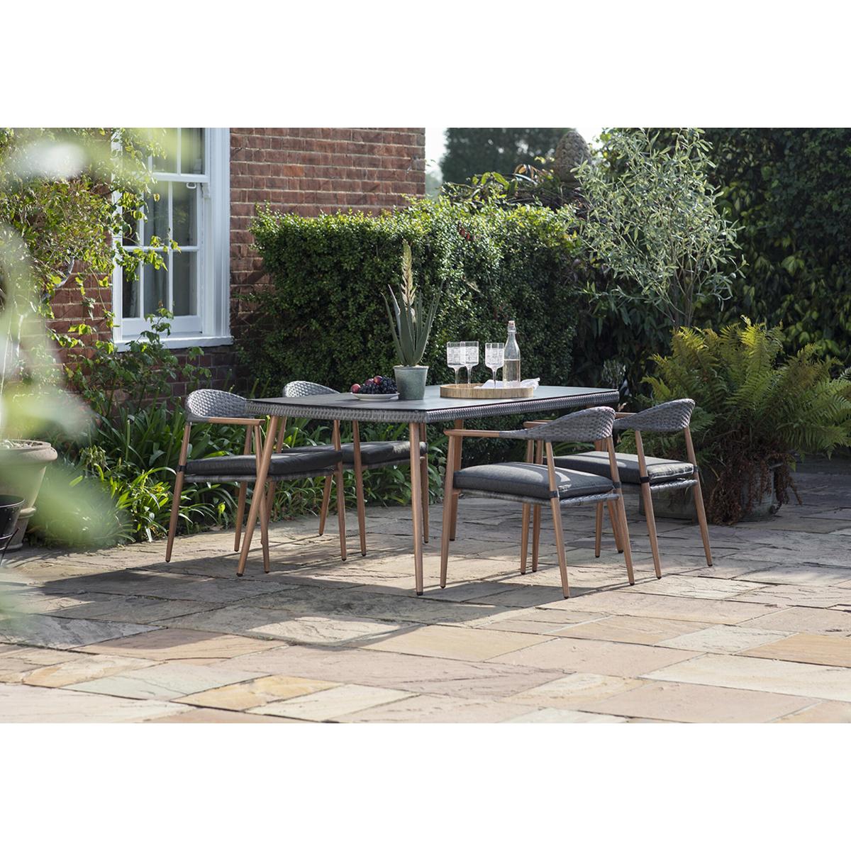 You won't just like this Alfresco four seater dining set, you'll 'amore' it! Featuring a glass top table and weather-proof rattan detail so you and friends can get together come rain or shine! Dining Table: W1750 mm x D900mm x H740mm Armchair: W610mm x D590mm x H740mm