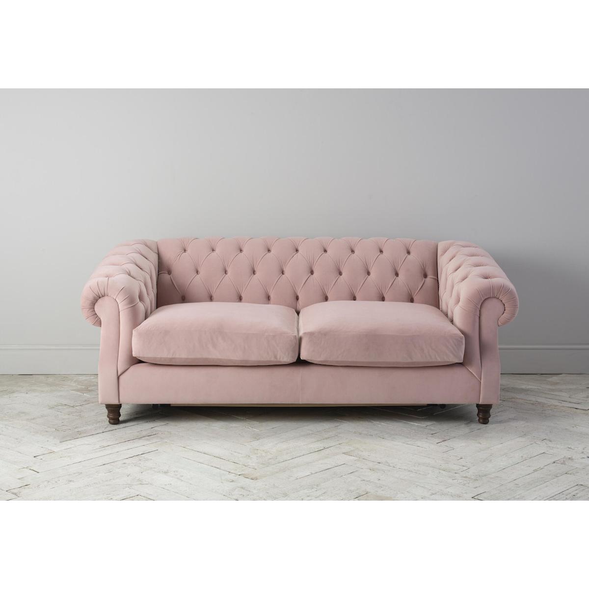 Make way for Algernon; big, bold and beautiful, this guy is a classic hefty Chesterfield style sofa, with the added bonus of a sofa bed! With deeply buttoned supersoft foam and feather wrapped seat cushions, Algernon combines all the presence and grandeur that you'd expect from this timeless sofa together with deeply inescapable comfort. Sofa bed pulls out to reveal sprung mattress over slats ensuring a deep sleep. Please note that seams may vary depending on which fabric you choose.