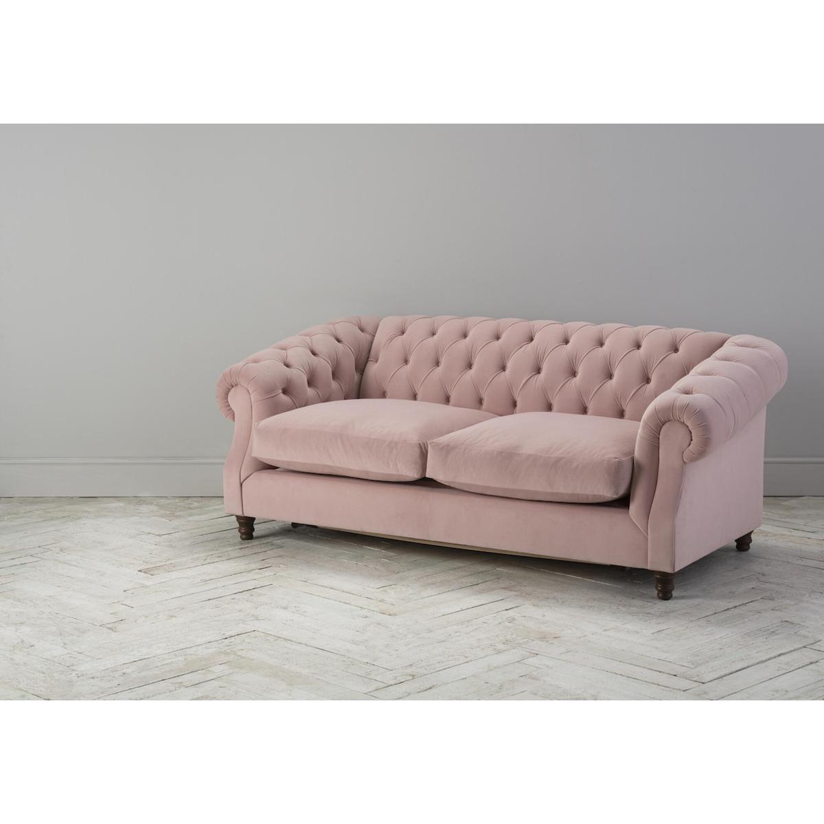 Make way for Algernon; big, bold and beautiful, this guy is a classic hefty Chesterfield style sofa, with the added bonus of a sofa bed! With deeply buttoned supersoft foam and feather wrapped seat cushions, Algernon combines all the presence and grandeur that you'd expect from this timeless sofa together with deeply inescapable comfort. Sofa bed pulls out to reveal sprung mattress over slats ensuring a deep sleep. Please note that seams may vary depending on which fabric you choose.