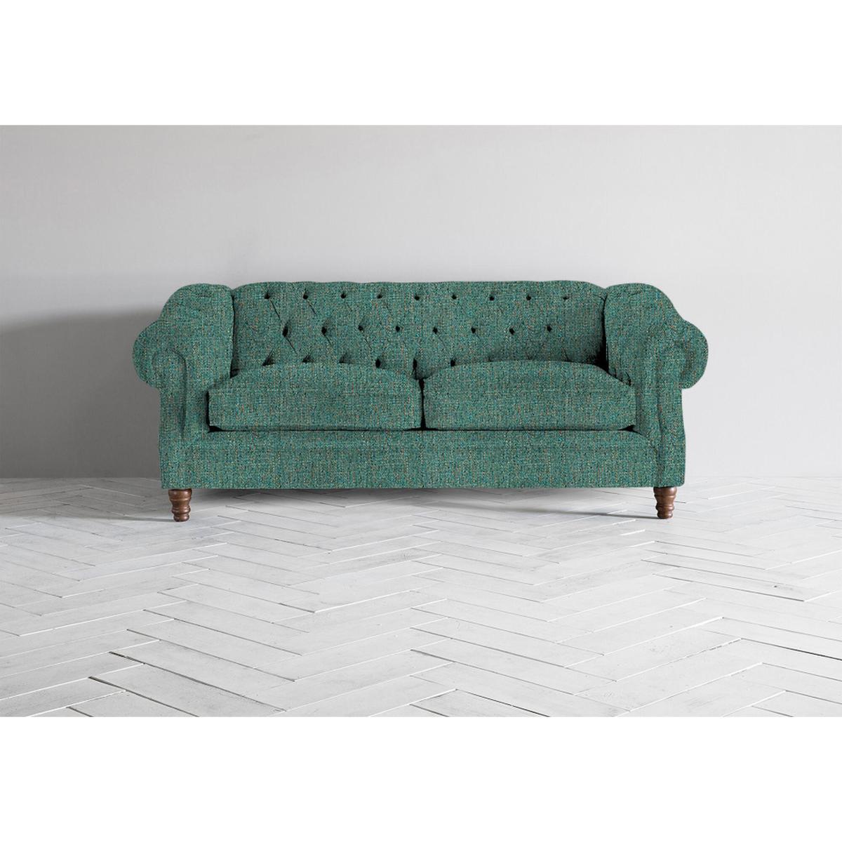 Make way for Algernon; big, bold and beautiful, this guy is a classic hefty Chesterfield style sofa, with the added bonus of a sofa bed! With deeply buttoned supersoft foam and feather wrapped seat cushions, Algernon combines all the presence and grandeur that you'd expect from this timeless sofa together with deeply inescapable comfort. Sofa bed pulls out to reveal sprung mattress over slats ensuring a deep sleep. Please note that seams may vary depending on which fabric you choose.