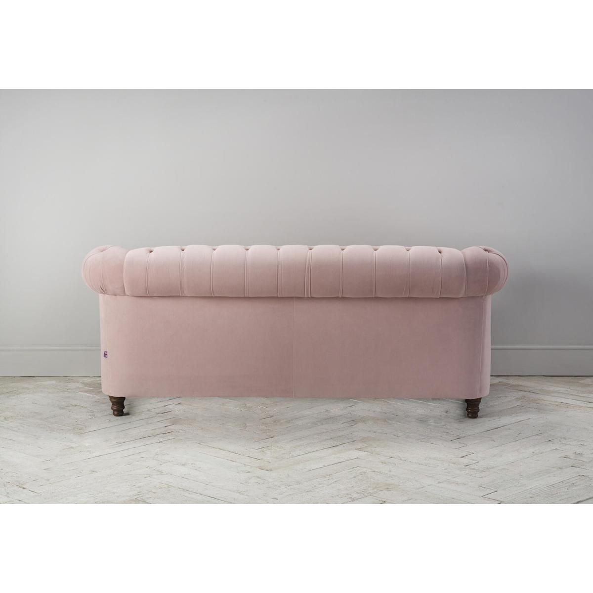 I love this three-seater in a soft blush pink because it adds a subtle touch of colour without overpowering a room. It works particularly well in neutral, modern interiors or boho spaces where its classic shape can be complemented with textured cushions and throws. To style it effectively, consider pairing it with warm wooden accents or metallic accessories to create a balanced look. Lots of cushions and a statement rug will help to make the sofa feel inviting and cosy. It’s versatile enough to sit comfortably in both contemporary and vintage-inspired interiors, making it a reliable choice for adding a bit of softness and colour to a space.