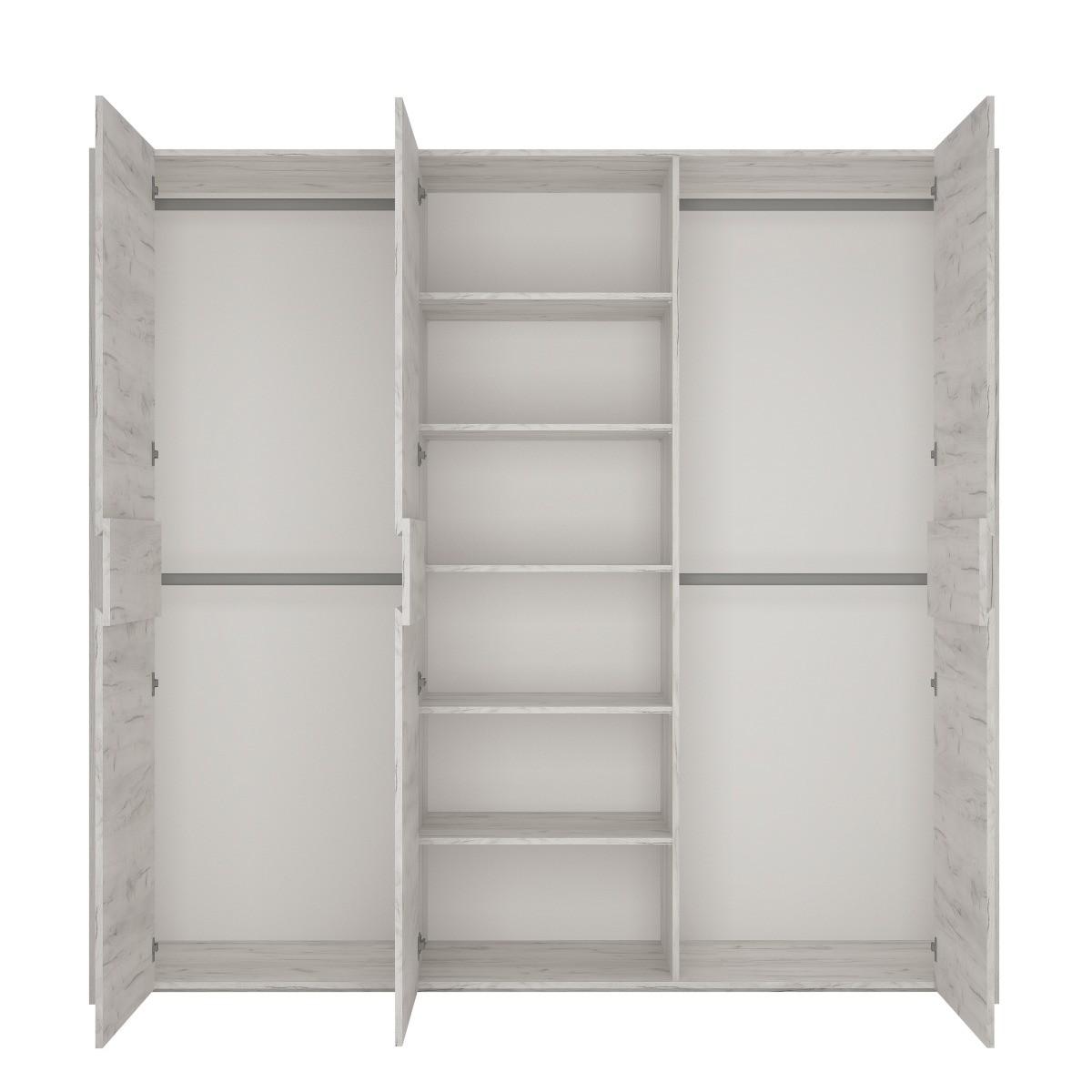 Cool and contemporary, the divine Alghero collection exudes a celestial sense of calm. Expertly finished in a stylish hard wearing white crafted oak melamine, indulge your clothes with a luxurious amount of space. With four hanging rails and generous shelving, this wardrobe is a welcome addition to any bedroom. Highly durable child-friendly laminate. Decorative gently rounded MDF mouldings. Adjustable shelving to suit your needs. Four generous hanging rails. Easy self-assembly
