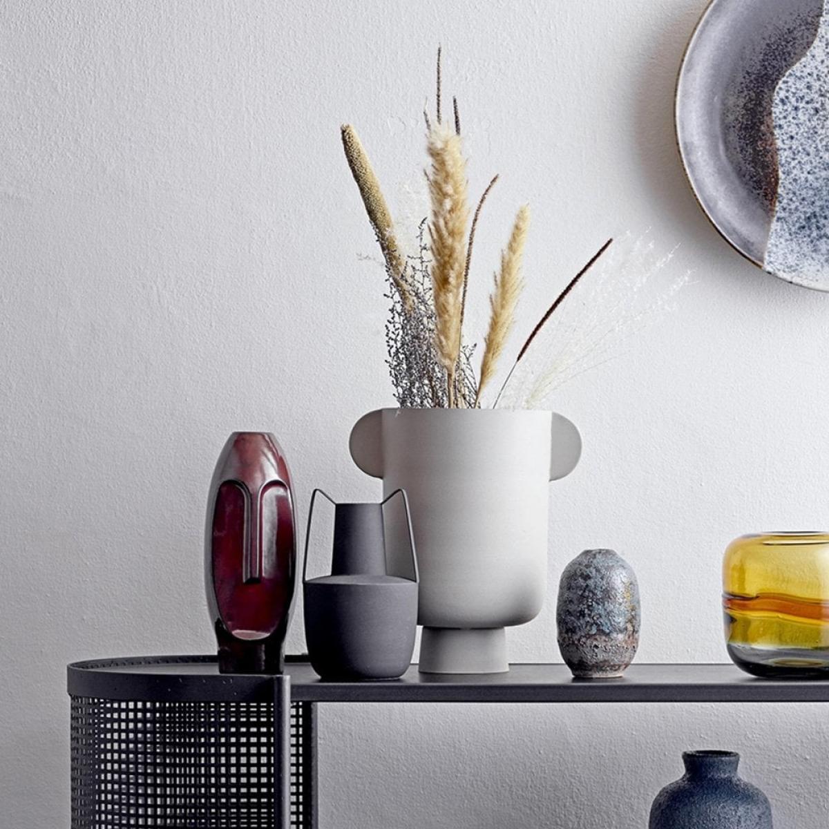 A hyper-modern, elegant, and smooth tall Vase, our metal vase with handles is a soft canvas for your favourite flowers. A minimalistic contemporary vase for living rooms, hallways, or commercial spaces. For a cohesive and modern look, combine with other Home Accessories from Cult Furniture.
