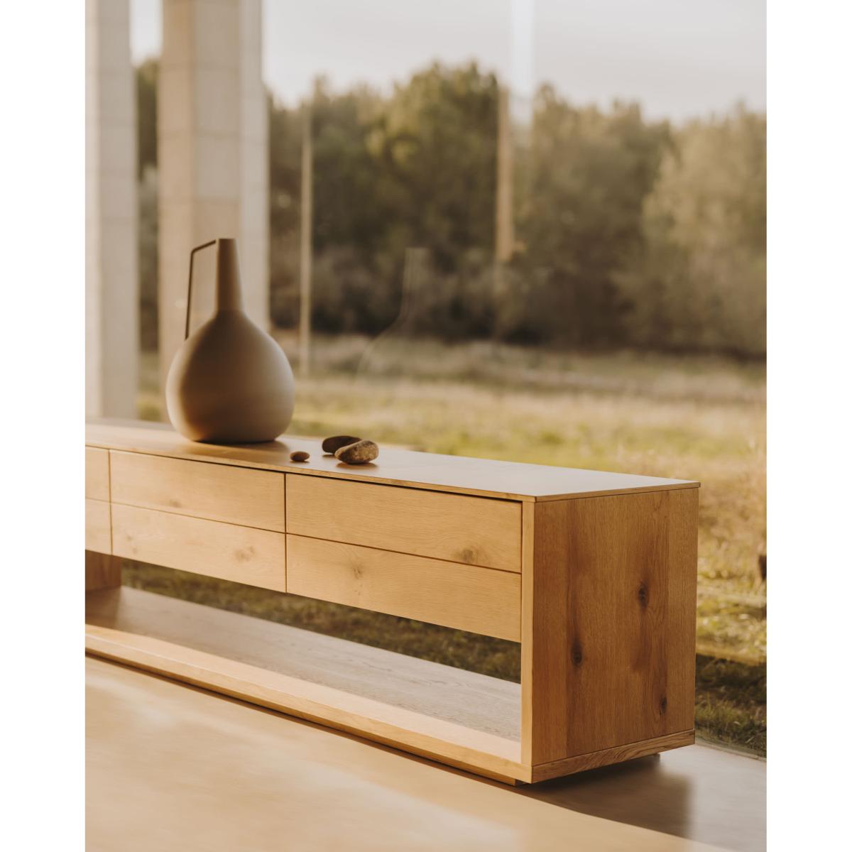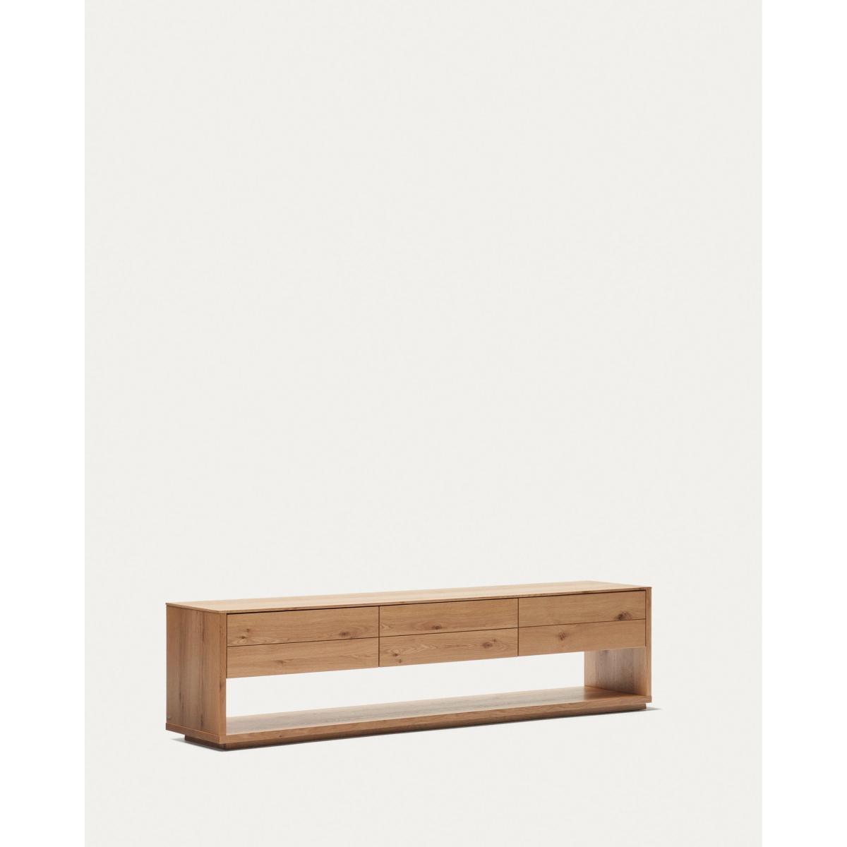 Alguema TV stand with 3 drawers in oak veneer with natural finish, 200 x 51 cm