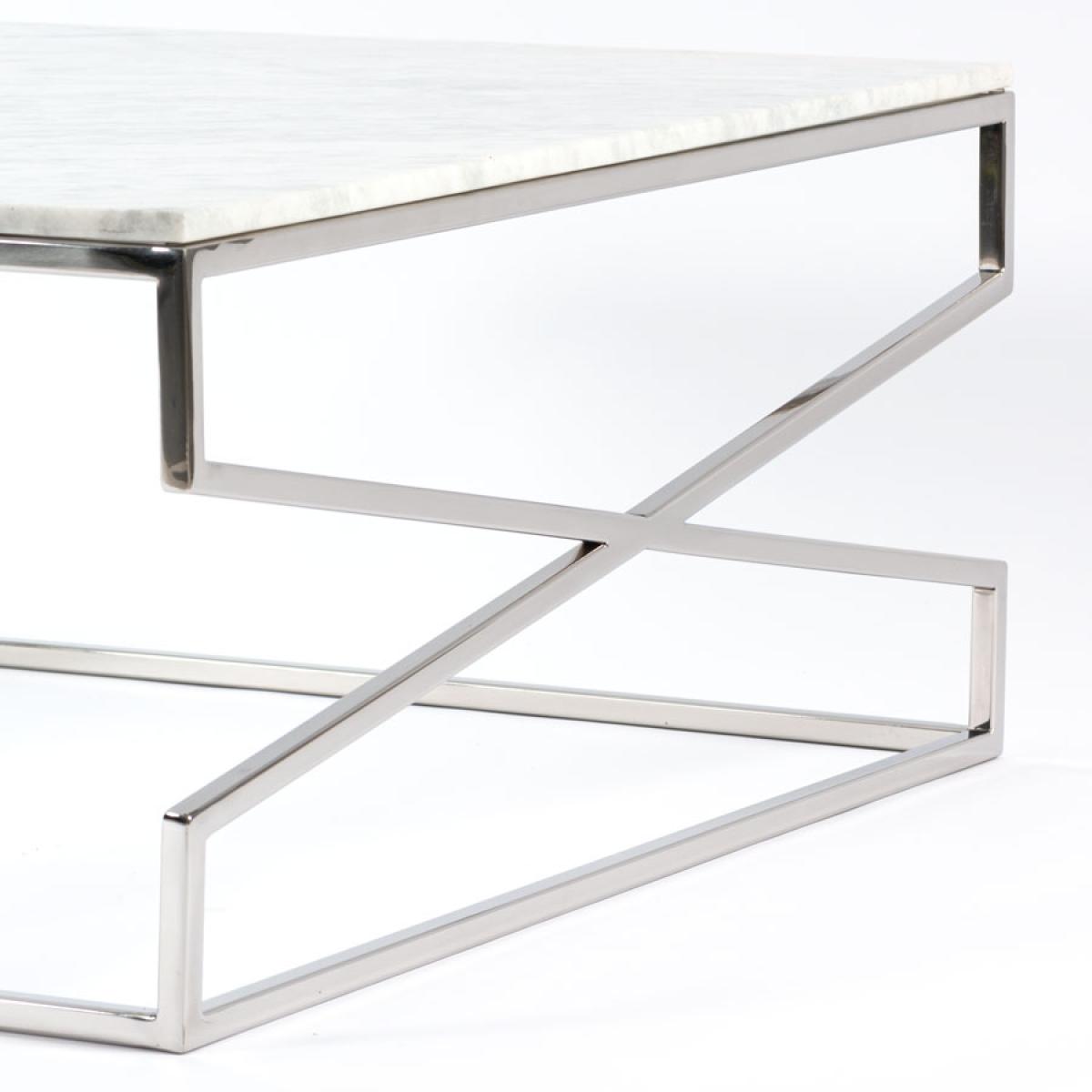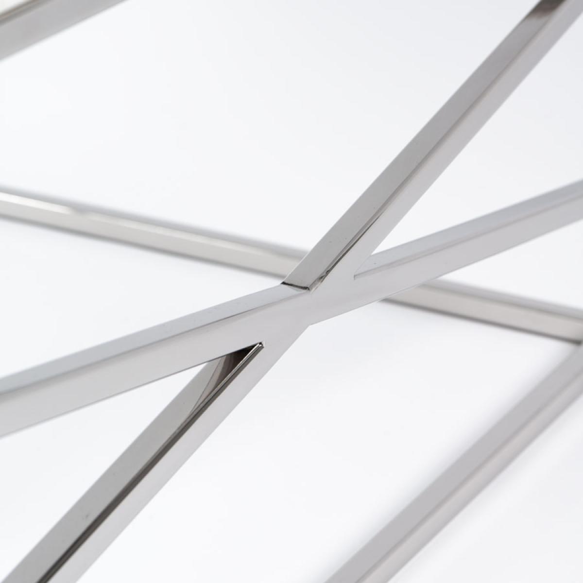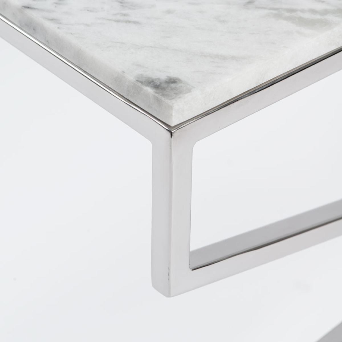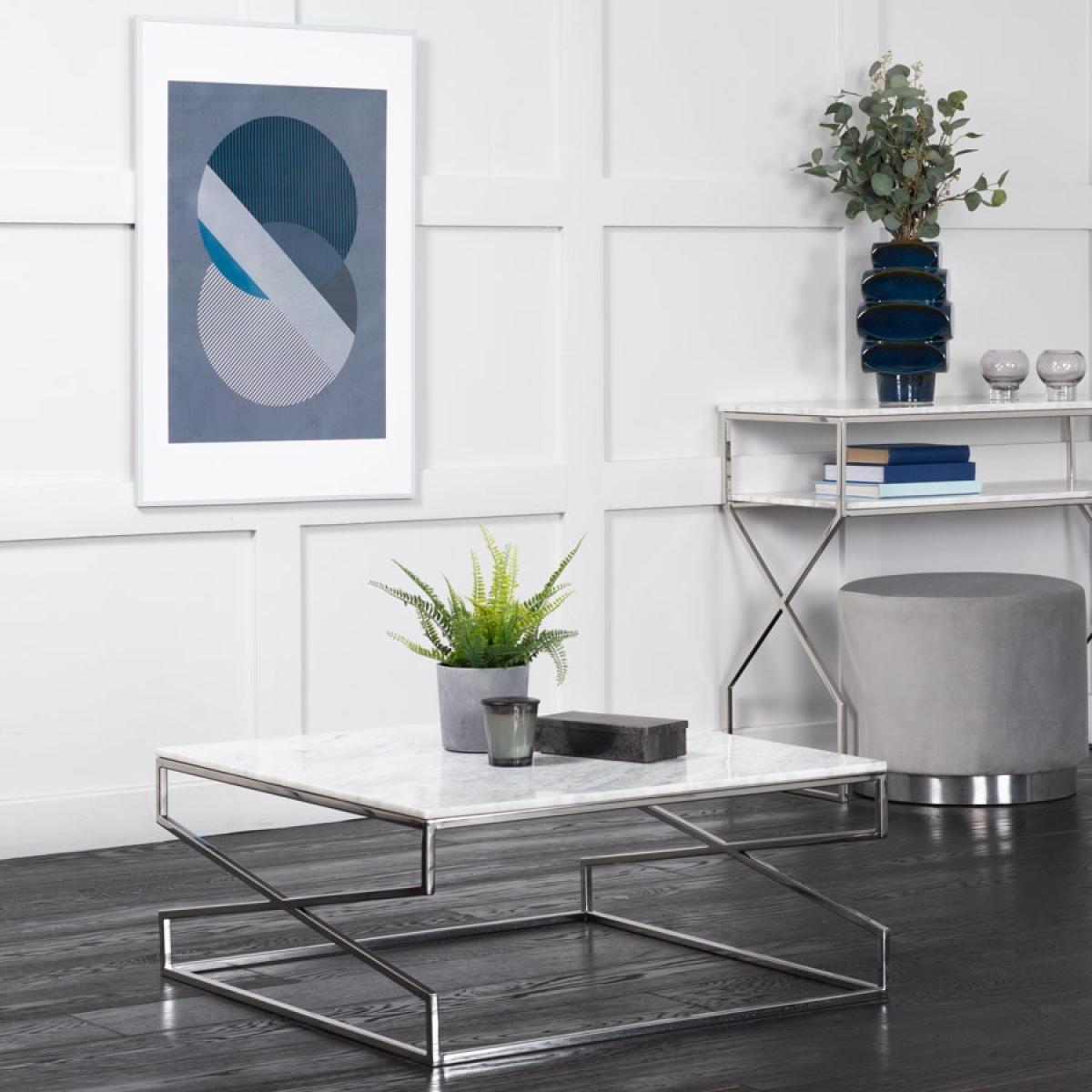 Glamorous design, Inspired by mesmerising geometric patterns from the Alhambra Palace. High quality, steel construction with silver finish. Solid marble top. Due to its natural formation every piece of marble is unique. There may be subtle differences in colour, tone and composition from the image shown. On occasions fissures may be present, these are natural characteristics and do not compromise the marble’s structural integrity. Wipe with a soft, dry cloth. Avoid using chemical based cleaners as these could damage the finish.