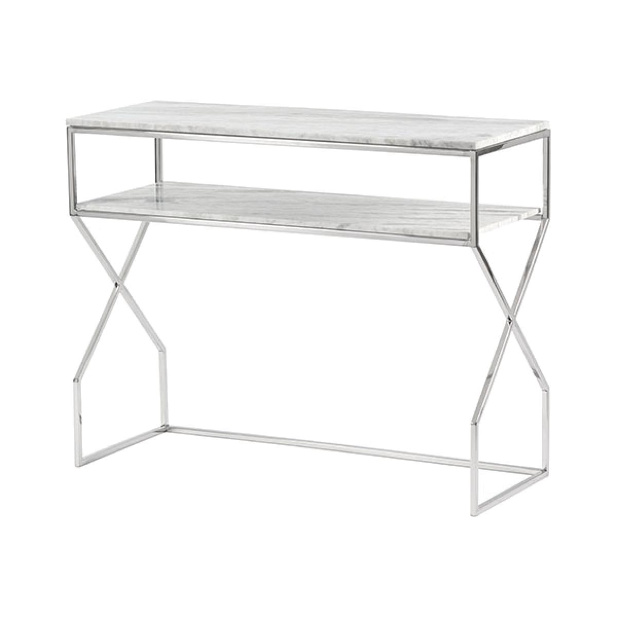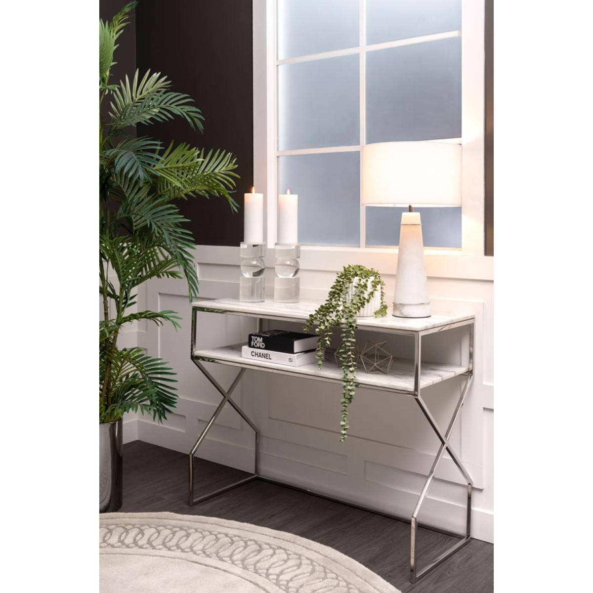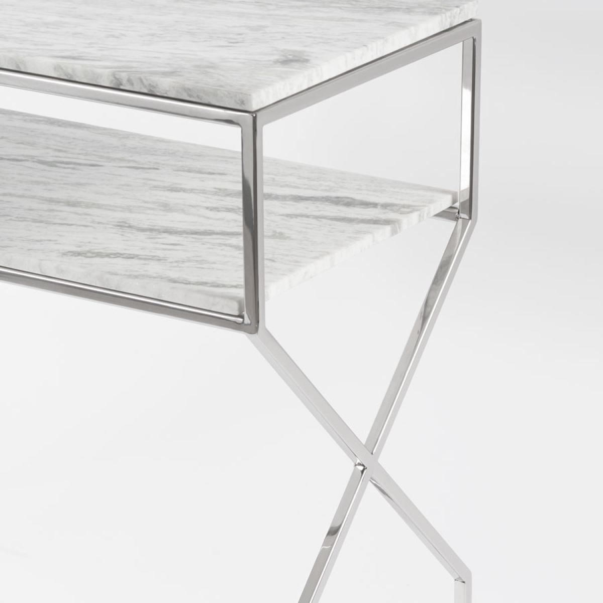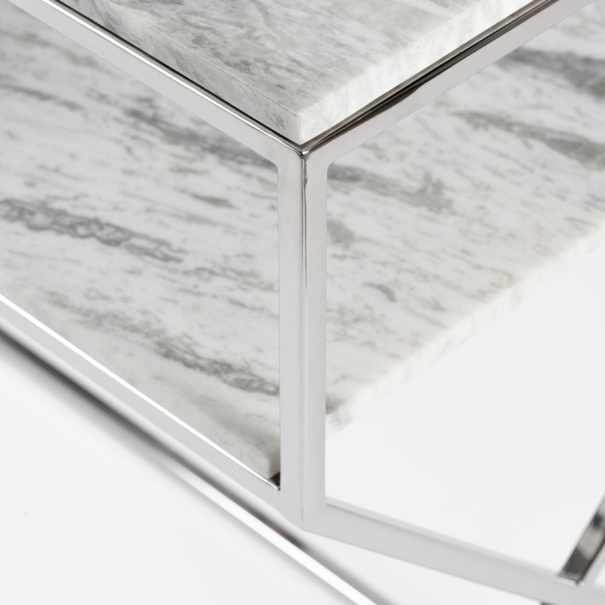 Glamorous design, Inspired by mesmerising geometric patterns from the Alhambra Palace. High quality, steel construction with silver finish. Solid marble top. Due to its natural formation every piece of marble is unique. There may be subtle differences in colour, tone and composition from the image shown. On occasions fissures may be present, these are natural characteristics and do not compromise the marble’s structural integrity. Wipe with a soft, dry cloth. Avoid using chemical based cleaners as these could damage the finish.