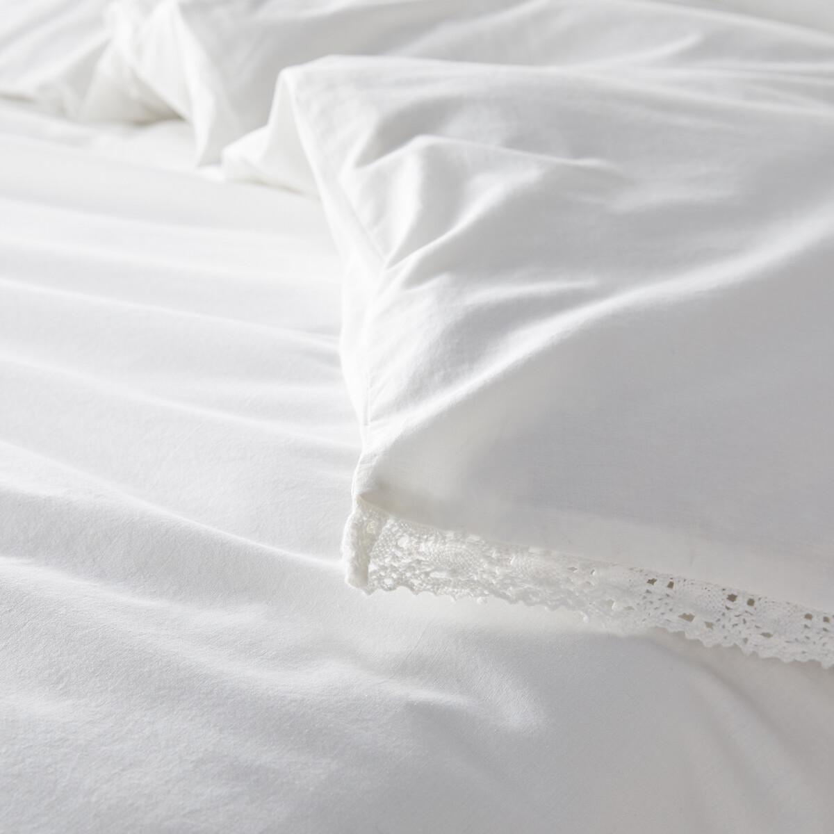 A charming washed cotton duvet cover. Romantic and refined, this time-honoured and traditional style duvet cover is decorated with a delicate crochet lace finish. The washed cotton has been delicately bleached during its manufacture. Soft, supple and comfortable, it softens over time. Its slightly wrinkled appearance is incredibly on-trend, and it does not require ironing. Product Details • 100% cotton • 144 thread count • Straight buttoned hem Care Advice • Machine washable at 60°C • By washing your laundry at 40°C instead of 60°C, you limit energy consumption. Dimensions • 140 x 200cm: Single • 200 x 200cm: Double • 240 x 220cm: King • 260 x 240cm: King. Pillowcases sold separately. • OEKO-TEX® Standard 100. Standard 100 certification by OEKO-TEX® tests textile products for harmful substances via an independent, international label.