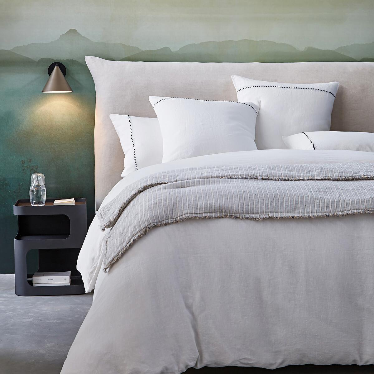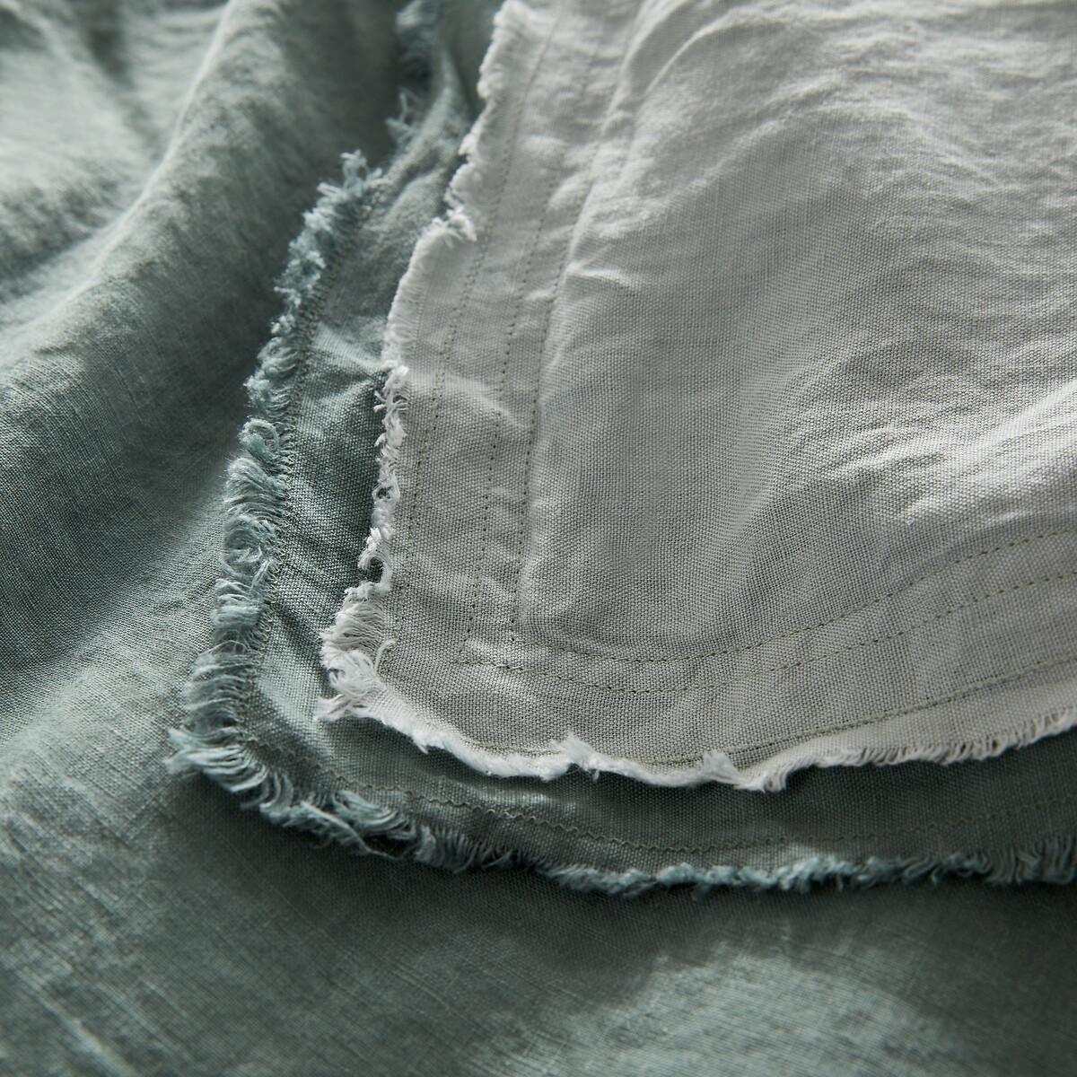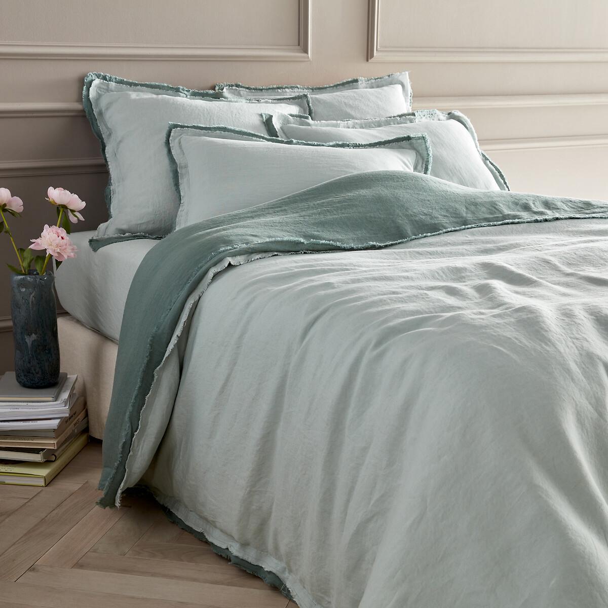 The Alhanasia Double Fringe Washed Linen Duvet Cover. With its double fringe finish, this washed linen bedding brings a refined note. A unique blend of authenticity, comfort and elegance, linen is fresh in summer and comfortable in winter.. Grown in Europe, washed linen is easy to live with and slightly wrinkled since it does not iron. Washed for more softness, it becomes more tactile and more beautiful wash after wash.. Product Details • 100% linen • Washed linen • Straight buttoned hem Care Advice Follow our care tips to maintain the quality of your laundry • Machine washable at 40°C • Tumble dry at low temperature • Iron at average temperature • Do not dry clean Origin of the product and manufacturing steps • Linen fibre: Western Europe (France, Belgium or the Netherlands) • Spinning: Europe. Dimensions • 140 x 200cm: Single • 200 x 200cm: Double • 240 x 220cm: King • 260 x 240cm: King • Made in Europe. • Fibre grown in Europe. Linen is a fibre requiring little irrigation and limited use of pesticides. This linen fibre is of European origin. • OEKO-TEX® Standard 100. Standard 100 certification by OEKO-TEX® tests textile products for harmful substances via an independent, international label.