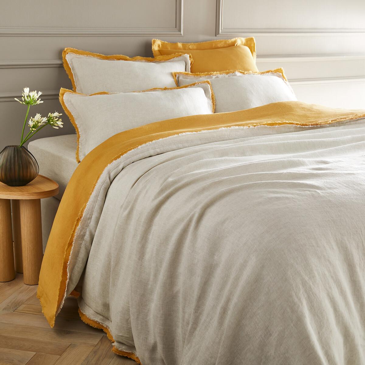 With its double fringe finish, this washed linen bedding brings a refined note. A unique blend of authenticity, comfort and elegance, linen is fresh in summer and comfortable in winter.. Grown in Europe, washed linen is easy to live with and slightly wrinkled since it does not iron. Washed for more softness, it becomes more tactile and more beautiful wash after wash.. Product Details • 100% linen • Washed linen • Straight buttoned hem Care Advice Follow our care tips to maintain the quality of your laundry • Machine washable at 40°C • Tumble dry at low temperature • Iron at average temperature • Do not dry clean Origin of the product and manufacturing steps • Linen fibre: Western Europe (France, Belgium or the Netherlands) • Spinning: Europe. Dimensions • 140 x 200cm: Single • 200 x 200cm: Double • 240 x 220cm: King • 260 x 240cm: King • MADE IN PORTUGAL. • Fibre grown in Europe. Linen is a fibre requiring little irrigation and limited use of pesticides. This linen fibre is of European origin. • OEKO-TEX® Standard 100. Standard 100 certification by OEKO-TEX® tests textile products for harmful substances via an independent, international label.
