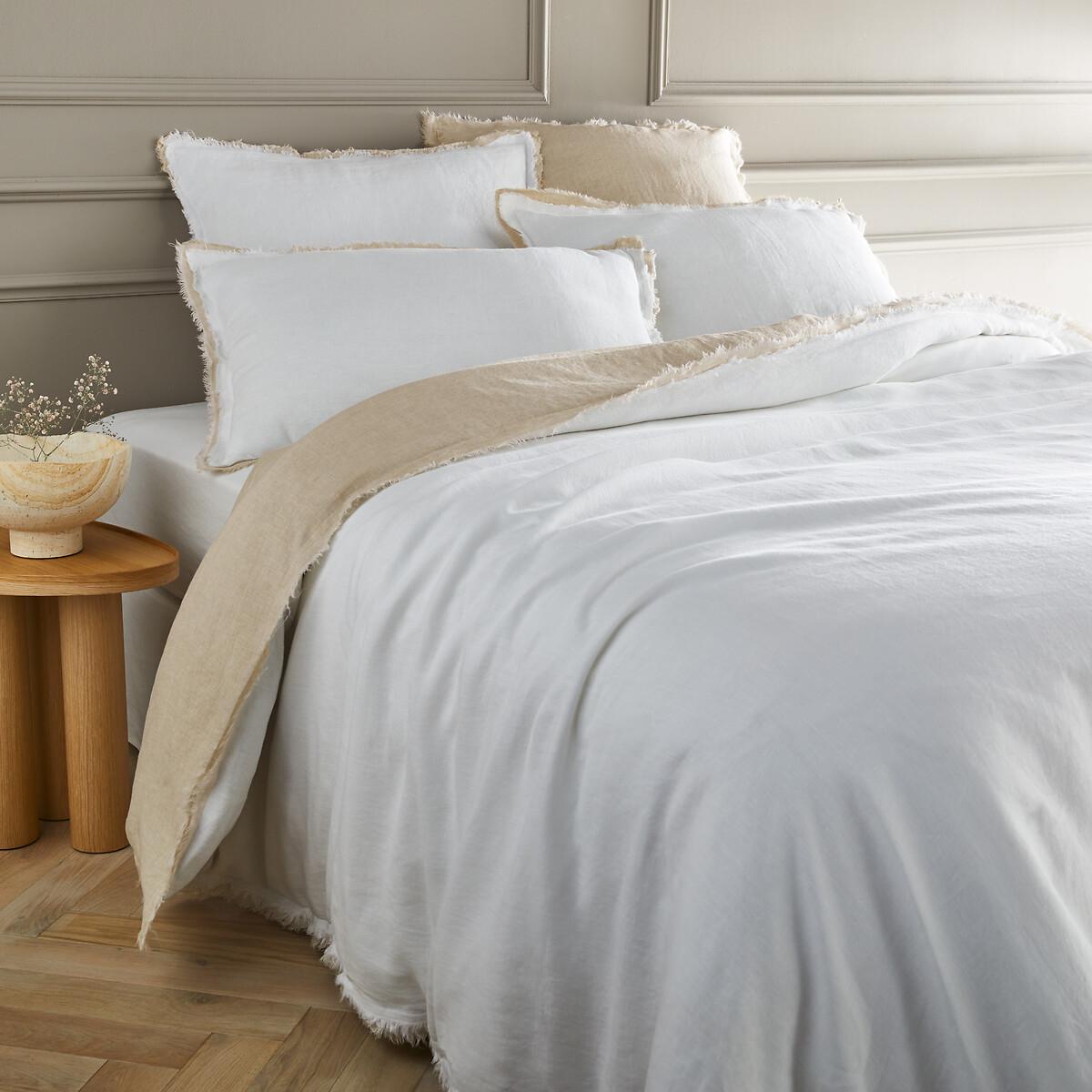 With its double fringe finish, this washed linen bedding brings a refined note. A unique blend of authenticity, comfort and elegance, linen is fresh in summer and comfortable in winter.. Grown in Europe, washed linen is easy to live with and slightly wrinkled since it does not iron. Washed for more softness, it becomes more tactile and more beautiful wash after wash.. Product Details • 100% linen • Washed linen • Straight buttoned hem Care Advice Follow our care tips to maintain the quality of your laundry • Machine washable at 40°C • Tumble dry at low temperature • Iron at average temperature • Do not dry clean Origin of the product and manufacturing steps • Linen fibre: Western Europe (France, Belgium or the Netherlands) • Spinning: Europe. Dimensions • 140 x 200cm: Single • 200 x 200cm: Double • 240 x 220cm: King • 260 x 240cm: King • MADE IN PORTUGAL. • Fibre grown in Europe. Linen is a fibre requiring little irrigation and limited use of pesticides. This linen fibre is of European origin. • OEKO-TEX® Standard 100. Standard 100 certification by OEKO-TEX® tests textile products for harmful substances via an independent, international label.