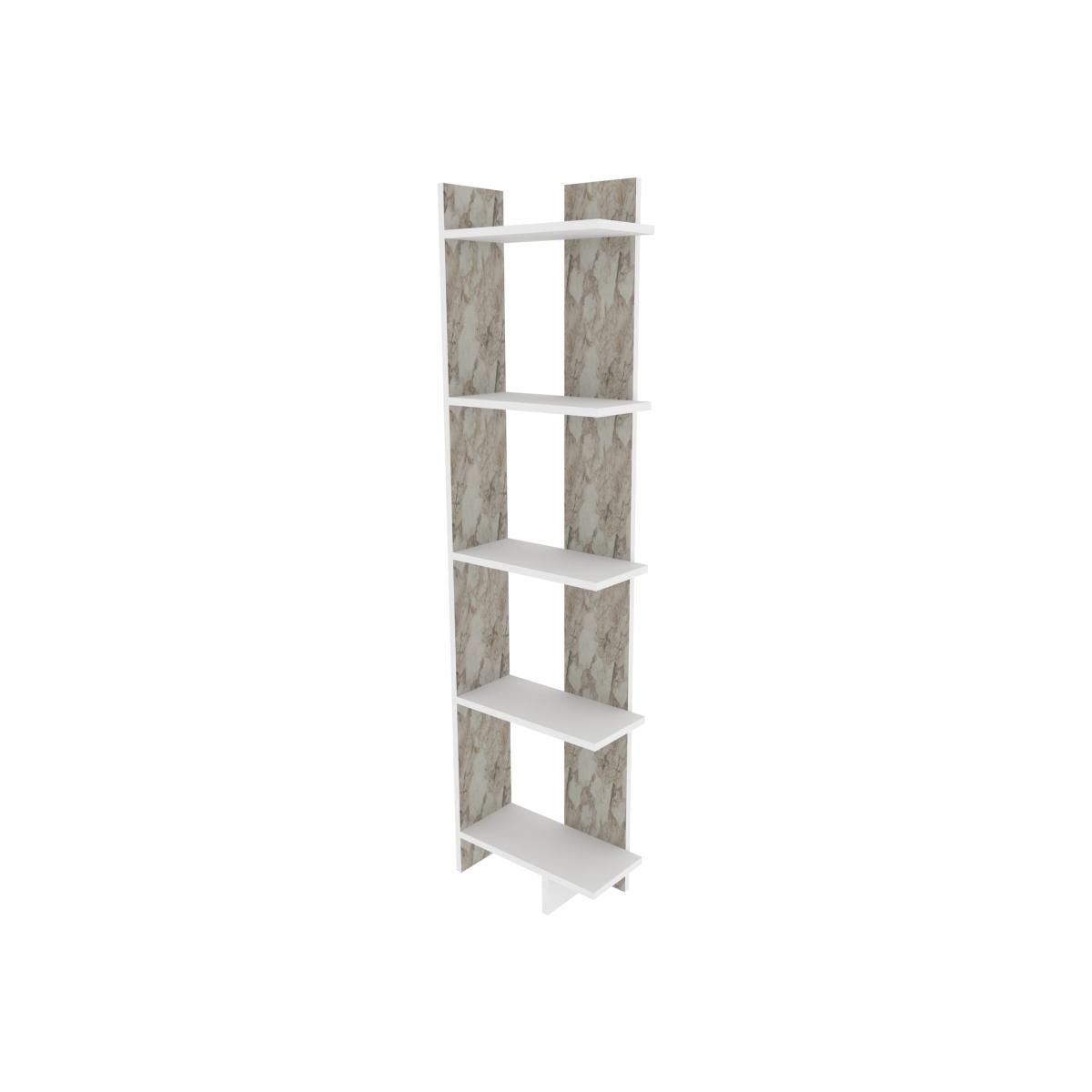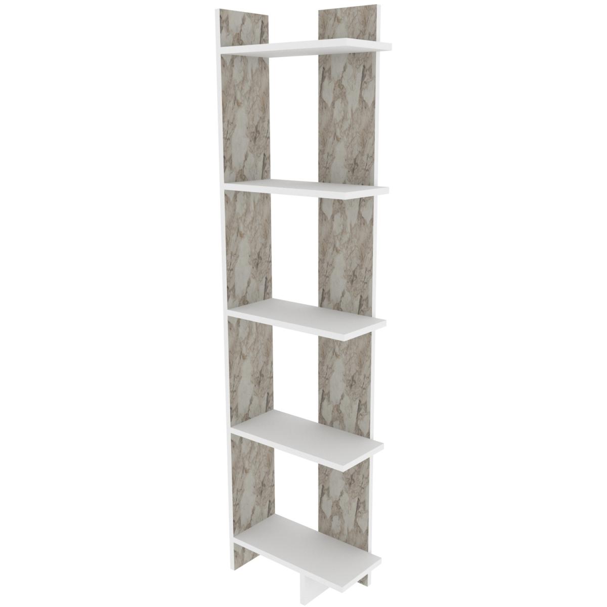 Alica 170cm Tall Bookcase with 5 Shelves - Ephesus Marble Effect and White
