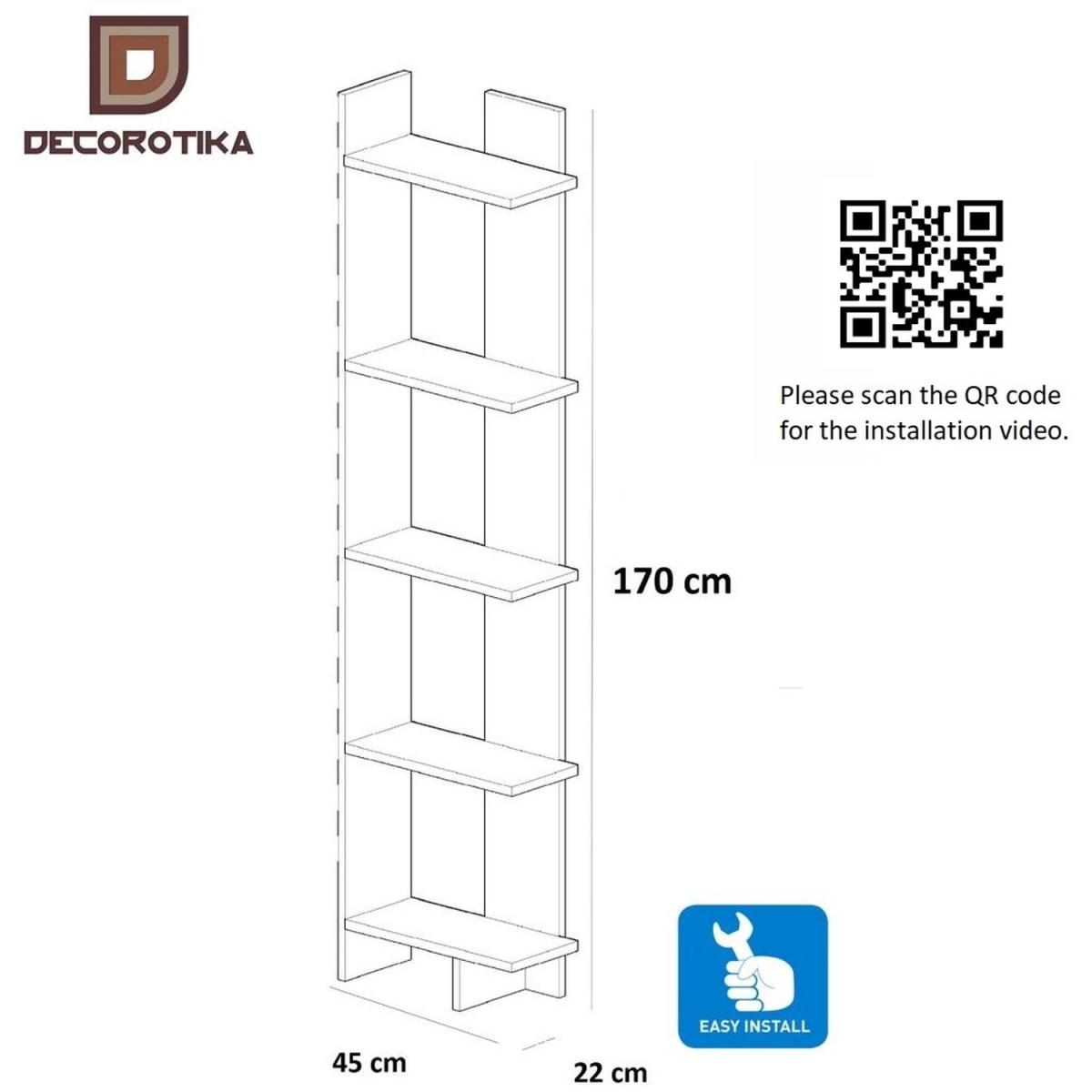A streamlined, architectural update on a modern design, 170 cm tall ladder corner unit bookcase displays your books and decor in a minimalist style. It can be assembled in the right and left directions. This bookcase strikes a tall, open silhouette. Designed to fit right in the corner of your room, this space-saving design includes five shelves for displaying all your novels, framed photos, and collected curios. The bookcase is made of 18mm thick quality melamine coated particleboard and banded with first-class PVC edge banding tape.