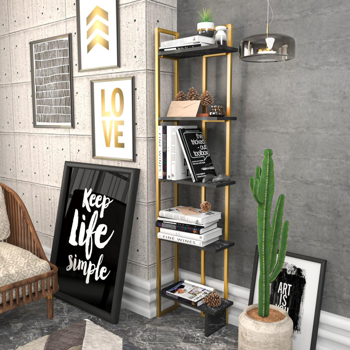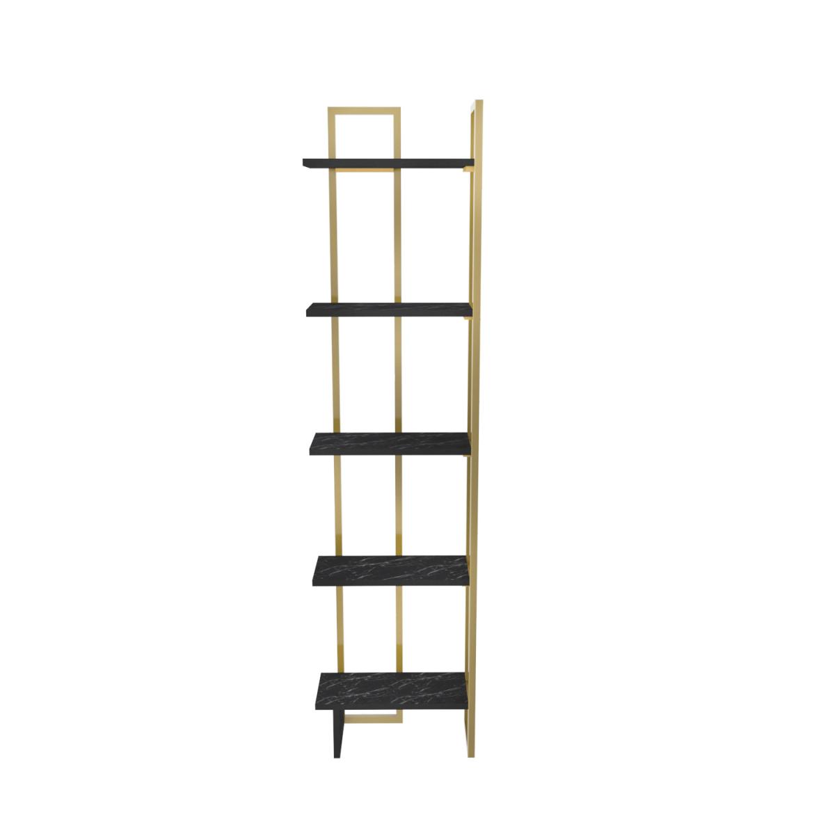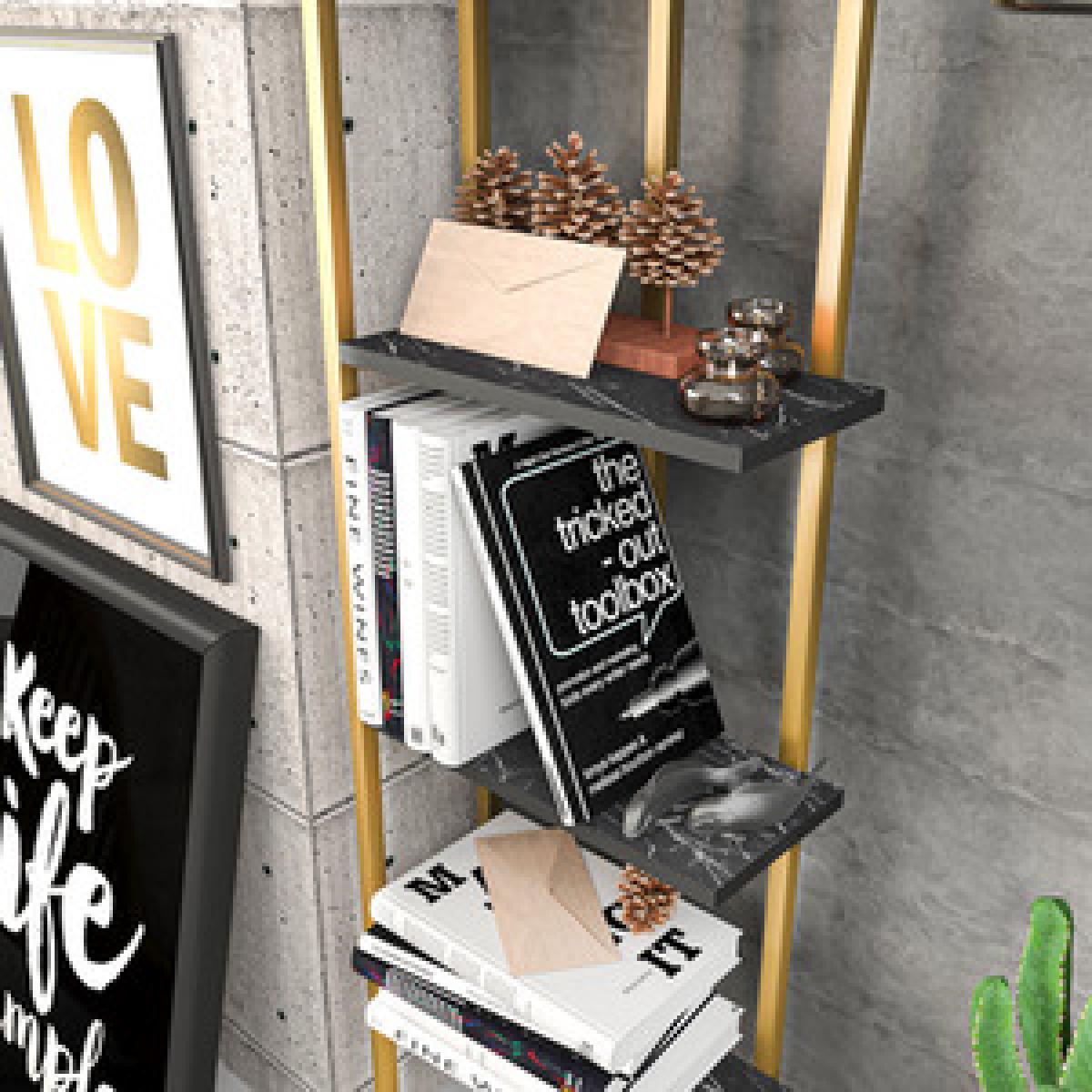 Alice 180cm Industrial Bookshelf 5 Shelves - Marble Black and Gold