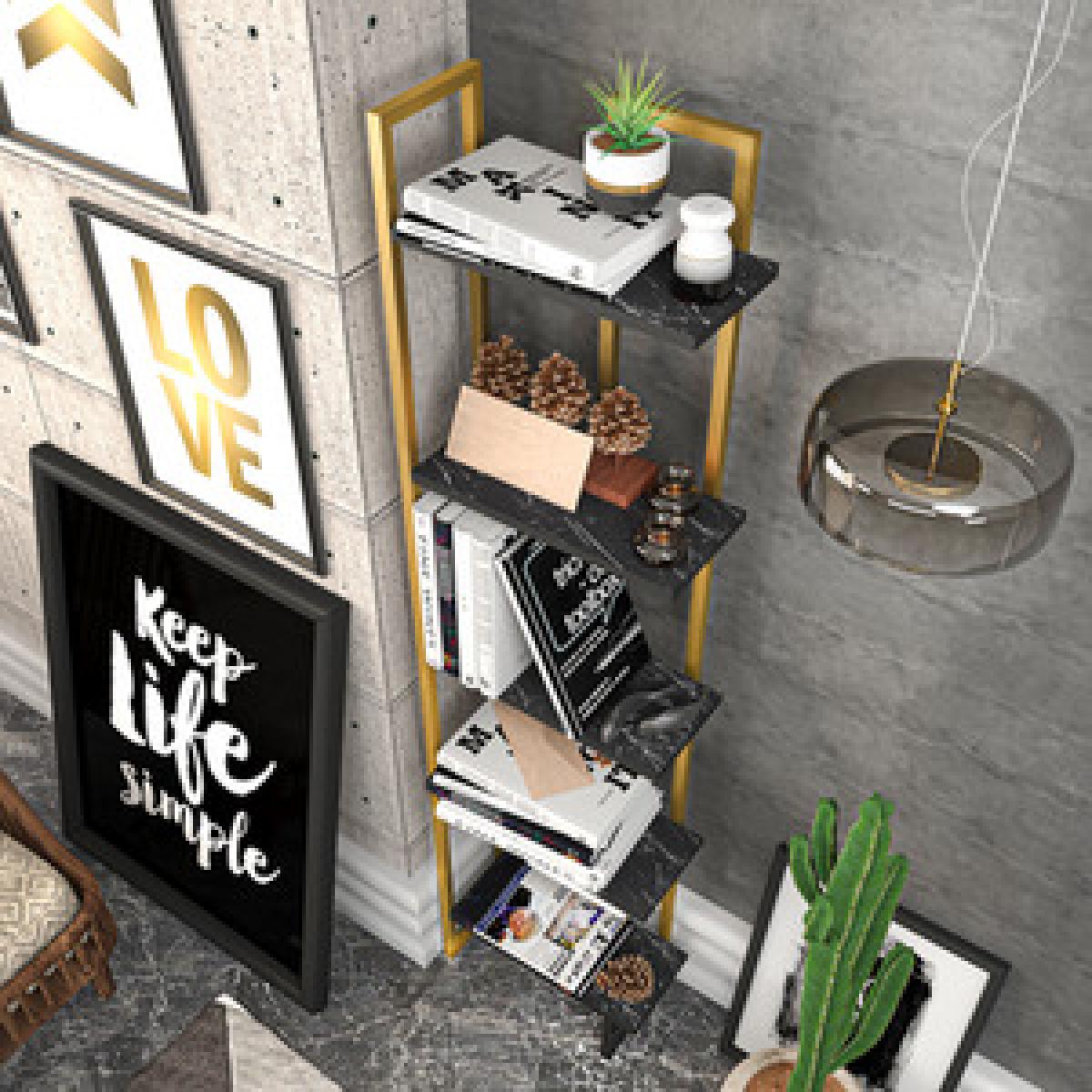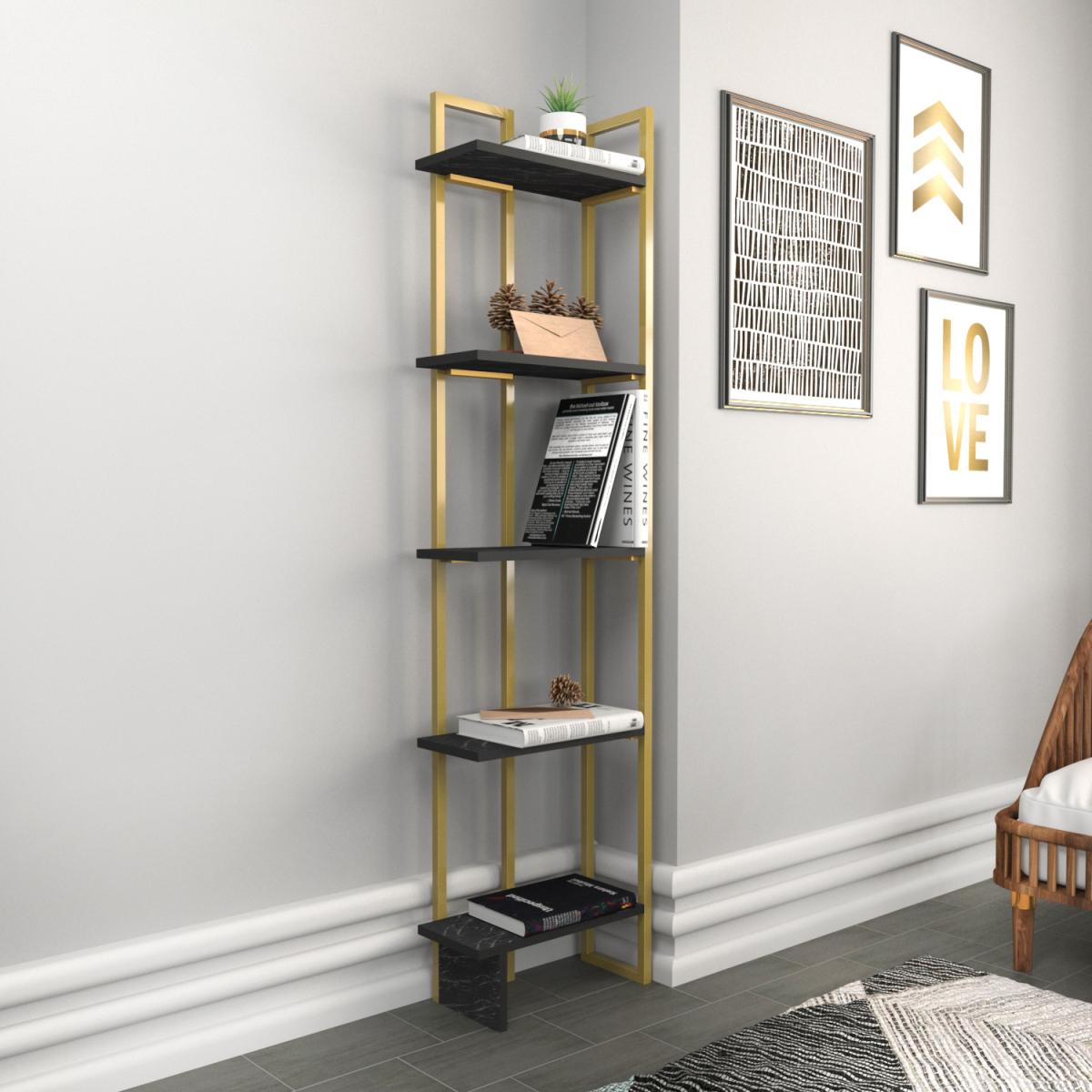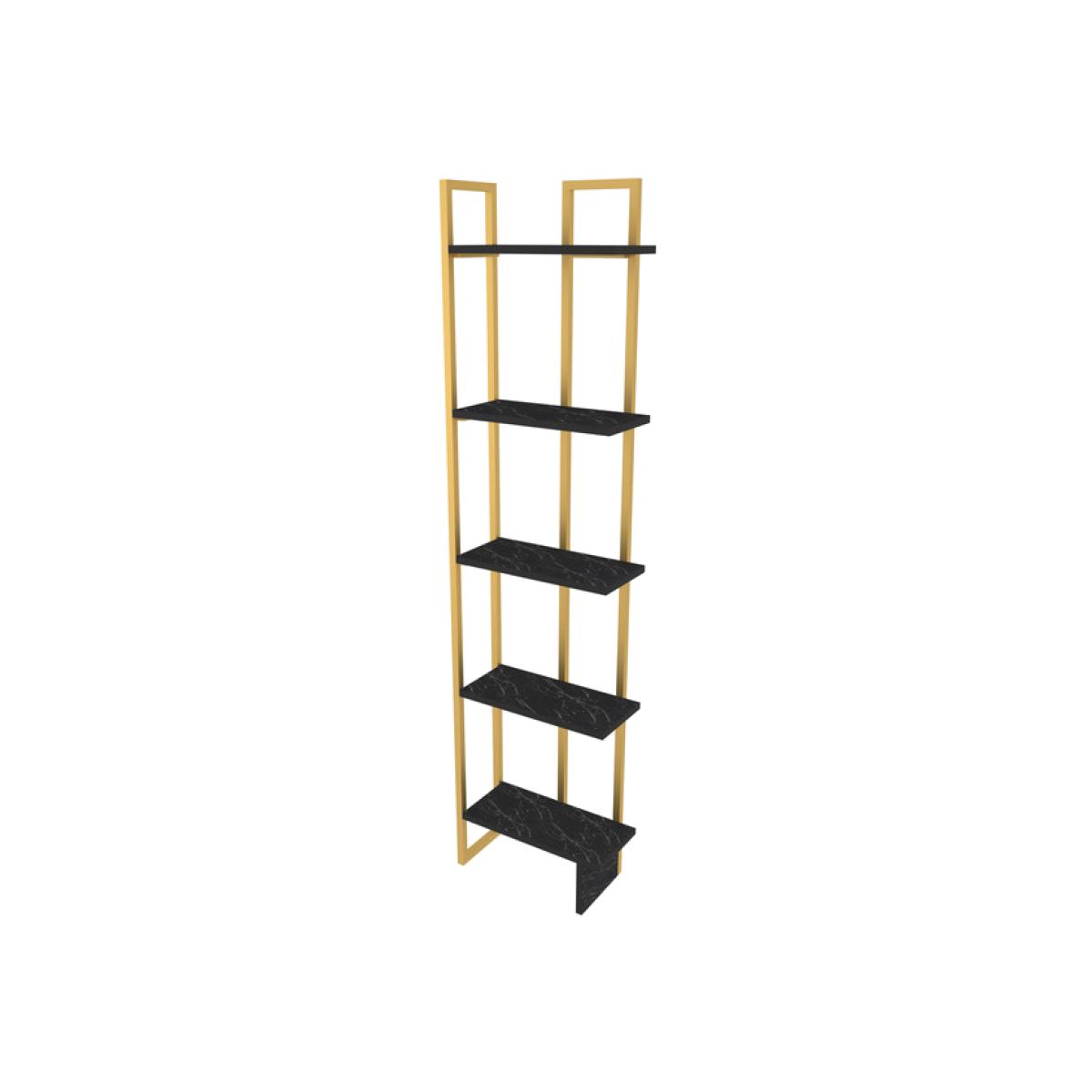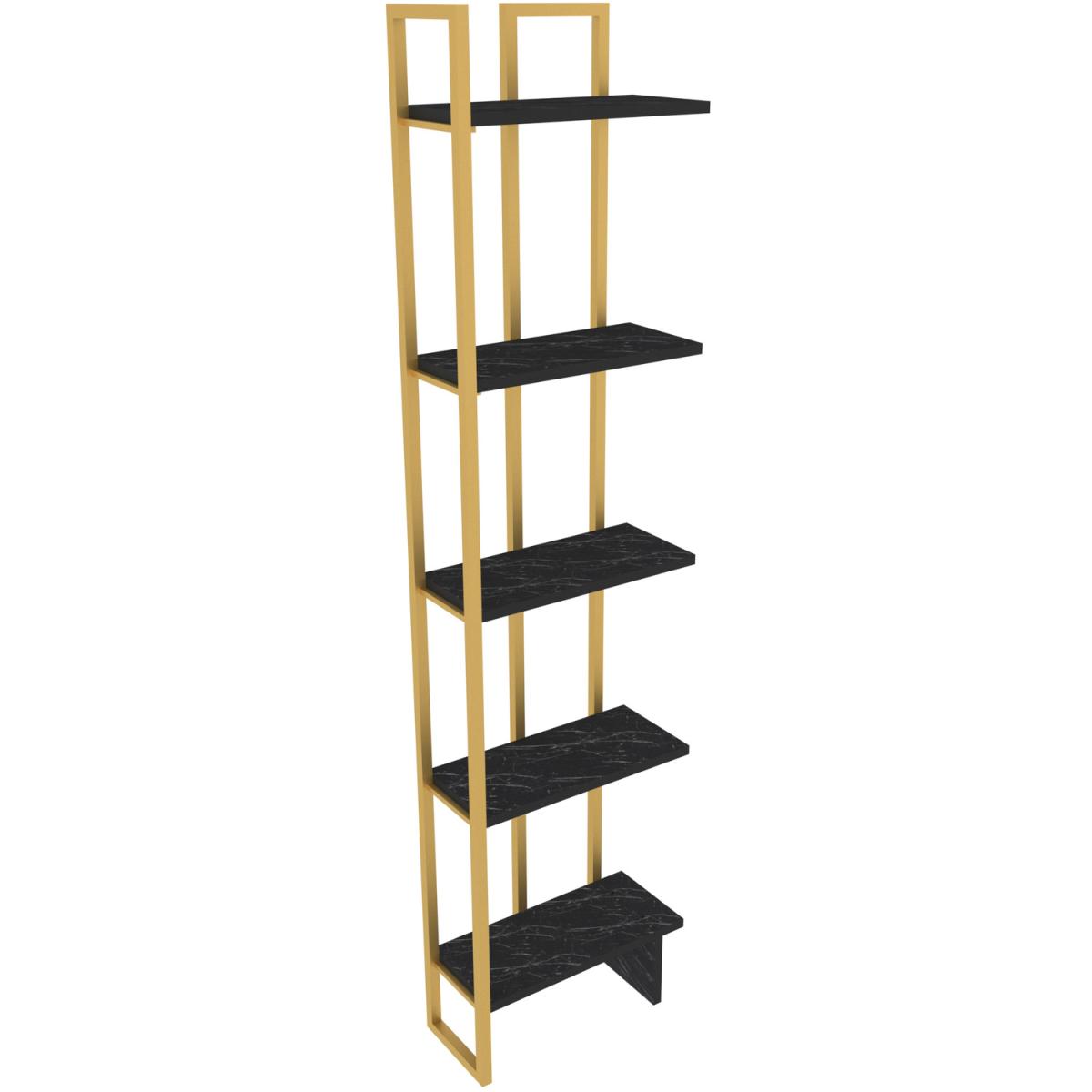 Alice 180cm Industrial Bookshelf 5 Shelves - Marble Black and Gold