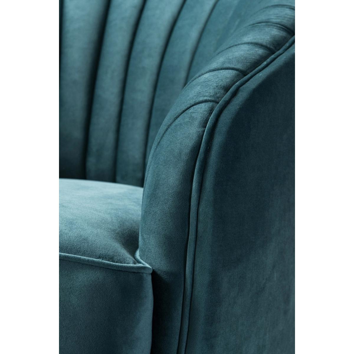 Inspired by the golden age of Hollywood, this is a glamourous armchair which will add distinctive character to your interior. Generous, deep foam and fibre filling. Sprung seat and backrest for maximum comfort. Velvet upholstery fabric. Black glide feet.