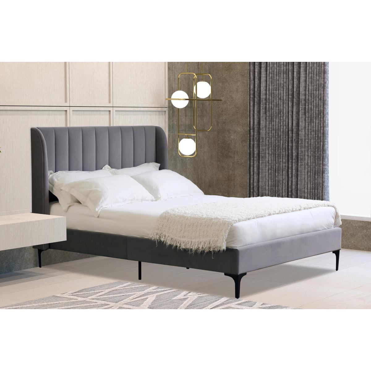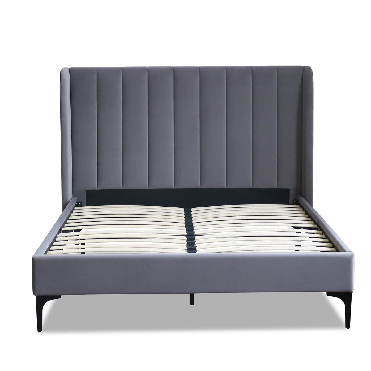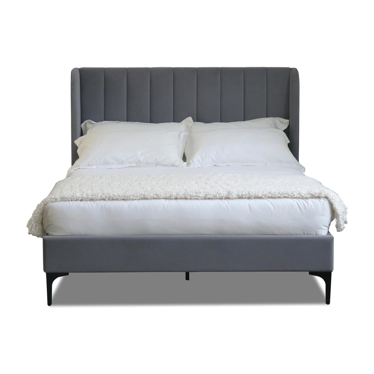 The Alice Bed is an elegant and luxurious way to sleep that's perfect for any bedroom. The sleek and modern bed frame features a high headboard to create a sense of sophistication and has been upholstered in sumptuous grey fabric to give dimension and texture to your space. It has slim black legs which contrast beautifully against the slate-toned fabric and has sprung wooden slats for ultimate comfort. This bed easily coordinates with your existing decor, thanks to the stylish design and charming colour