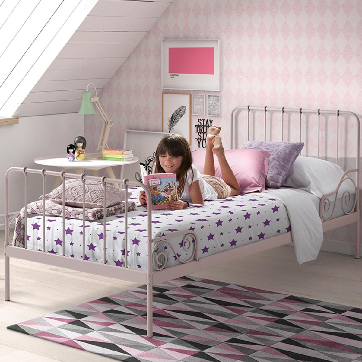 Alice Metal Single Kids Bed in Pink