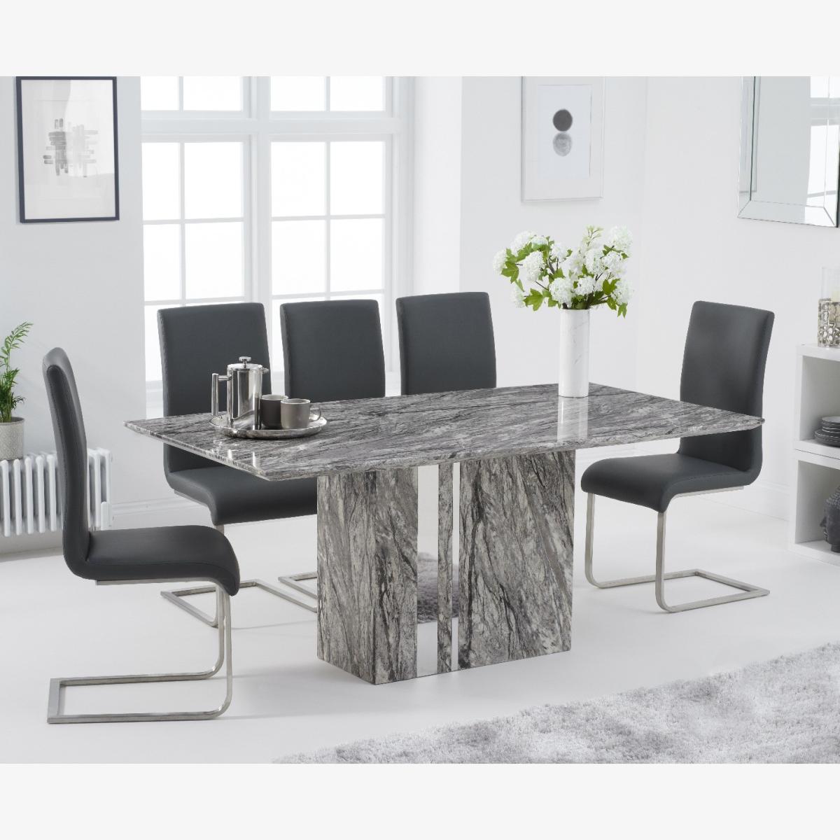 Alicia 180cm Grey Marble Dining Table With 6 Black Malaga Chairs