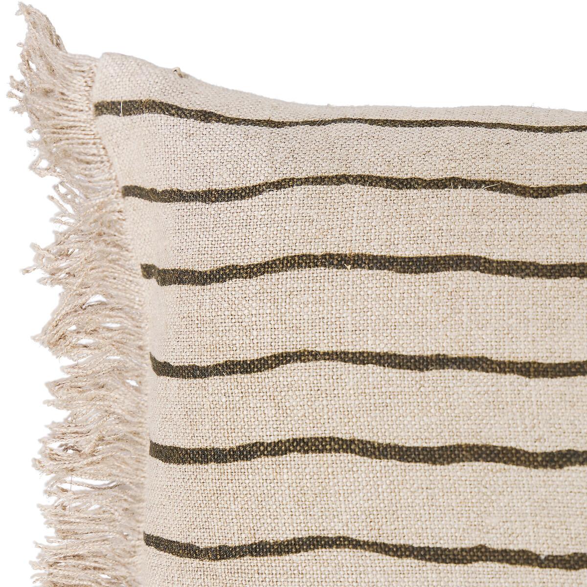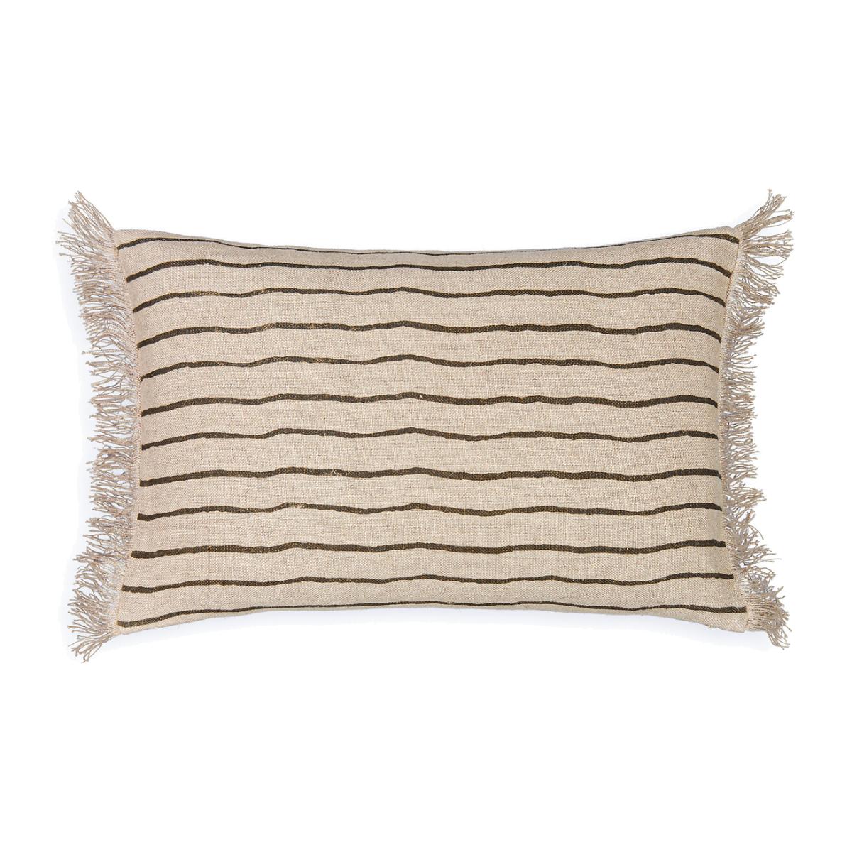 Decorated with contrasting stripes and long, fine fringes, the Alidi linen cushion cover creates an elegant atmosphere on a bed, sofa or armchair. Product Details • 100% linen • Stripes printed on both sides • Fringed trim on either end • Concealed zip fastening. Care Advice Follow our care tips to maintain the quality of your linens • Dry clean only. Size • 60 x 40cm Origin of the product and manufacturing steps• Linen fibre: Western Europe (France, Belgium or the Netherlands)• Weaving : Europe