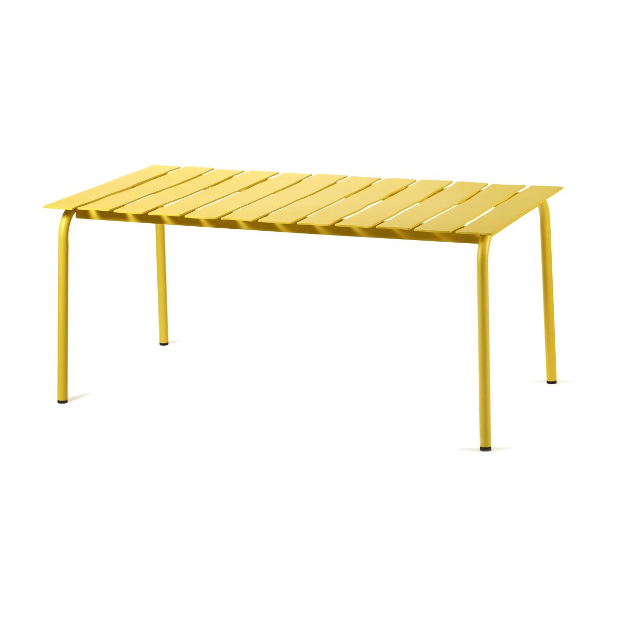 "Maarten Baas is one of the leading figures in Dutch design. Iconoclastic, subversive and brimming with fantasy, his creations sit at the crux of art and design. These are theatrical décor elements for everyday life: humorous furnishings with a rebellious edge. Through his controversial experimental work, Maarten Baas overturns preconceived ideas. He has forged his own world, happily pushing the boundaries of design to show another reality made up of strangeness, optical effects, illusion, play. After having created a tableware collection for valerie_objects, this time, Maarten Baas brings his vision of outdoor furnishings to the table, with his "Aligned" collection. This collection of outdoor tables and chairs revels in the concept of us all having an inner child, hidden away deep inside us. These creations contain a huge dose of spontaneity and naivety, translating a human touch into mechanically-produced objects. "The starting point was similar for each object that I create: creating a piece of design which is entirely functional and which appears to be hand-drawn", declared Baas. This way, Baas redefined outdoor furnishings, which are typically composed of metal frames and wooden slats, by designing the slats with pencil on paper, then by meticulously recreating them in reality using aluminium. "You can often find beauty in just a quick sketch", he explained. However, these spontaneous lines are also lost amidst an industrial process. This is how Maarten Baas adds organic shapes and irregular lines into a world of design centred around straight lines. "Although the underlying idea may seem simple, production is far from it", declares Baas. "Machines are truly gifted when it comes to creating straight lines. It's much harder to produce a twisted line". The result is "oh-so Maarten Baas": a design which appears to have been imagined by a child… The heat-lacquered aluminium slats contain slightly irregular and asymmetrical lines, deliberately and unapologetically imperfect. This playful and naive spirit is further reinforced by the small, forward-pointing armrests, which have an air of an outstretched arm and which give the seating a charismatic charm. ".