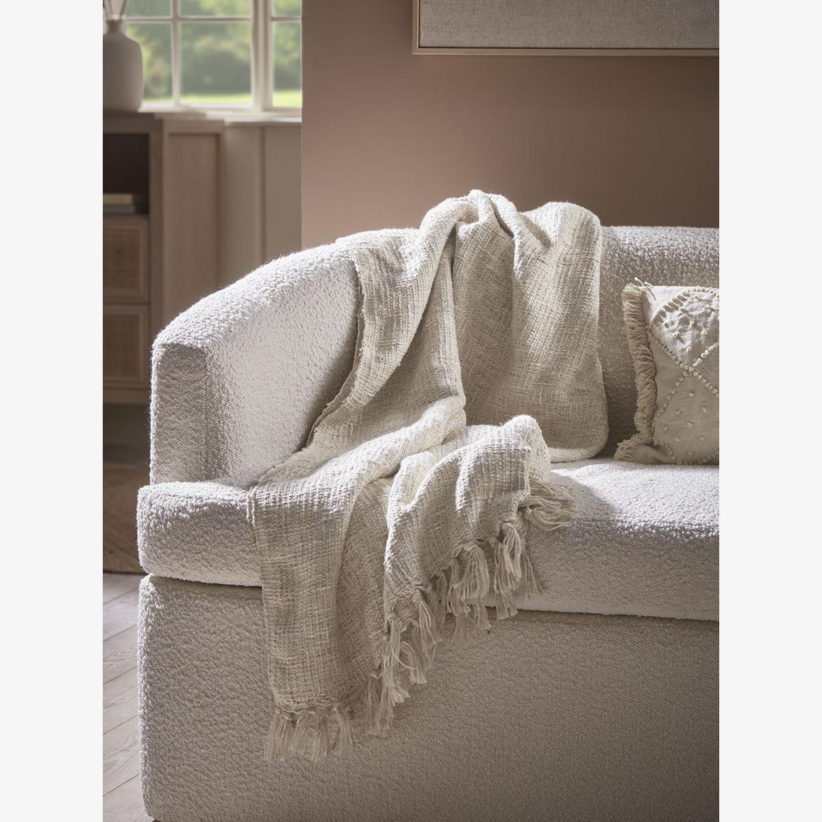 Snuggle down and add some comfort to your living space with our Alila Throw. Woven from a  soft blend of cotton and linen, this throw has knotted tassels on the edge, adding to the relaxed feeling of this throw. The neutral tones make it the perfect addition to our New Neutral collection, and allows it to blend seamlessly into a variety of homes.