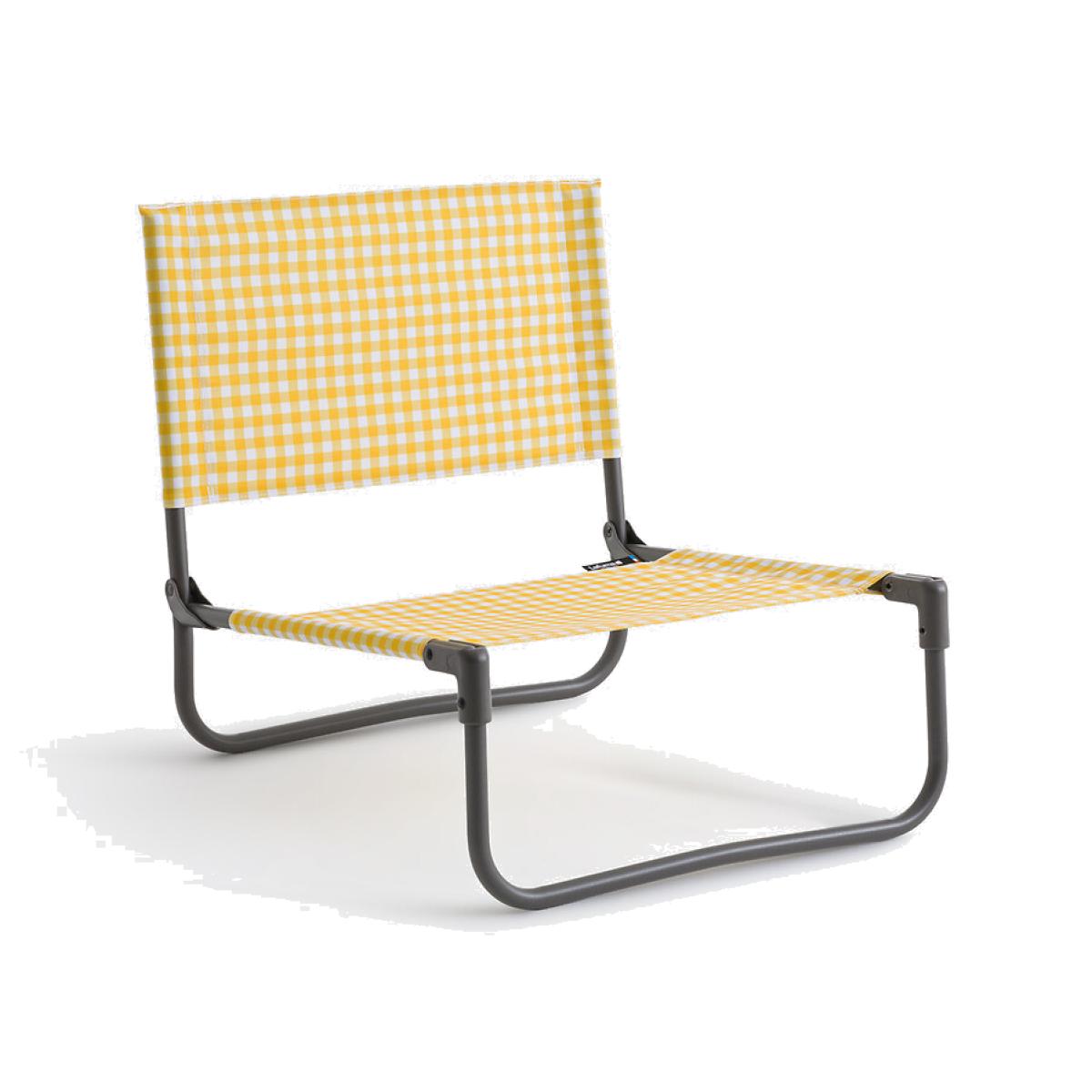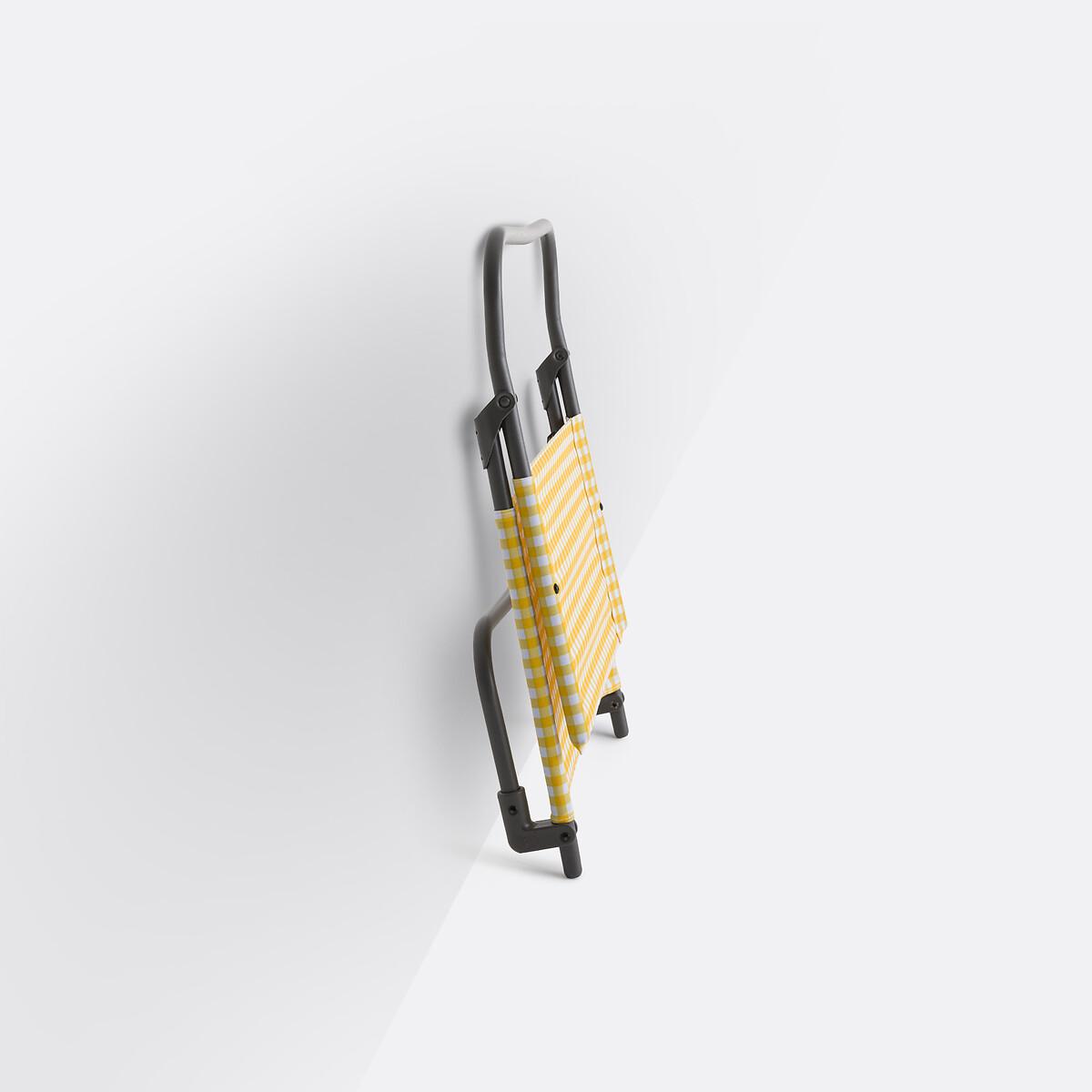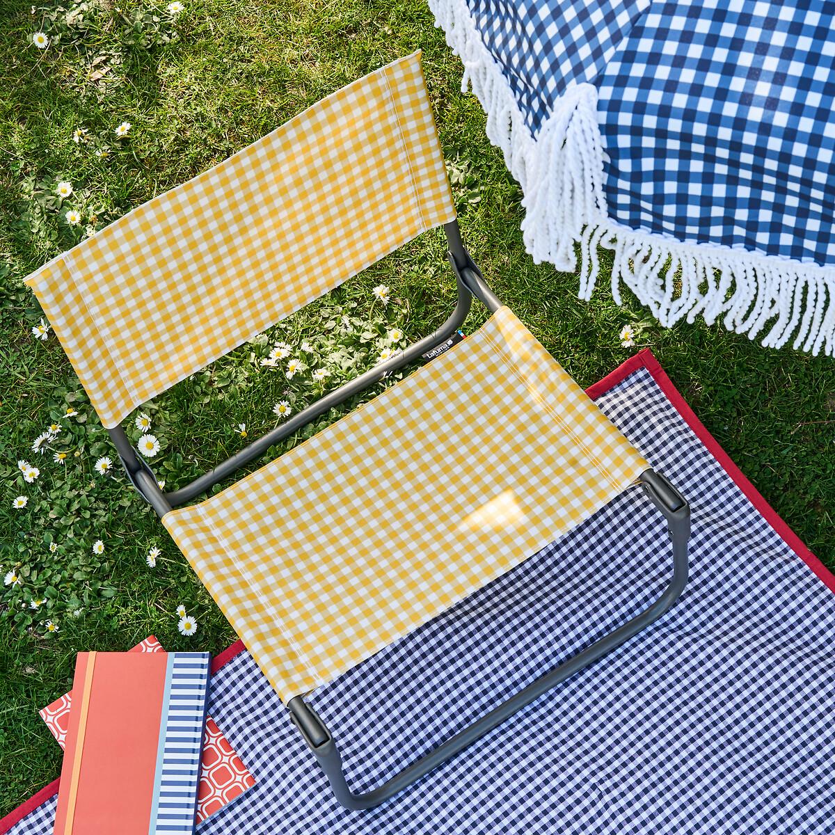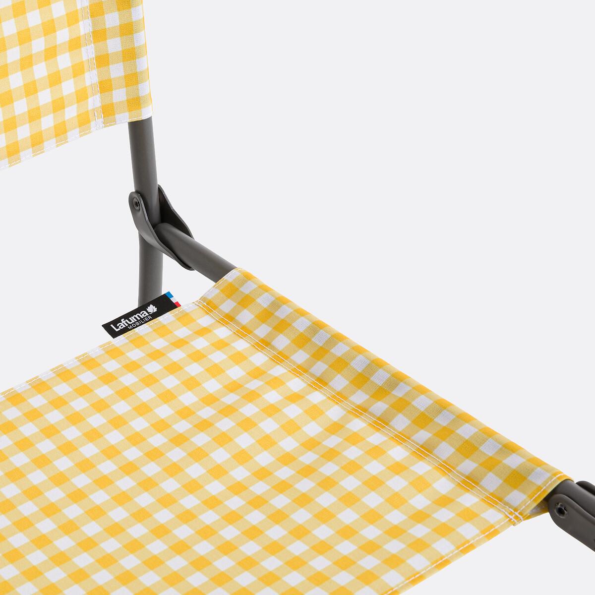 Rustic, colourful and vibrant. The Aline range invites you to enjoy a picnic or get together in the garden. Crockery and cutlery, tablecloths, parasols, cushions, floor mats... all in graphic gingham or stylised striped print. In true picnic style. The Aline folding chair : Made in France by LAFUMA, it is easy to transport and unfolds instantly to enjoy the sunshine. Product Details • 100% polyester canvas • Structure in H steel tubes. L.E (High Elastic Limit), Diameter 16 mm • Anti-pinch fastening system • Maximum supported load : 100kg. Dimensions • Width: 45cm • Height: 44cm • Depth: 46cm • Seat: W44 x H13 x D27 cm • Back height : 24cm • Weight: 1.24 kg. Dimensions of folded product : • Width: 45cm • Height: 55cm • Depth: 6cm/2.5" • Sold pre-assembled. • Made in France. Parcel Dimensions1 parcel • W73 x H61 x D11 cm. 2kg