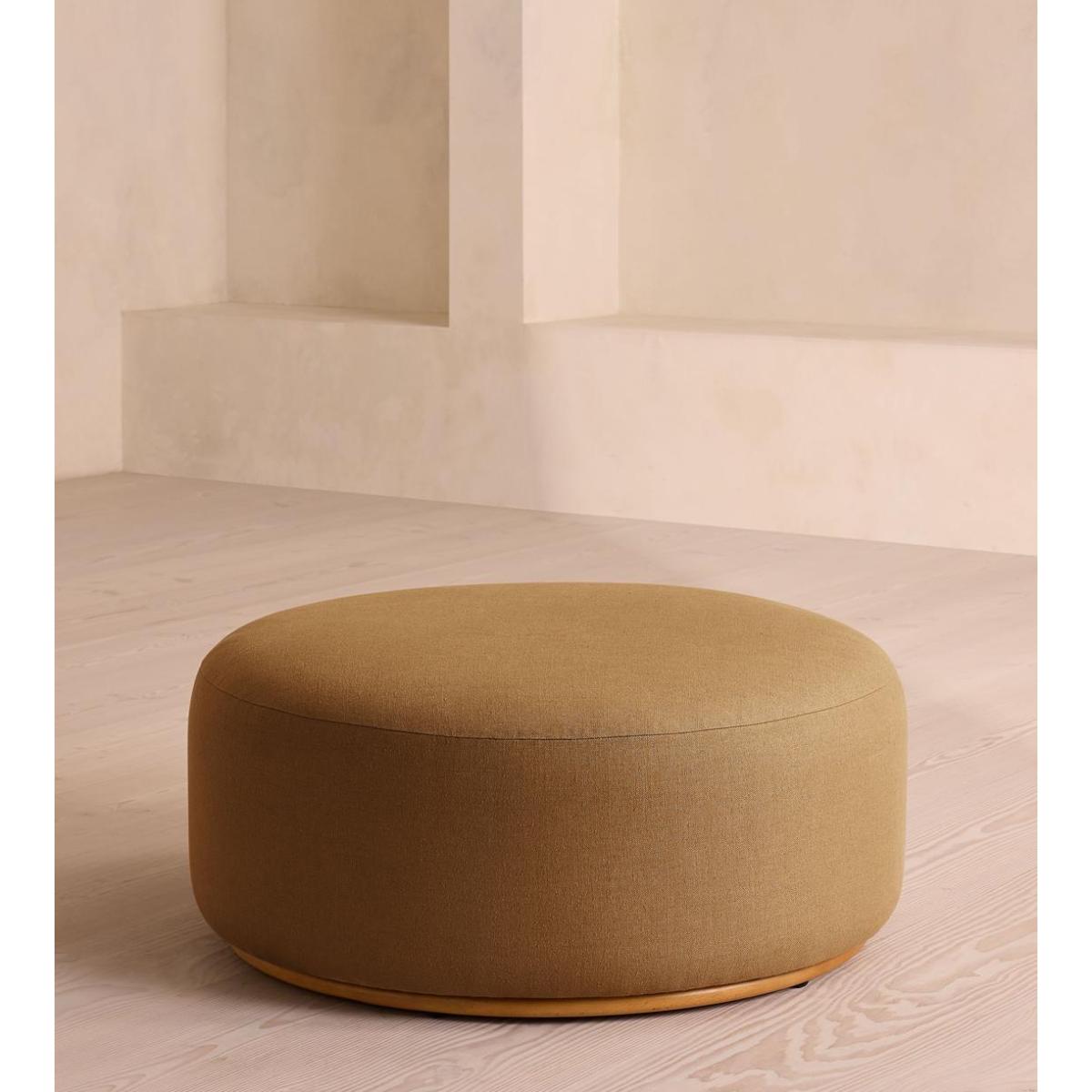 This ottoman is a great addition for both modern and eclectic interiors, offering a warm ochre tone that brings a touch of colour without overwhelming the space. I love its versatile size-it works well as a footrest, a side table, or even an informal seating option. It pairs particularly well with neutral palettes or layered with textured fabrics to add visual interest. For practical styling, try placing it near a sofa with a few curated books or a tray for a cosy, lived-in vibe. Its linen cover also ensures it blends seamlessly with natural materials and soft furnishings, making it a reliable yet stylish anchor in any room.