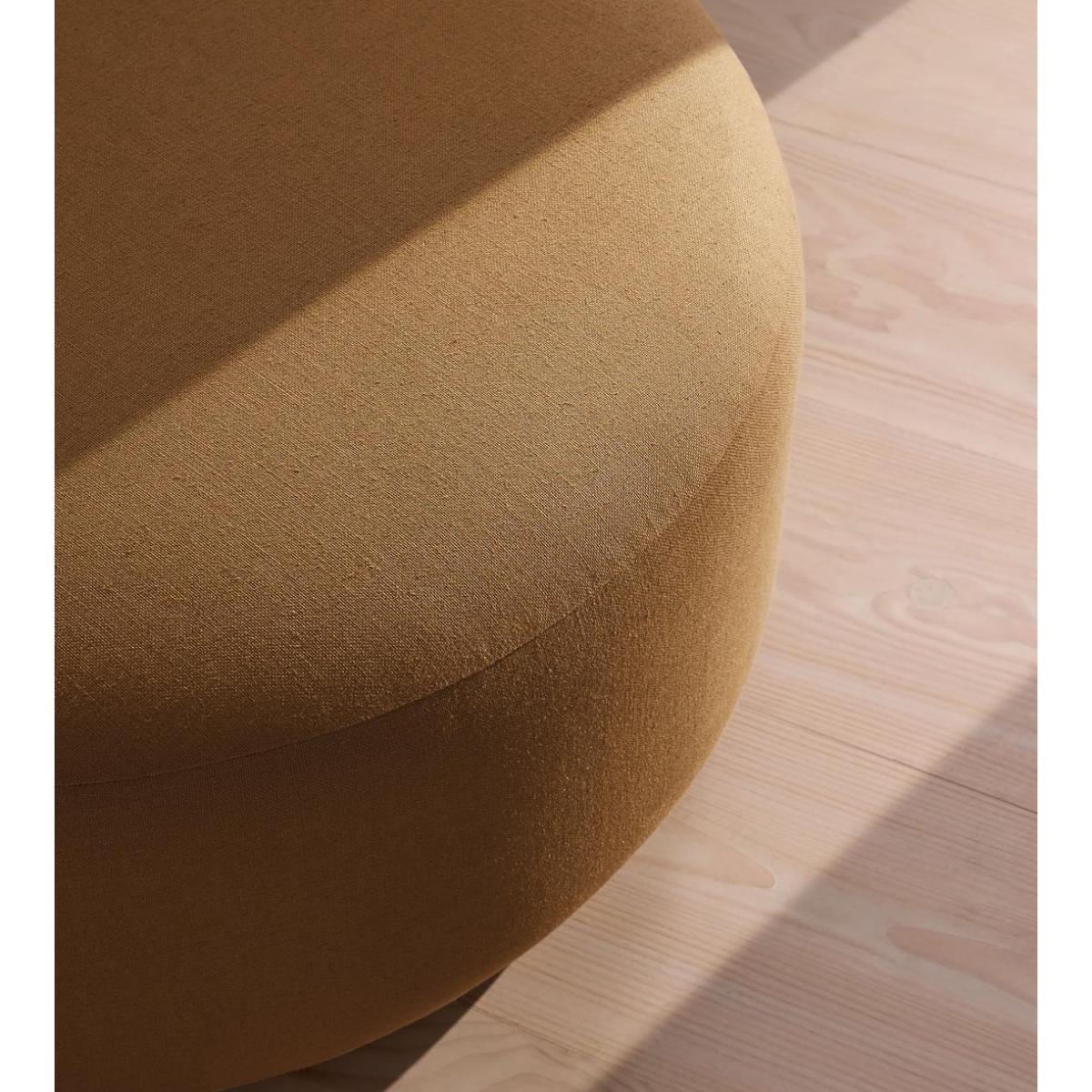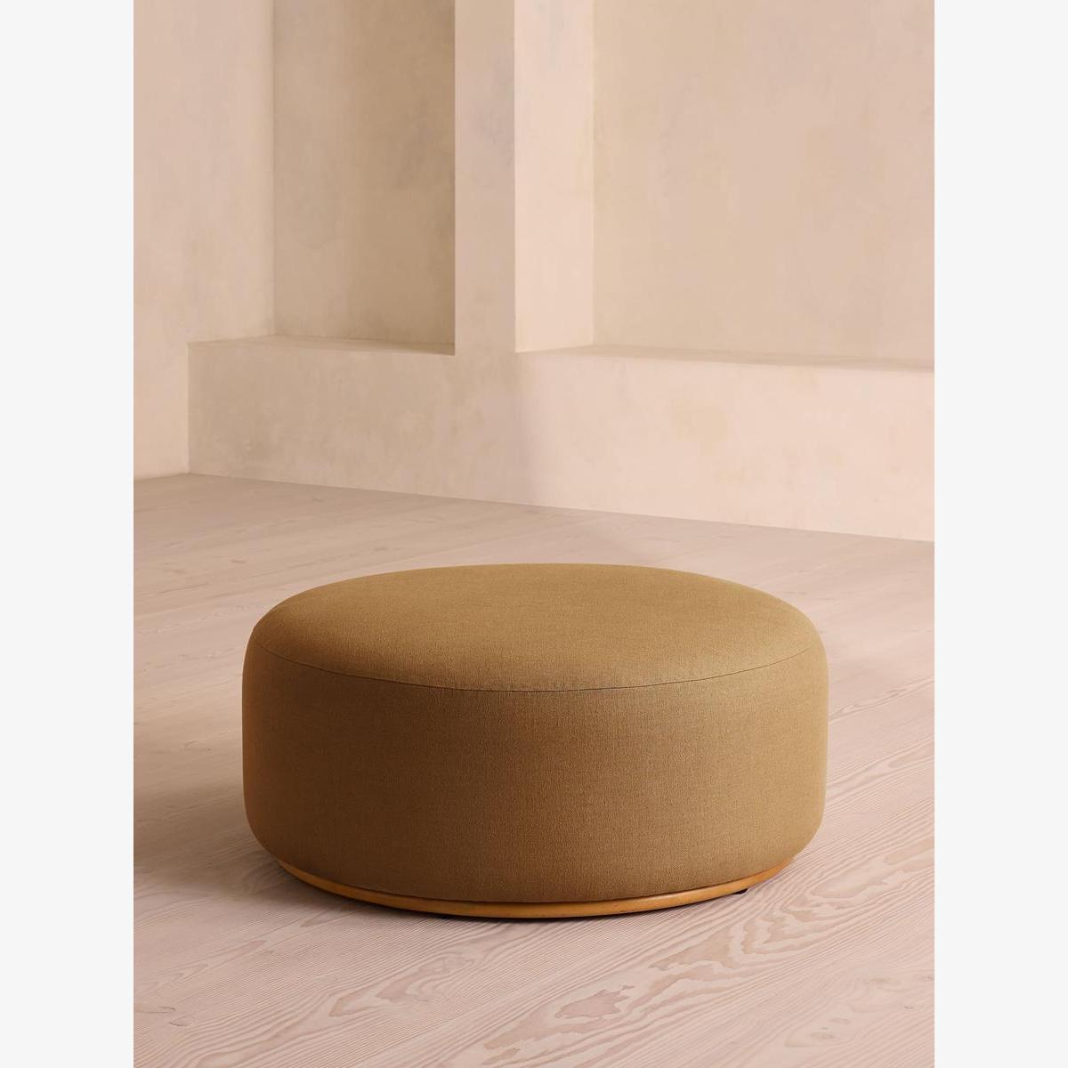 A large, curved silhouette upholstered in linen is spacious enough to let guests put their feet up, or provide extra seating in social spaces. The curved silhouette of the Aline ottoman is wrapped in linen in a range of bespoke colours to mirror the social seating areas seen in Soho House Stockholm.