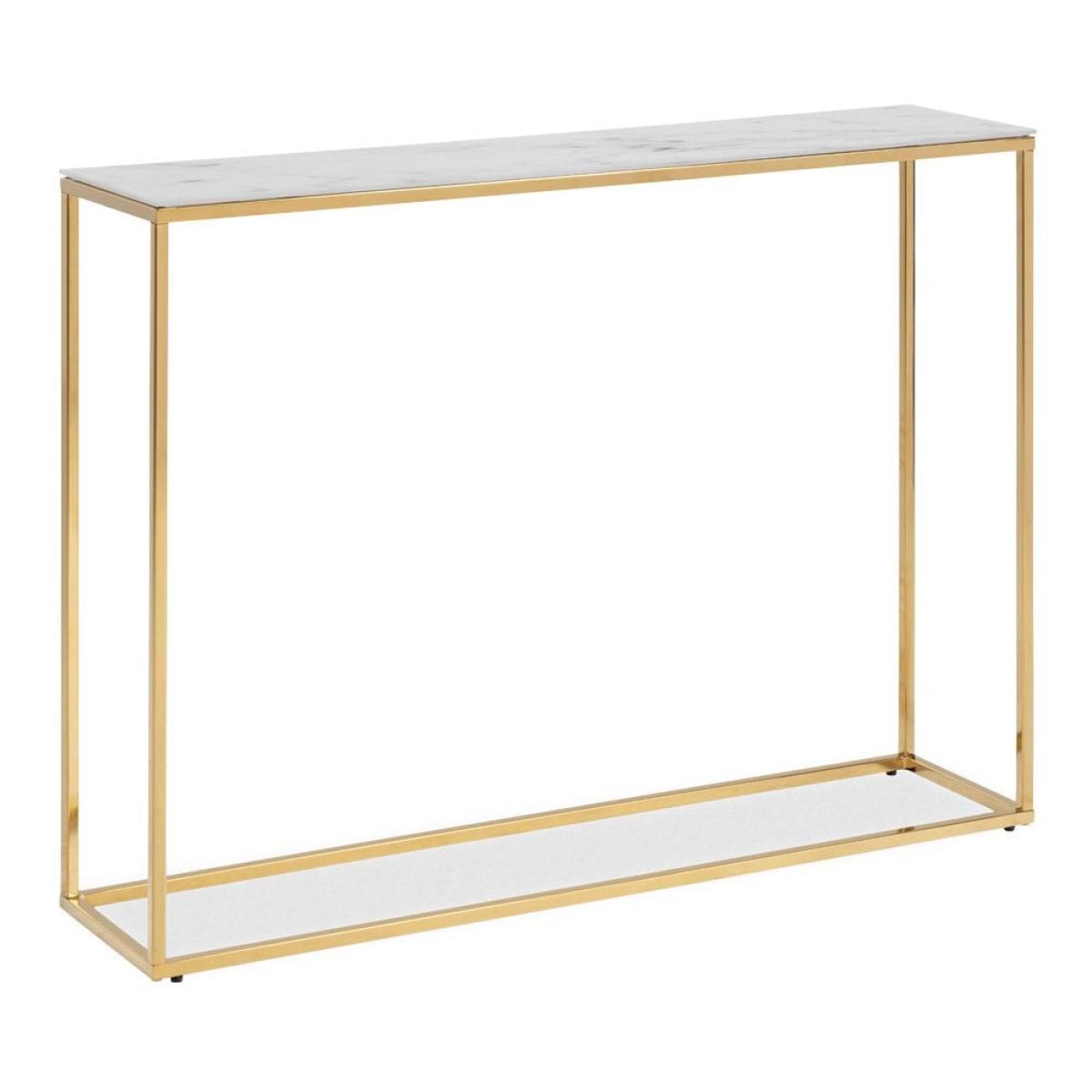 Alisma Large Console Table, White Marbled Glass & Brass