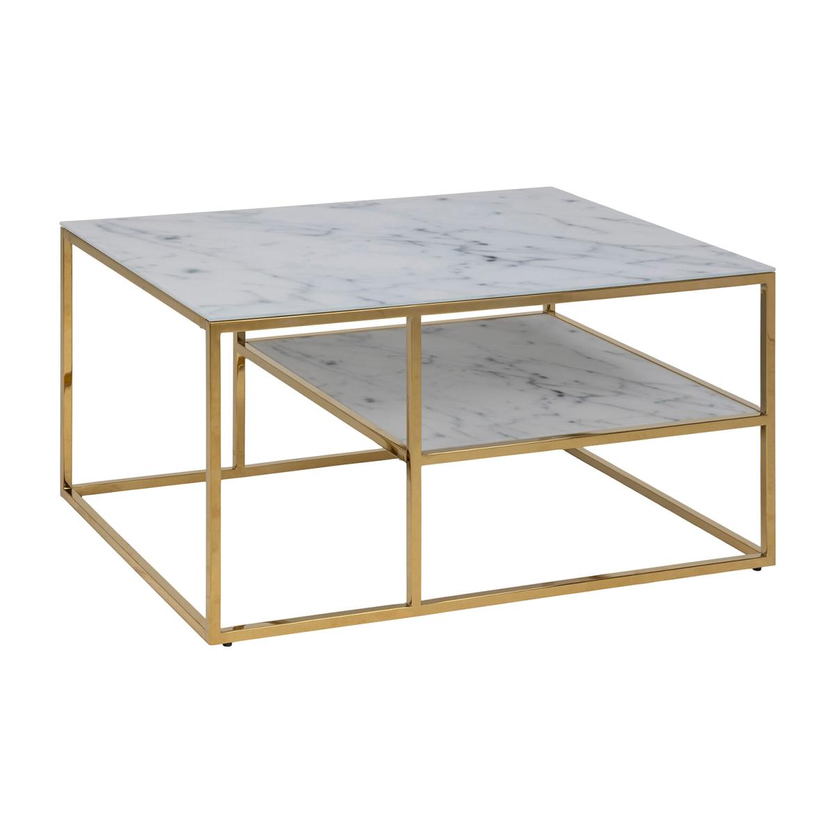 Add a touch of opulence to your space with the Alisma Marble Open Shelf Coffee Table. Its unique design features a sophisticated white marble-effect top paired with a sturdy golden chrome base to elevate your decor effortlessly. Its spacious surface and small shelf offer ample room to proudly display centrepieces and store knick-knacks neatly. Modern and practical, it's a perfect fit for any contemporary home.