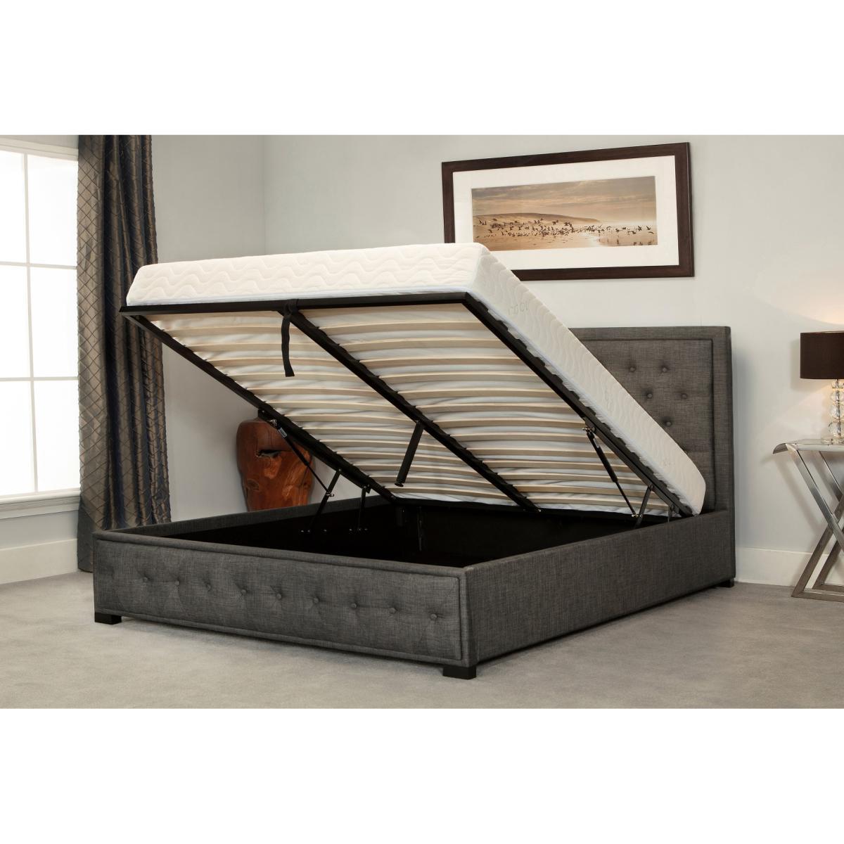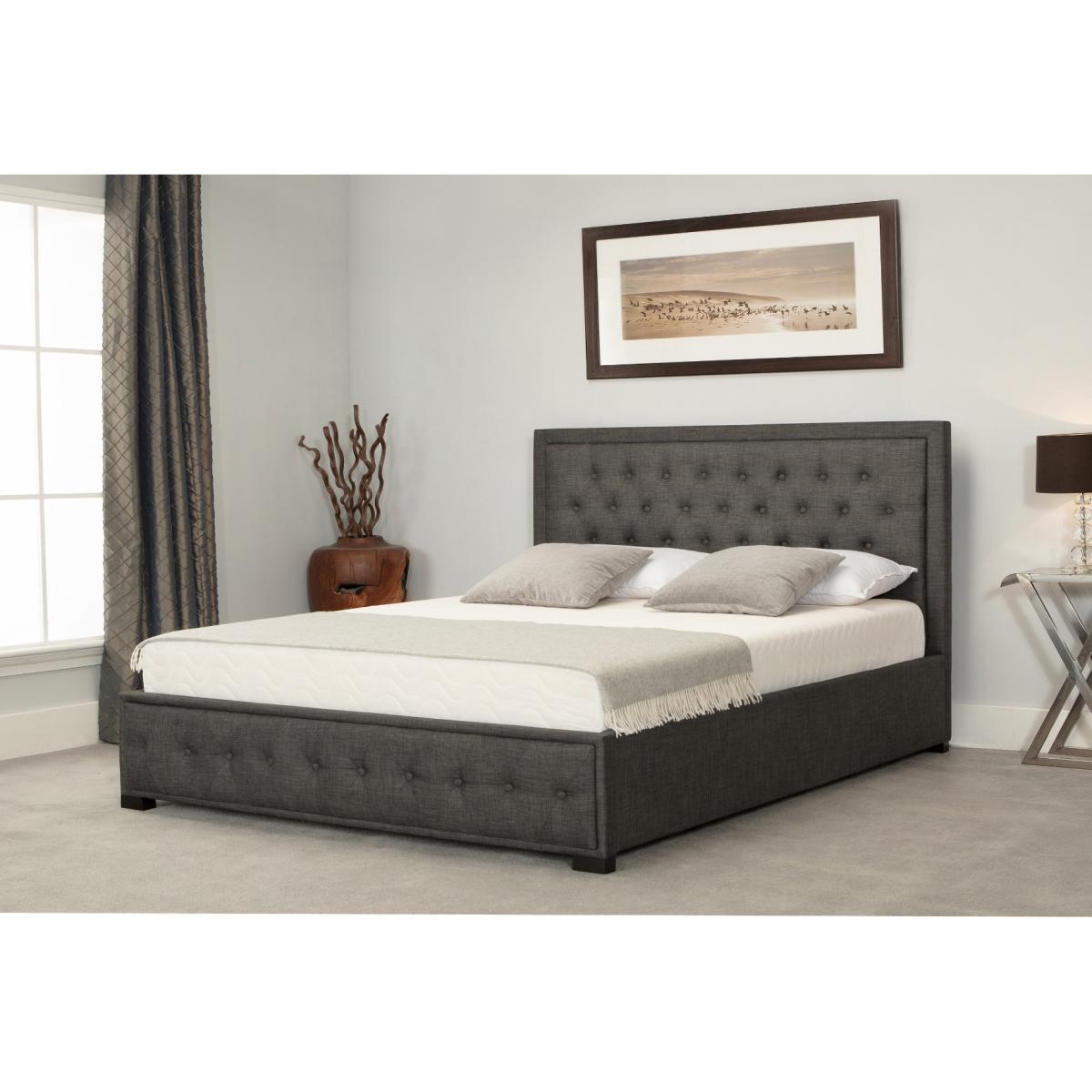 Featuring a stunning contemporary design, the Alison Grey Fabric Ottoman Bed is a stylish addition to your bedroom. This impressive bed is upholstered in smooth fabric in a neutral grey tone to flatter any interior and features a high headboard and modern buttoned design for a stylish and cosy look. The Alison bed is as practical as it is stylish as it offers convenient hidden storage within the ottoman base; perfect for storing linens and extra blankets and pillows. The Alison Fabric Ottoman Bed is available in King Size and Super King Size; make your selection via the options. Please Note: Eligible for kerbside delivery only