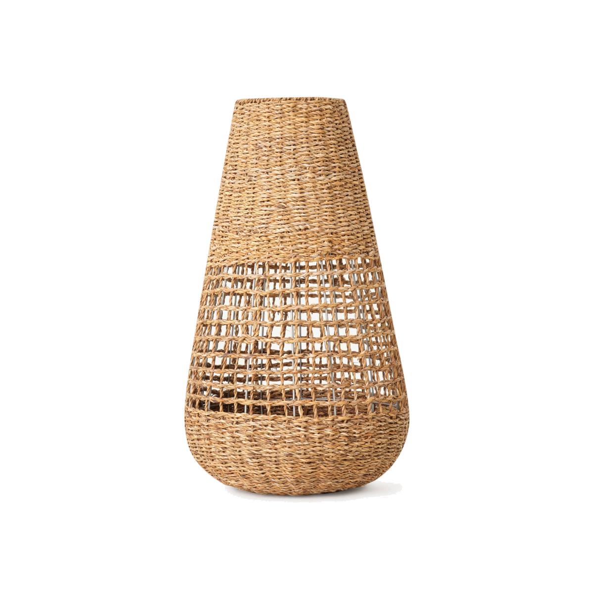I love this large seagrass vase's natural, textured finish - it adds warmth and tactile interest to both modern and coastal-inspired interiors. Its generous size makes it a versatile statement piece, whether positioned alone in a corner or filled with dried foliage or tall greenery to create impact. It works particularly well in neutral or earthy colour schemes, but can also serve as a striking contrast in more minimalistic or monochrome spaces. Practical styling tips include pairing it with minimalist accessories to highlight its artisanal vibe, or grouping with other textured elements for a layered look. Its natural aesthetic makes it suitable for living rooms, hallways, or even bathrooms, bringing a touch of organic charm wherever it's placed.