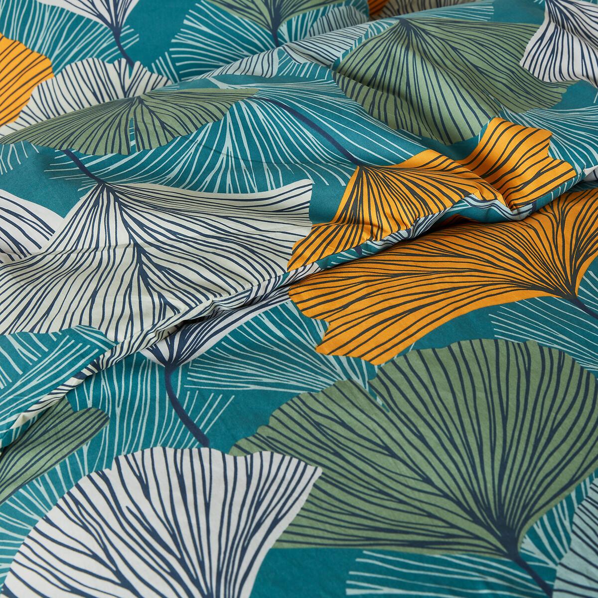 Cotton duvet cover set. Ginkgo-style floral motifs on an emerald background. Ultra soft and comfortable pure cotton. The set includes the duvet cover and its matching pillowcase. Cotton is part of our daily lives. We love it for its suppleness and softness. Easy Care, it is ideal for the beds of young and old alike!Product Details • 100% cotton • 144 thread count • Floral print front and back • Straight buttoned hem Care Advice • Machine washable at 60°C • By washing your laundry at 40°C instead of 60°C, you limit energy consumption. Sizes • Duvet cover 140 x 200cm + 1 pillowcase 63 x 63cm : Single • Duvet cover 200 x 200cm + 2 pillowcases 63 x 63cm : Double • Duvet cover 240 x 220cm + 2 pillowcases 63 x 63cm : King • Duvet cover 260 x 240cm + 2 pillowcases 63 x 63cm : Super King • OEKO-TEX® Standard 100. Standard 100 certification by OEKO-TEX® tests textile products for harmful substances via an independent, international label.