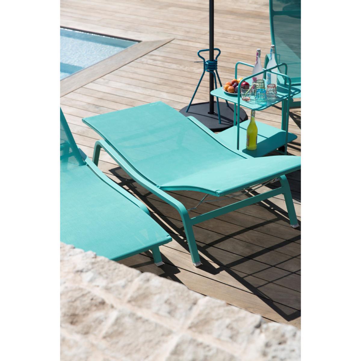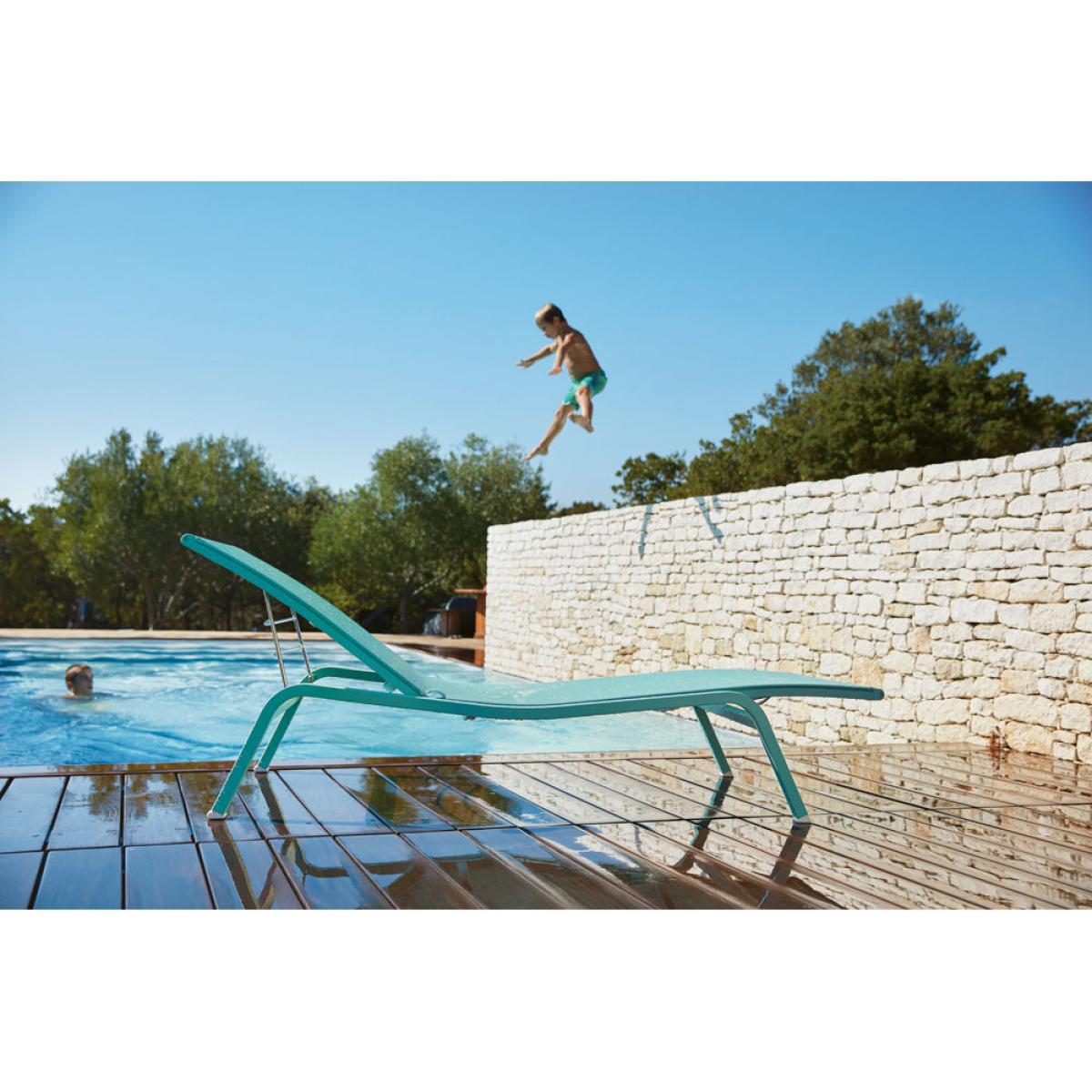 An airy and ultra modern form for this serene sunlounger created by Pascal Mourgue. Alizé immerses us in a world of pure lightness and well-being. Its simple appeal fits perfectly with any kind of landscape. Its very wide reclining surface (190 x 80cm) and the flexibility of the fabric make it all about the comfort. What's more, its backrest is adjustable (3 positions) to suit your activity (reading, a siesta, etc. ). You also have the choice of two ergonomic heights for your legs. The fabric, with anti-UV treatment resists the rain and the sun and stays cool, even in direct sun. Both light and resistant, it can be cleaned simply with soapy water or a water jet. Technical rigour and inspiration for a breath of fresh air! Light and stackable, Alizé can be stored away easily.