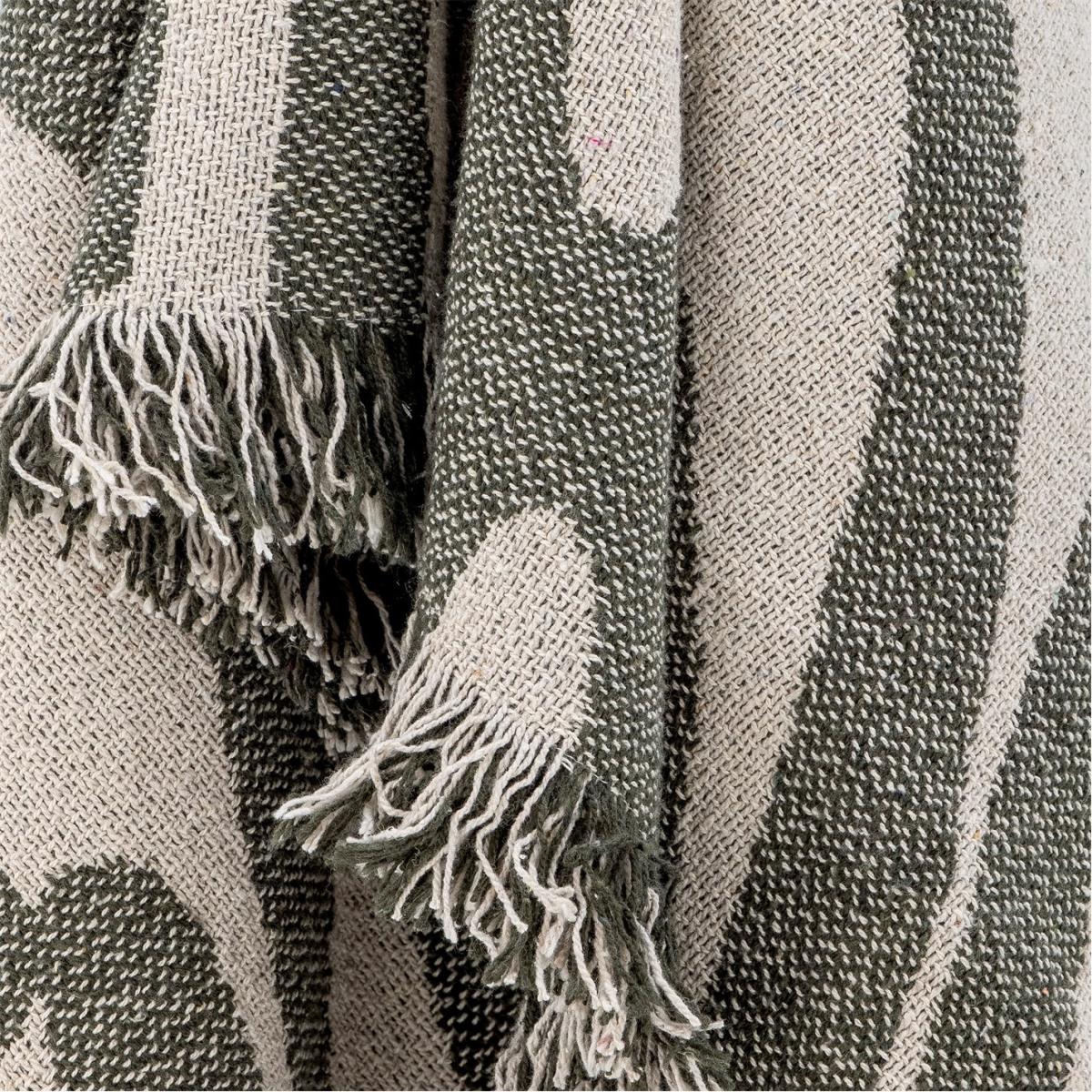 I really like this throw because of its fresh, nature-inspired design and eco-friendly recycled cotton composition, which adds a tactile, cosy touch to any space. It works particularly well in relaxed, contemporary interiors, especially those with natural fibres, earthy tones, or a laid-back vibe. For styling, drape it casually over a sofa or armchair to create an inviting look, or fold it neatly at the end of a bed for a pop of colour and texture. Its versatile design and sustainable materials make it a practical and stylish addition to both living rooms and bedrooms, perfect for adding warmth while making an environmentally conscious choice.