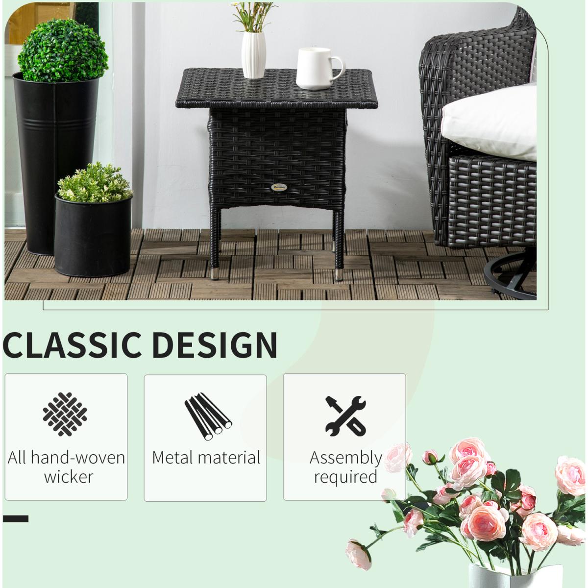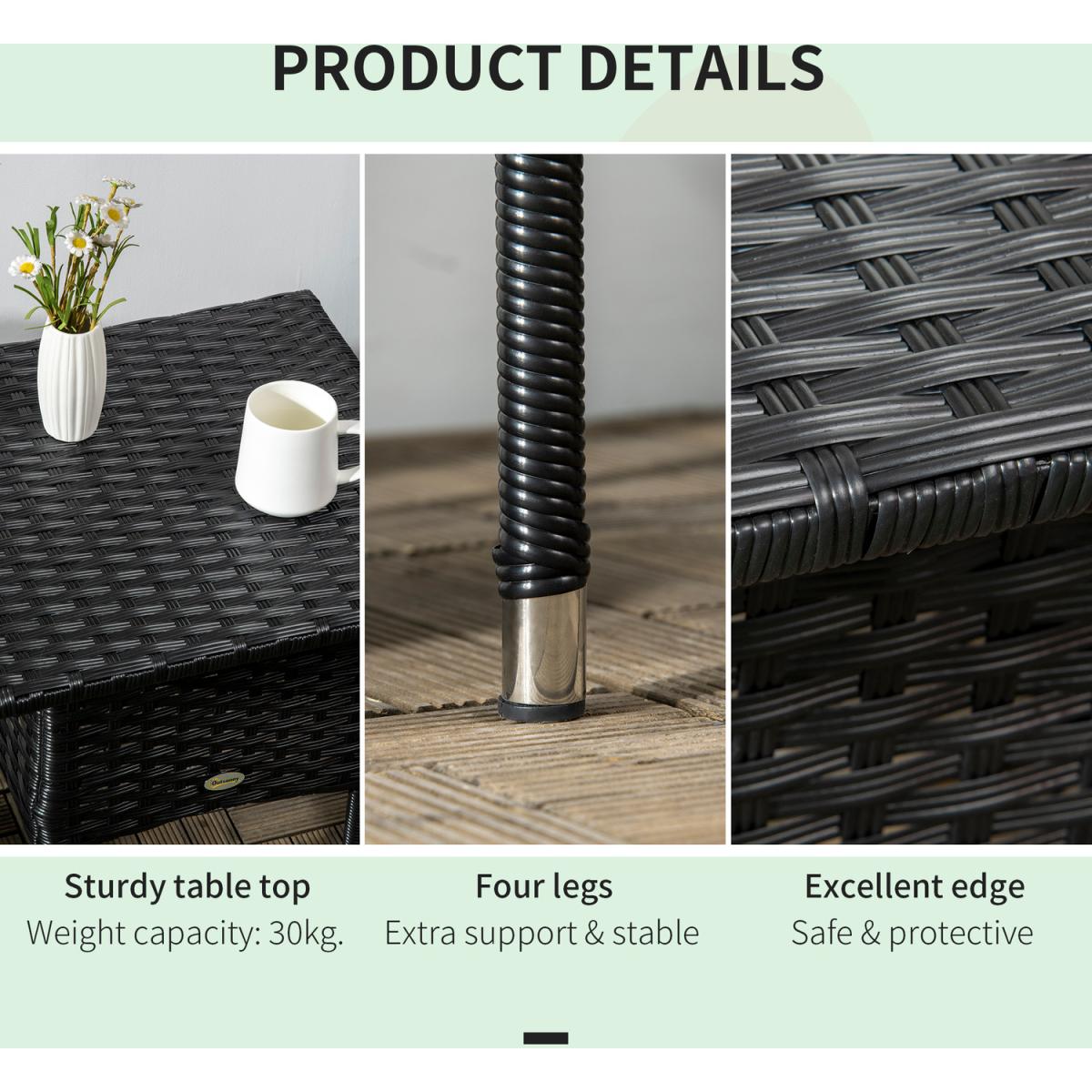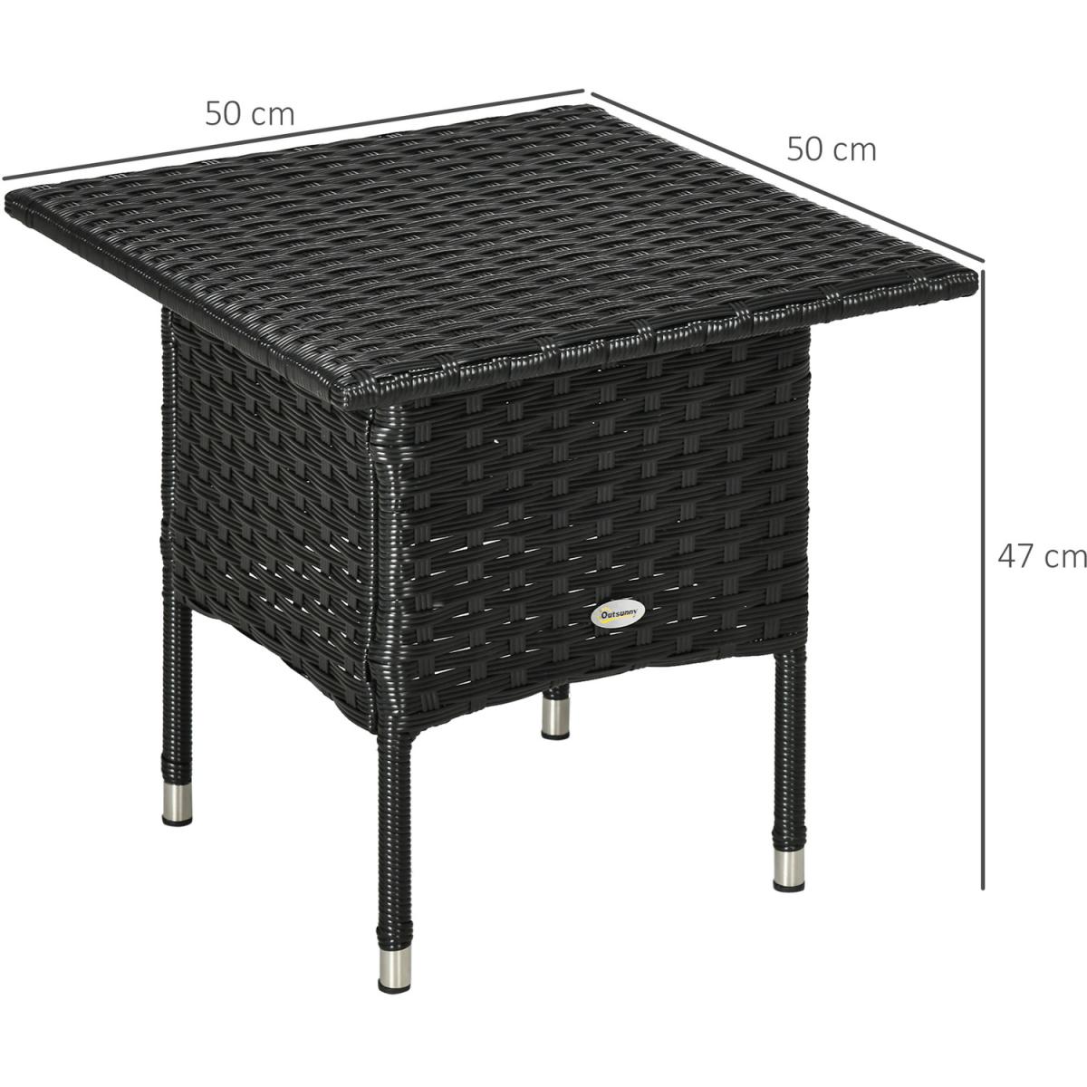 Forever style for your garden: this Outsunny rattan garden table. A galvanised steel frame for a strong core structure, wrapped in plastic rattan for double the durability, whilst making it easy to blend with your current rattan furniture. A spacious square tabletop for plenty of holding room, with four long legs to finish.
