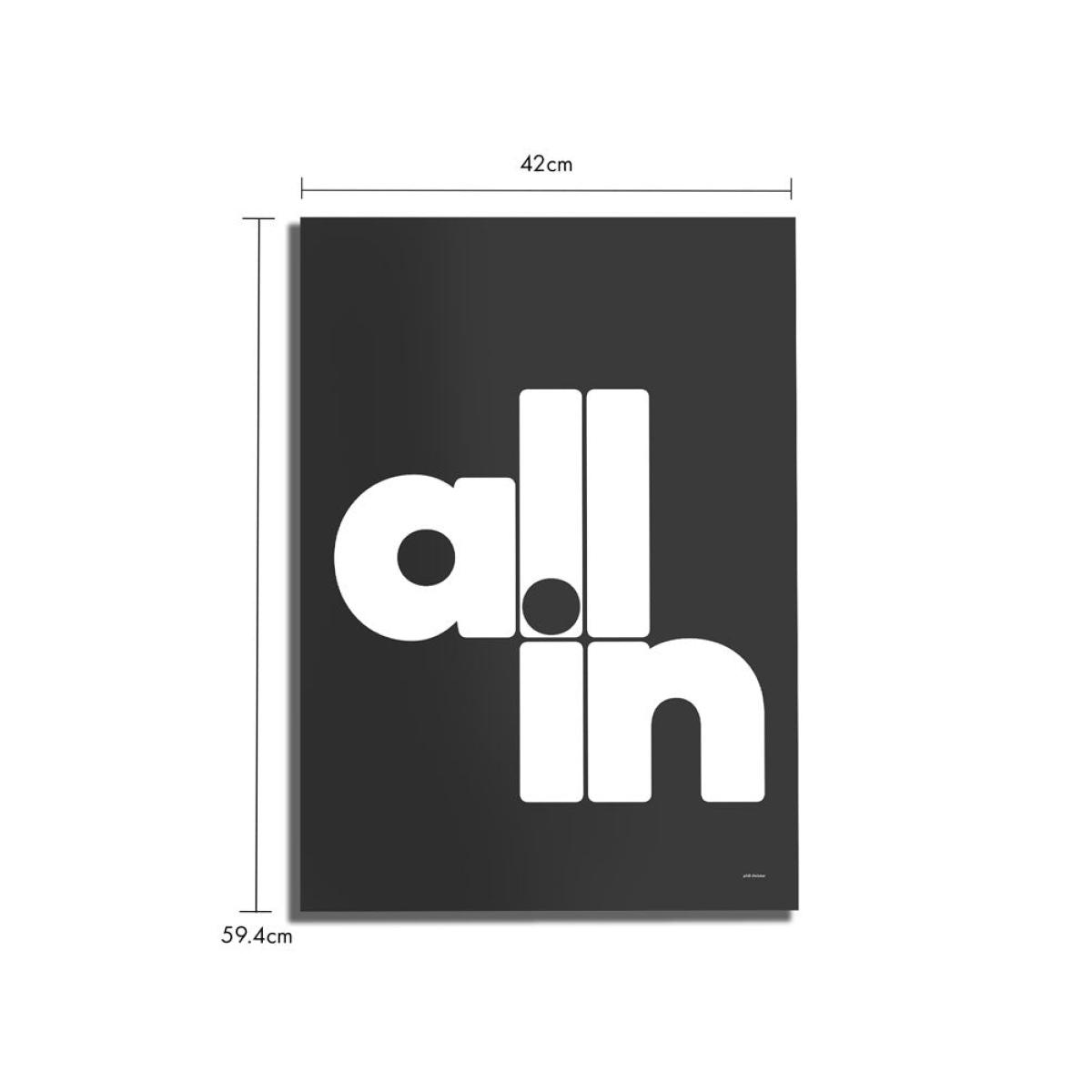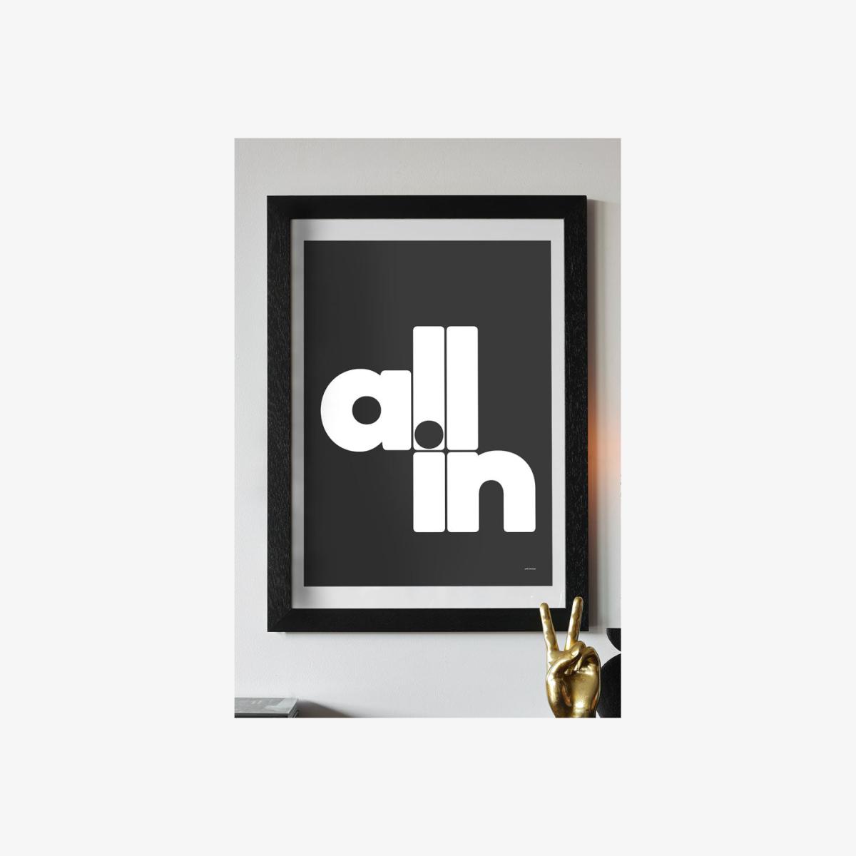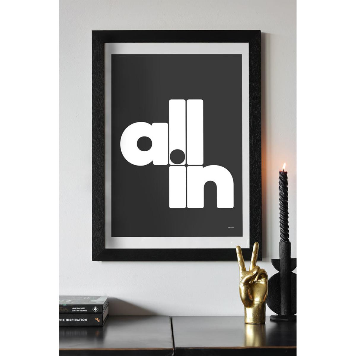<!--td --> Declare your position loud and proud with this gorgeous piece of artwork, which is designed by What Phil Sees and exclusive to Rockett St George. We love both the sentiment AND the design – a bold white font pops out of dense, black background to confirm your commitment to the cause! Style in the hallway as part of a gallery wall, or hang solo in the loo as a reminder to live your life right. We love the symmetry of the little black dots (because it's the small things that make it all hang together) and that this fits right in with any colour scheme. So however else you like to live your life, live all in – because we only get one go-round, right?- All In Black & White Art Print - Unframed - Measures: W42cm x H59.4cm, A2 - Material: Printed on premium grade 210gsm matte paper using archival quality fade resistant inks- Designed by What Phil Sees, exclusive to Rockett St George. Signed by the artist