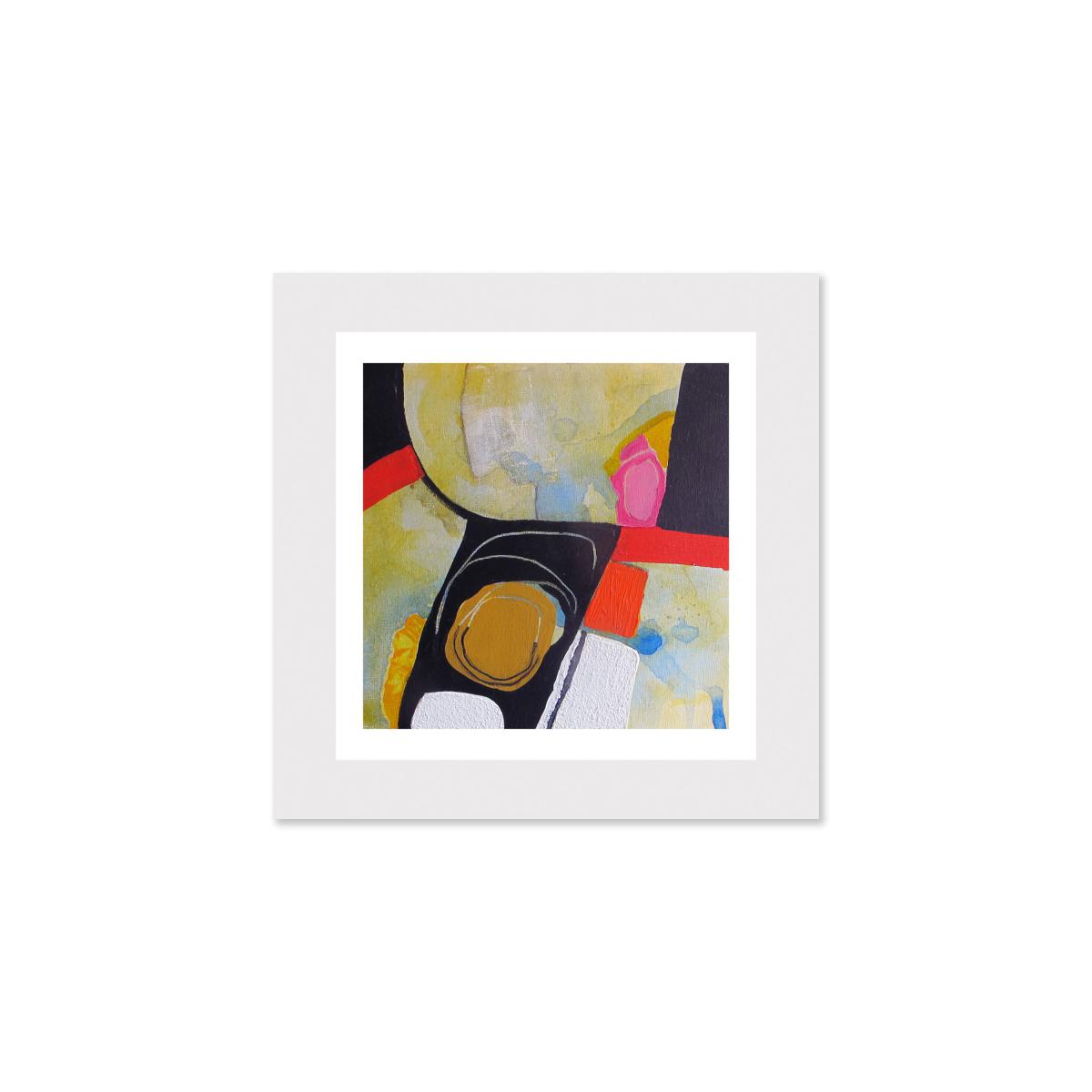 I love this print for its bold, modern aesthetic and how it can serve as a statement piece in a variety of interiors. It works particularly well in contemporary or minimalist spaces where the artwork can be a focal point, but it also complements eclectic and mid-century styles thanks to its abstract forms and lively colours. For practical styling, consider pairing it with neutral furnishings to make the print pop, or echo the colour palette in smaller accessories throughout the room. Framing it with a sleek black or white border will help it look polished and make it versatile for different colour schemes. This piece is a great way to inject energy and visual interest without overwhelming the space.